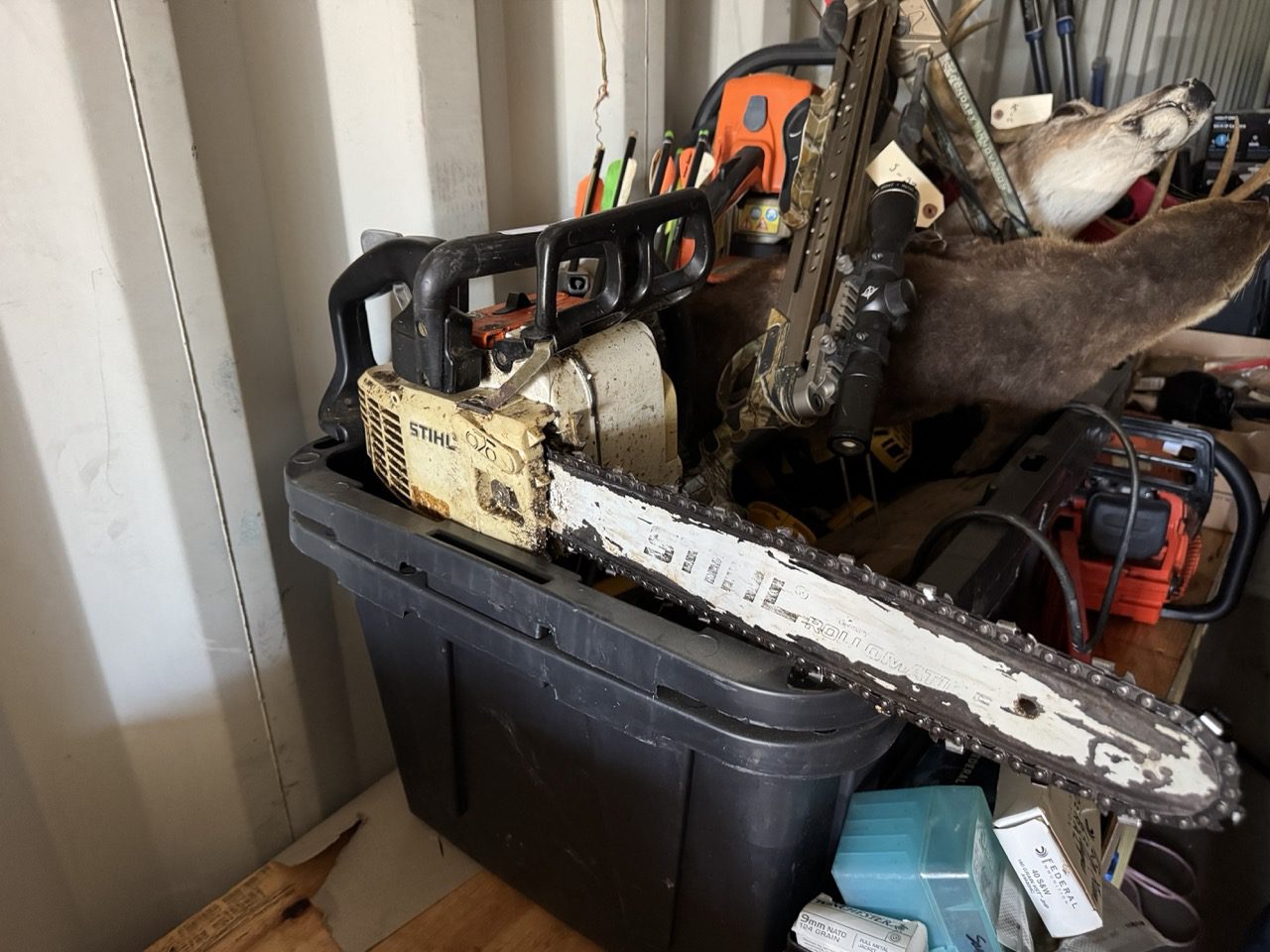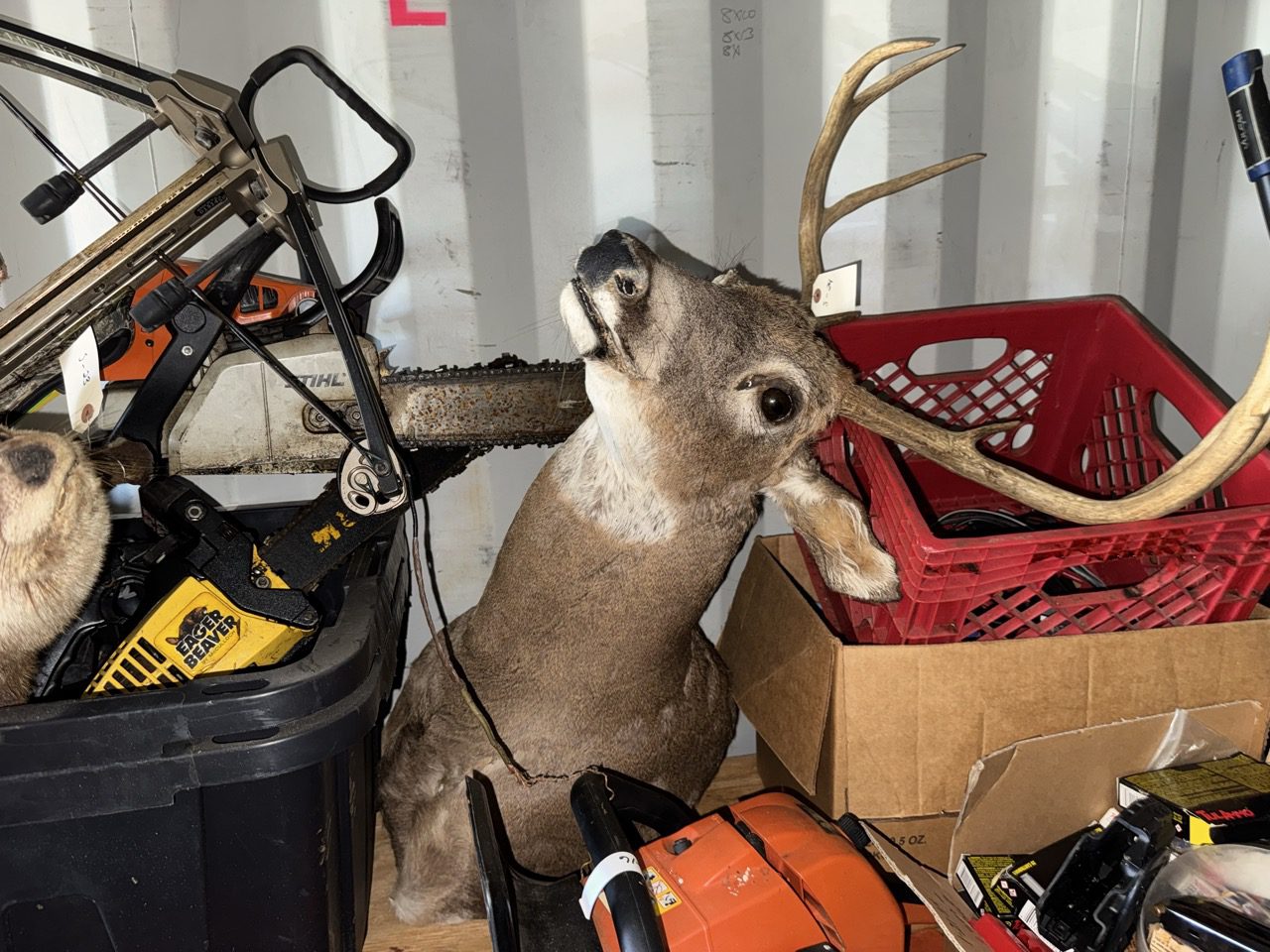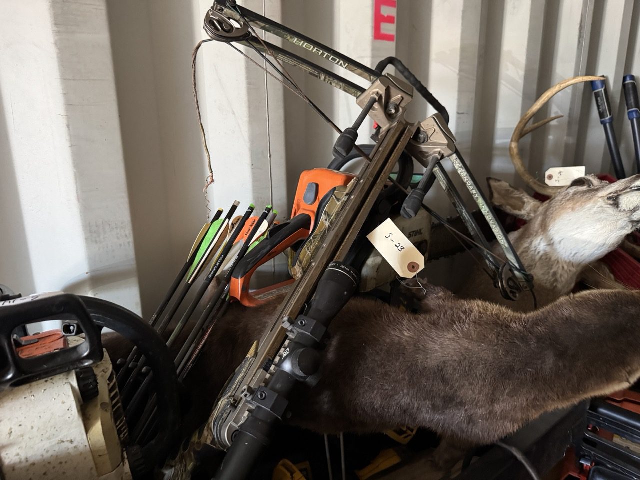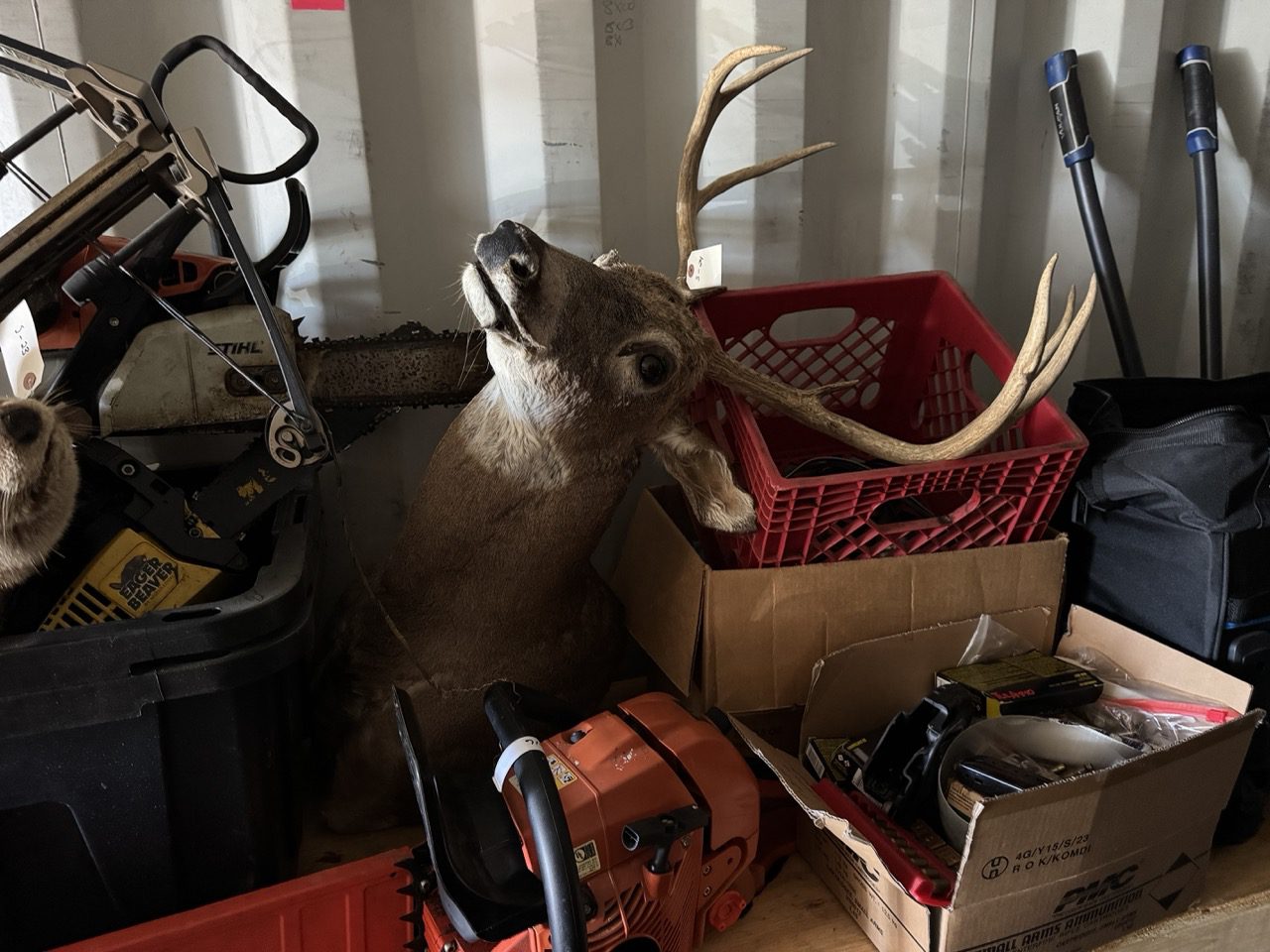 Misc Items: Craftsman Toolbox – Hart Toolbox – Armour All Vacuum – Nikon Binoculars – Arlo Camera System – (2) Night Owl Camera Systems – Husqvarna Chainsaw – Safe – 55” Sony TV – 75” LG TV – Chauvet Fog Machine – Beheringer Eurolight LC2412 – Hisense 65” TV – LG 65” TV – ONN Roku TV – Sony PS5 – Hisense 75” TV – (2) Yamaha CW118 Subwoofer – (2) Peavy PR12 Speakers – Harbinger M120 4 Channel Mixer – Viking Touring Case – DJ Tech Mixer – (2) Tomshine Stage Lights – (2) Spider Stage Lights – Crossman Air Gun – Black Paintball Gun – Playstation VR2 – Ryobi Finish Nailer – Ryobi Oscillating Tool – Google Nest Doorbell – JBL Bluetooth Speaker – BOG Shooting Tripod – TKK Shooting Tripod – Proto Torque Wrench – (5) Swords – (3) Hatchets – Steel Rifle Targets – Stihl Ms250 Chainsaw – Eager Beaver Chainsaw – Echo Cs590 Chainsaw – Dewalt Tools – Leupold RX1400I Rangefinder – Animal Mounts – Collector Silver Coins – Nike Shoes – Sinclair Dino – Fina Gas Porcelain Sign