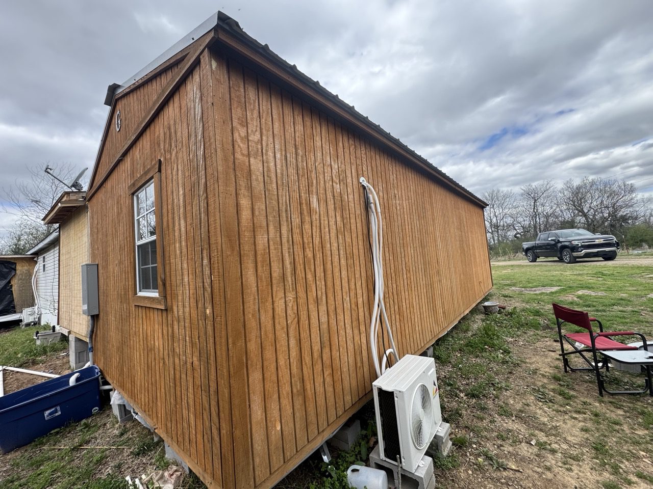 Tiny Home **To Be Moved**: This 14′ x 28′ portable building is fully finished and move-in ready! It features R-13 insulation in the walls and ceiling, along with R-19 insulation under the subfloor for year-round comfort. The interior is completely finished with sheetrock, giving it a clean and modern look. A mini-split HVAC system ensures efficient heating and cooling, while the space is plumbed for a kitchen sink and equipped with an electric tankless water heater for on-demand hot water. This building is perfect for a tiny home, guest house, office, or workshop. Contact us today for more details!