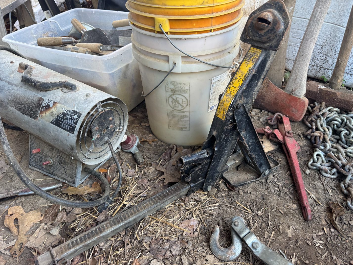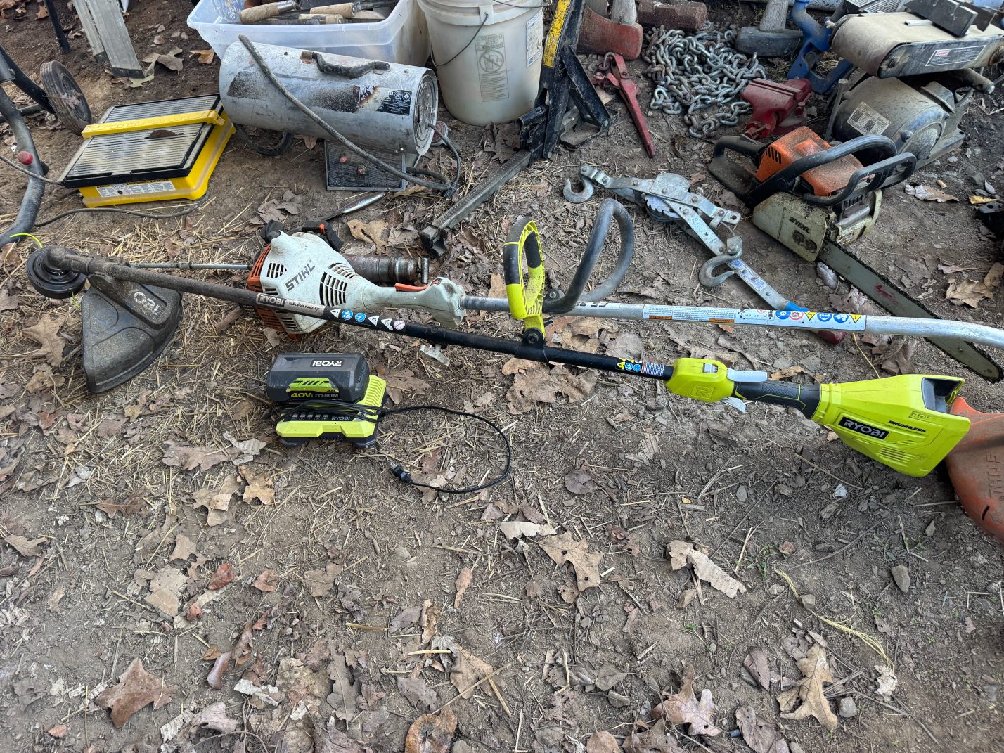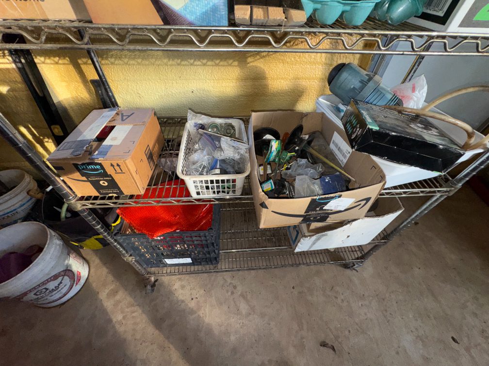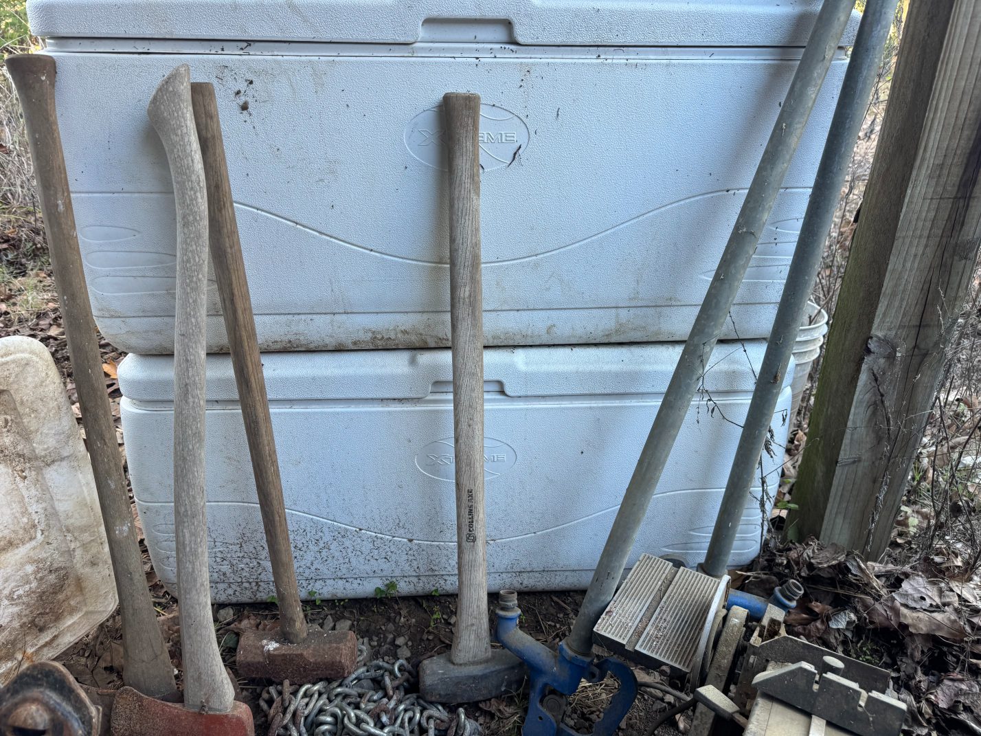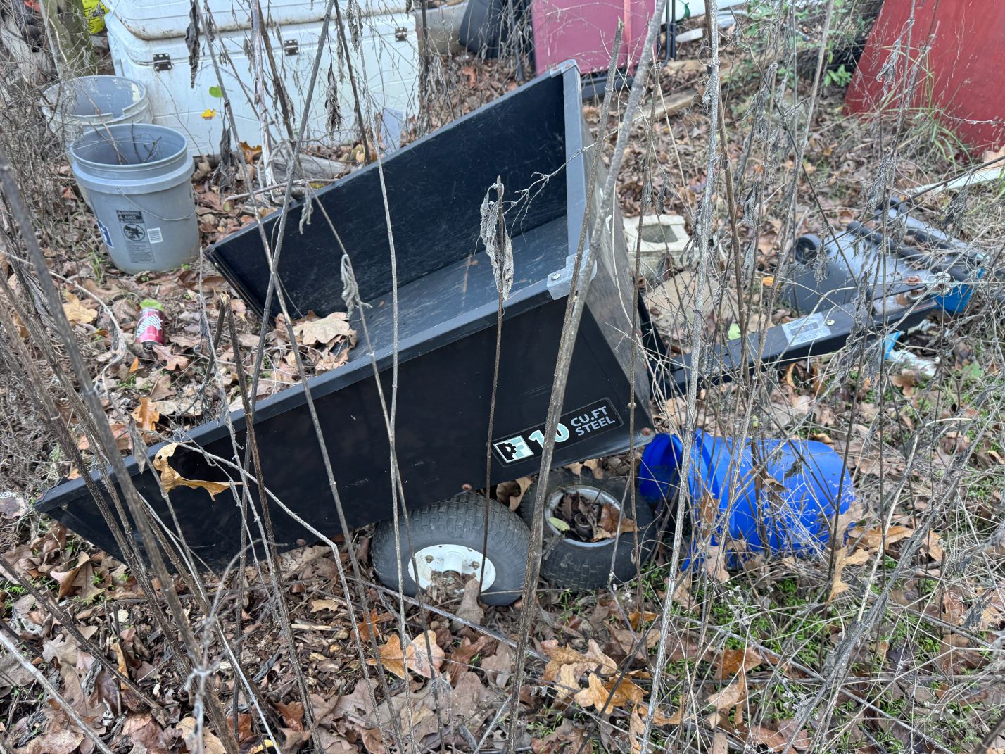 Tools/Shop Items: Sears Reciprocating Saw – Black & Decker Power Miter Saw – Stihl Chainsaw – Come Along – Belt Sander – Bench Vise – Log Chain – Chain Binder – Sledgehammers – Freeze Proof Faucet – Axes – Tile Saw – Ryobi Electric Weed Eater – Stihl Weedeater – Concrete Finish Tools – Gardening Hand Tools – Aluminum 6 Ft Ladder – Gas Cans – Electrical Meter Jacks – Wire Panels – Sheet Metal – Extension Cords – 50-Gallon Plastic Barrels – Dolly – Wood Crates – Wood Milk Crate – Motorcycle Helmets – Rotozip – Tools – Toolbox – Skilsaw – Toolboxes – Dremel Tools – Ryobi Compound Miter Saw – Brass Couplings – Spigot Valves – Extension Ladder – Yard Dump Trailer – Wilderness Pungo 100 Kayak – Air Compressor – Water Pumps – Grow Equipment – Table Saw On Stand – Vinyl Windows – Glass Blocks – Rubbermaid Feed Trough – Irrigation Supplies – Sprinkler Heads – Rake Heads – Propane Tank – Garden Hose – Buckets – Metal Sprinkler – Brute Trash Can – Lettuce Washer – Fire Extinguisher – Popup Canopies – Stainless Tables – Stainless Racks – Metal Cart – Stools – Metal Shelf – Propane Heater – Ice Chests – Planters