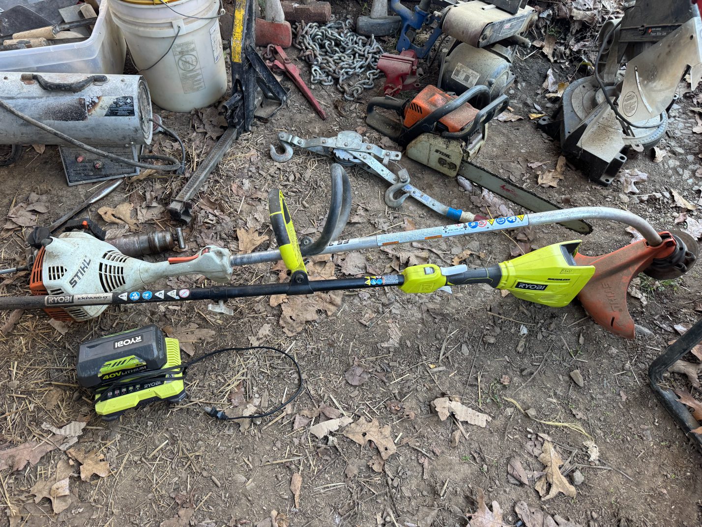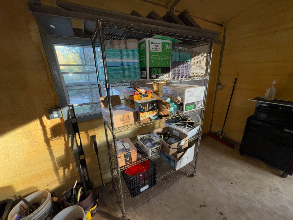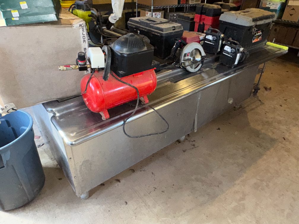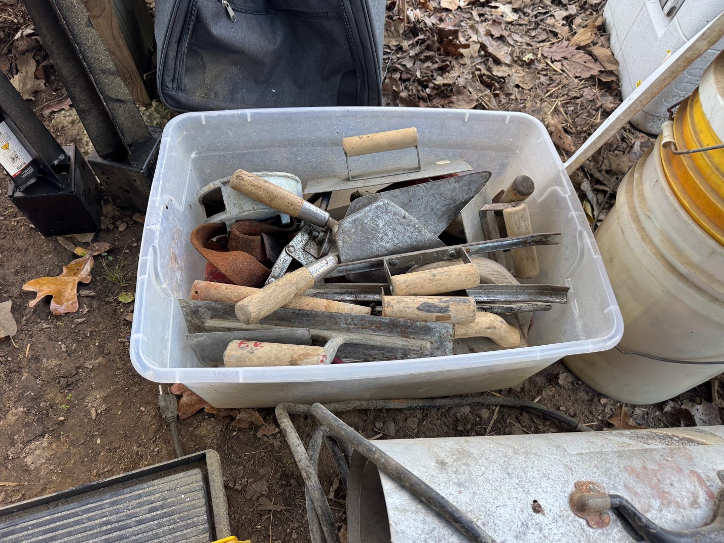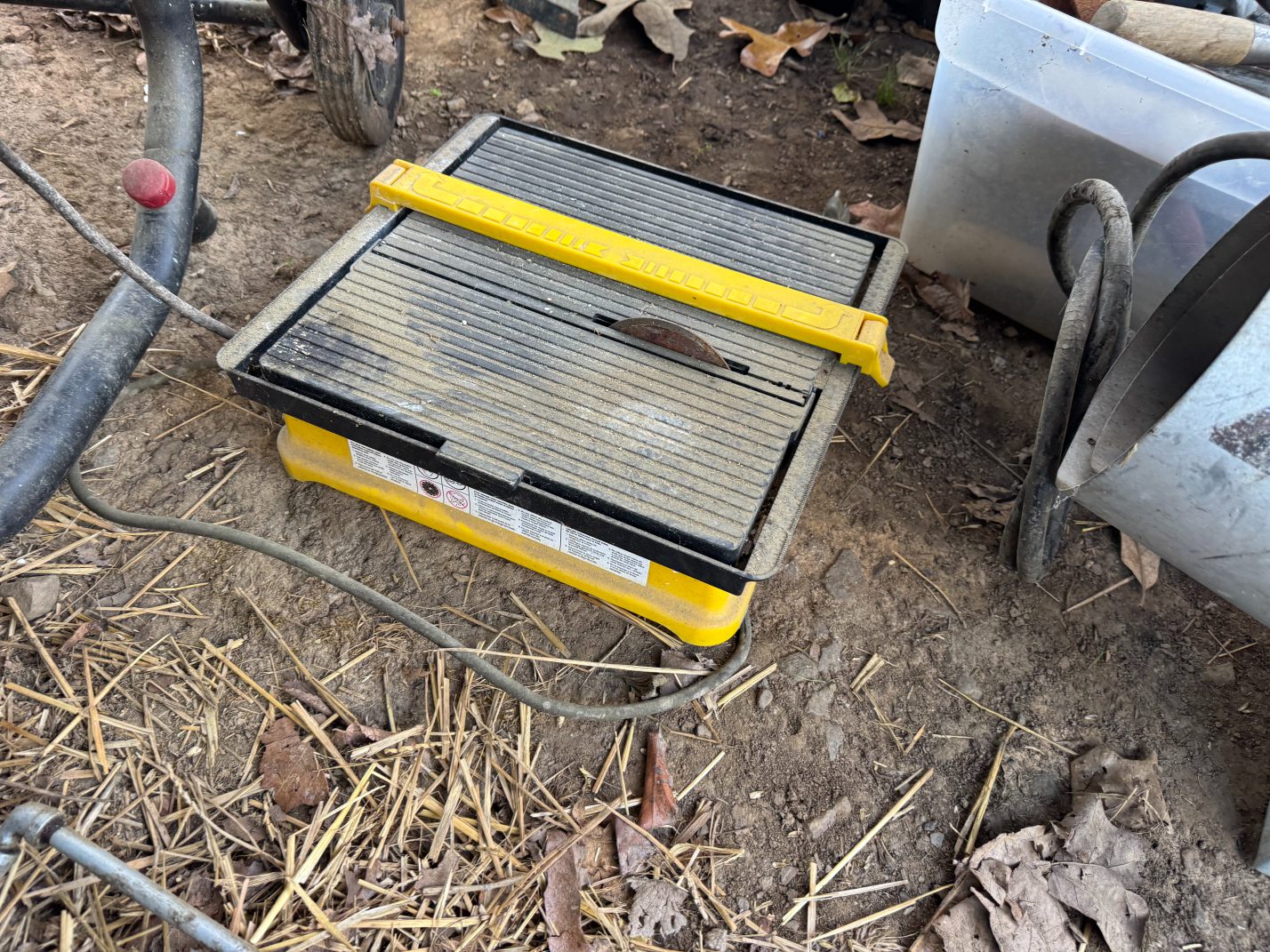 Tools/Shop Items: Sears Reciprocating Saw – Black & Decker Power Miter Saw – Stihl Chainsaw – Come Along – Belt Sander – Bench Vise – Log Chain – Chain Binder – Sledgehammers – Freeze Proof Faucet – Axes – Tile Saw – Ryobi Electric Weed Eater – Stihl Weedeater – Concrete Finish Tools – Gardening Hand Tools – Aluminum 6 Ft Ladder – Gas Cans – Electrical Meter Jacks – Wire Panels – Sheet Metal – Extension Cords – 50-Gallon Plastic Barrels – Dolly – Wood Crates – Wood Milk Crate – Motorcycle Helmets – Rotozip – Tools – Toolbox – Skilsaw – Toolboxes – Dremel Tools – Ryobi Compound Miter Saw – Brass Couplings – Spigot Valves – Extension Ladder – Yard Dump Trailer – Wilderness Pungo 100 Kayak – Air Compressor – Water Pumps – Grow Equipment – Table Saw On Stand – Vinyl Windows – Glass Blocks – Rubbermaid Feed Trough – Irrigation Supplies – Sprinkler Heads – Rake Heads – Propane Tank – Garden Hose – Buckets – Metal Sprinkler – Brute Trash Can – Lettuce Washer – Fire Extinguisher – Popup Canopies – Stainless Tables – Stainless Racks – Metal Cart – Stools – Metal Shelf – Propane Heater – Ice Chests – Planters