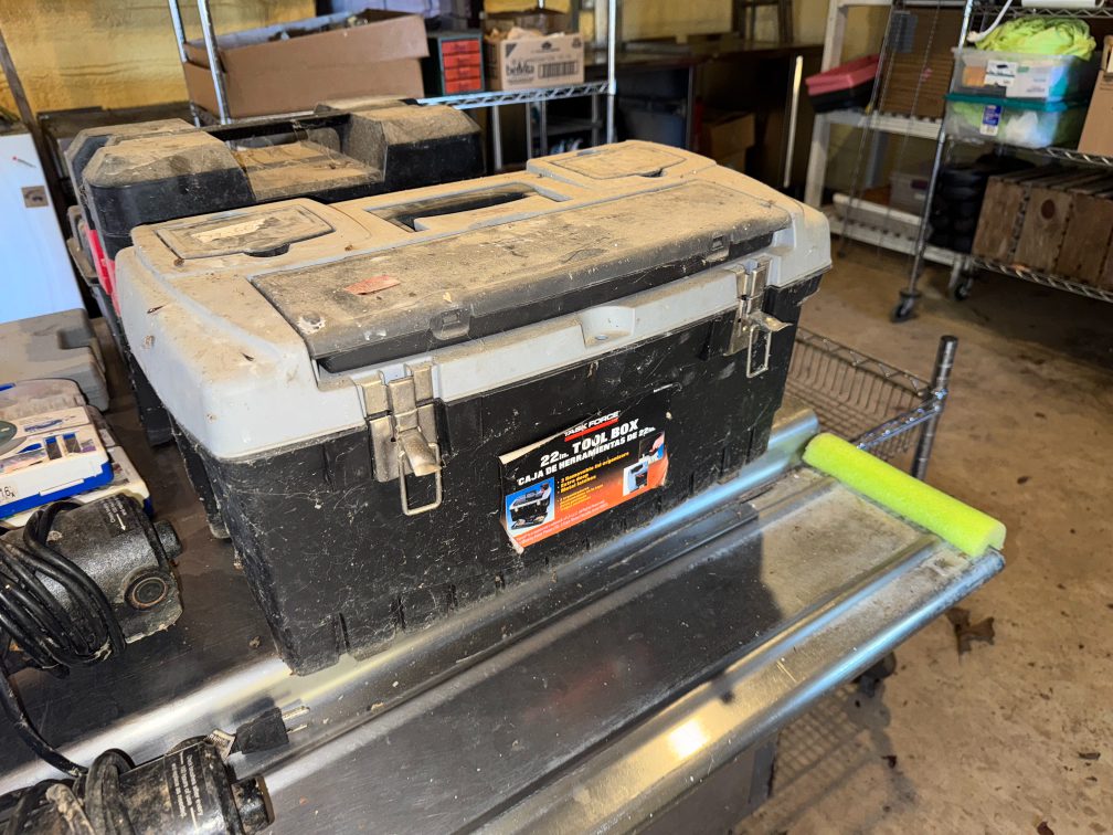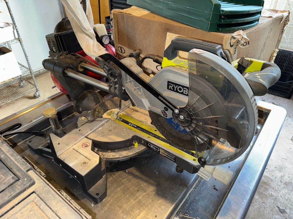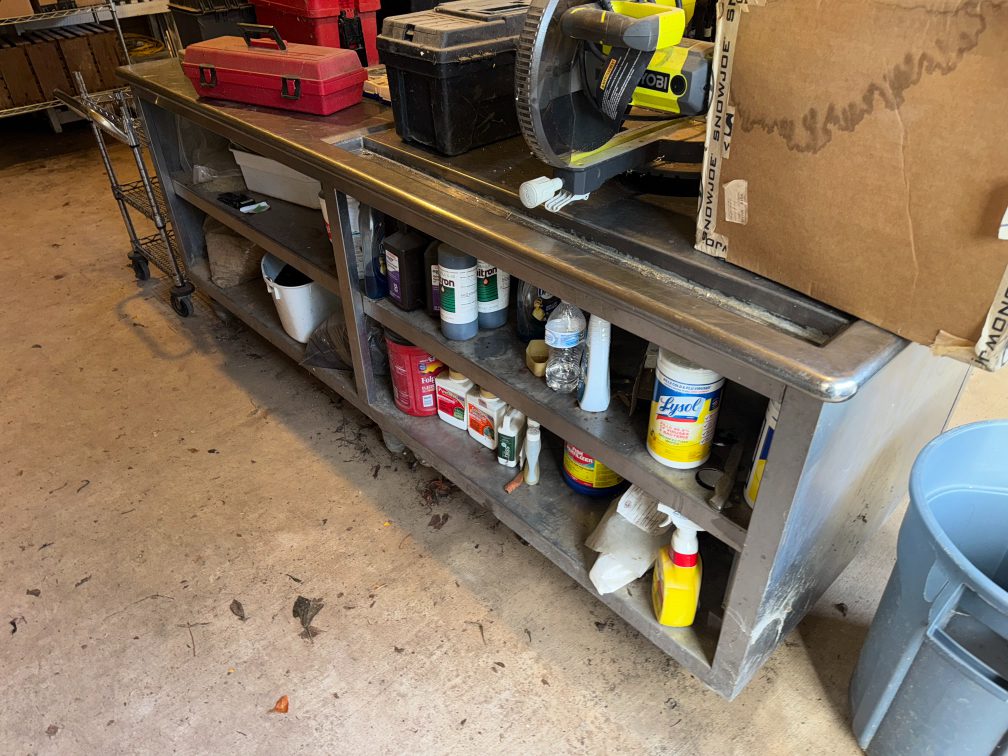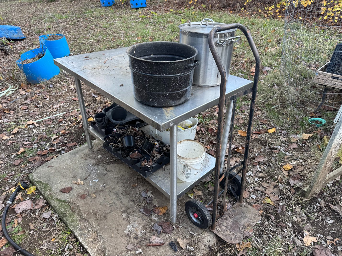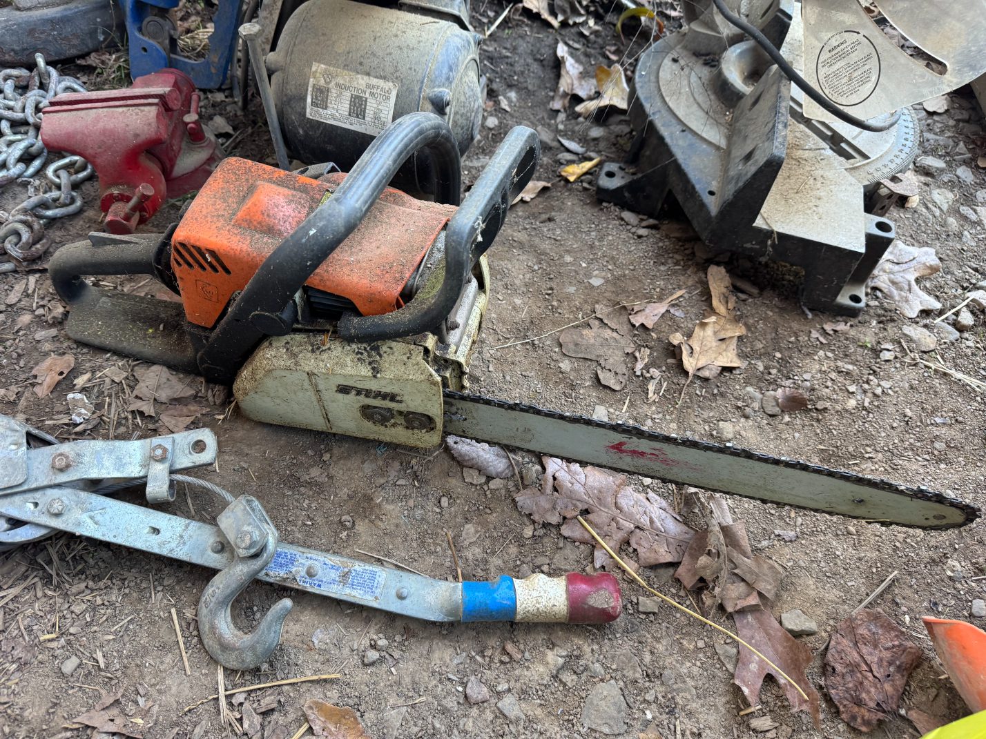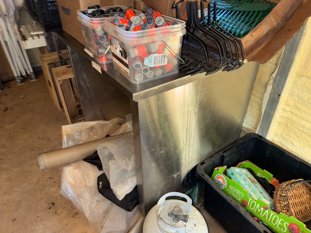 Tools/Shop Items: Sears Reciprocating Saw – Black & Decker Power Miter Saw – Stihl Chainsaw – Come Along – Belt Sander – Bench Vise – Log Chain – Chain Binder – Sledgehammers – Freeze Proof Faucet – Axes – Tile Saw – Ryobi Electric Weed Eater – Stihl Weedeater – Concrete Finish Tools – Gardening Hand Tools – Aluminum 6 Ft Ladder – Gas Cans – Electrical Meter Jacks – Wire Panels – Sheet Metal – Extension Cords – 50-Gallon Plastic Barrels – Dolly – Wood Crates – Wood Milk Crate – Motorcycle Helmets – Rotozip – Tools – Toolbox – Skilsaw – Toolboxes – Dremel Tools – Ryobi Compound Miter Saw – Brass Couplings – Spigot Valves – Extension Ladder – Yard Dump Trailer – Wilderness Pungo 100 Kayak – Air Compressor – Water Pumps – Grow Equipment – Table Saw On Stand – Vinyl Windows – Glass Blocks – Rubbermaid Feed Trough – Irrigation Supplies – Sprinkler Heads – Rake Heads – Propane Tank – Garden Hose – Buckets – Metal Sprinkler – Brute Trash Can – Lettuce Washer – Fire Extinguisher – Popup Canopies – Stainless Tables – Stainless Racks – Metal Cart – Stools – Metal Shelf – Propane Heater – Ice Chests – Planters