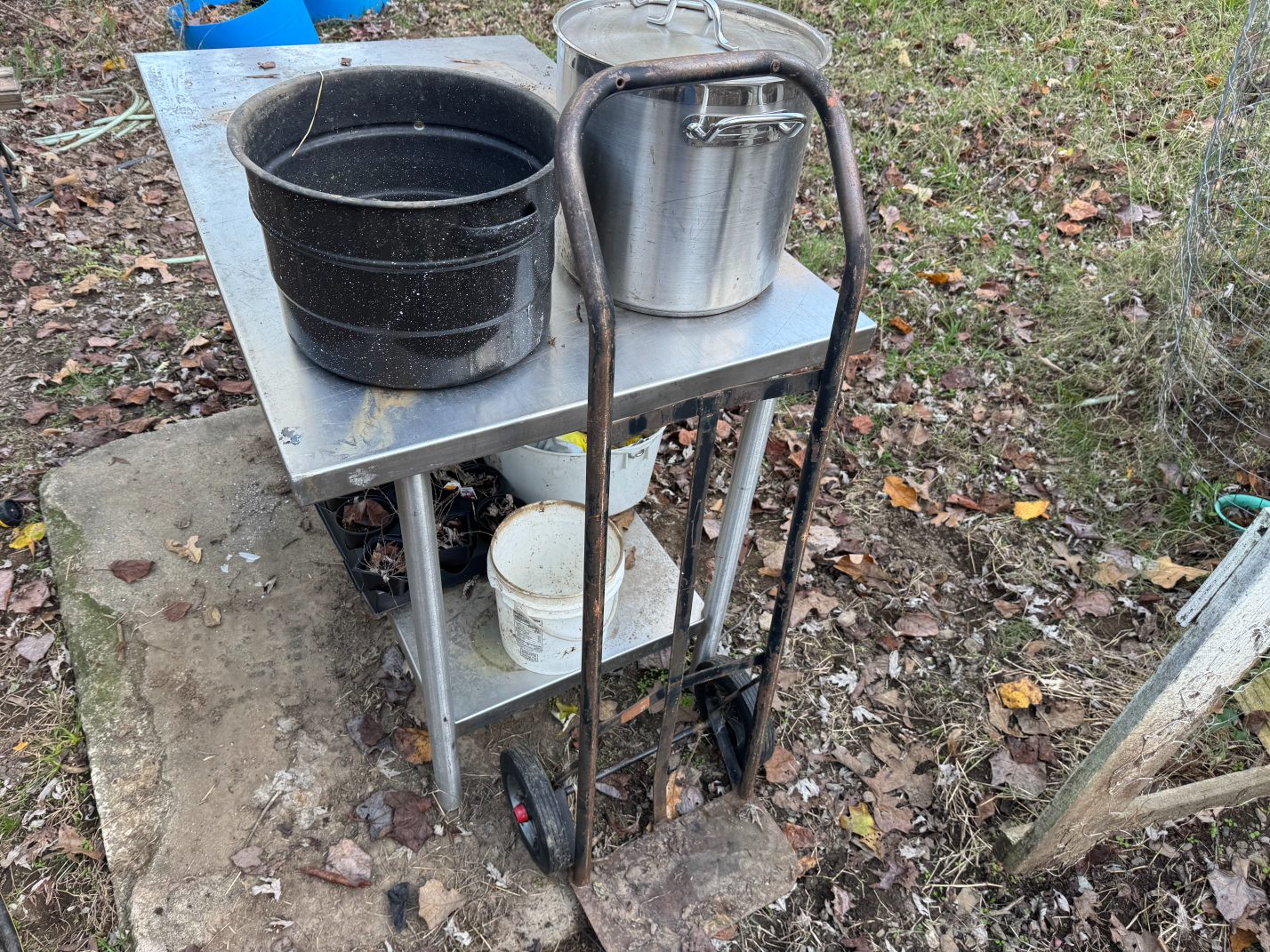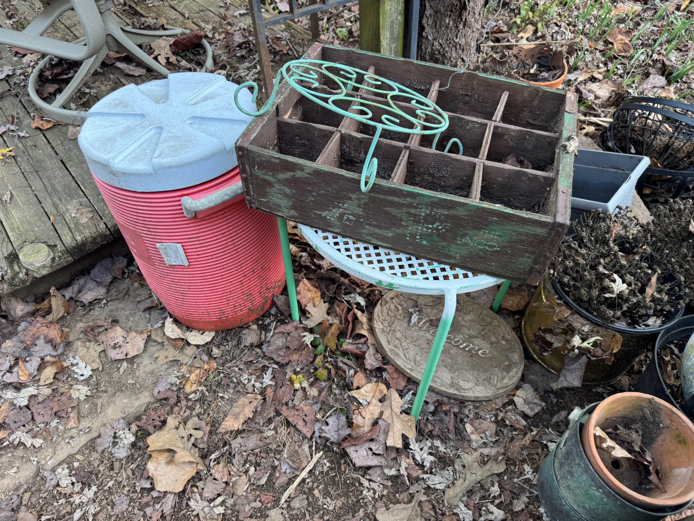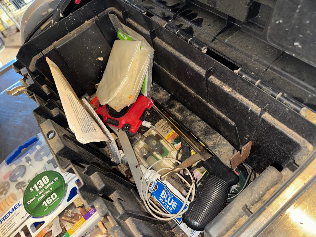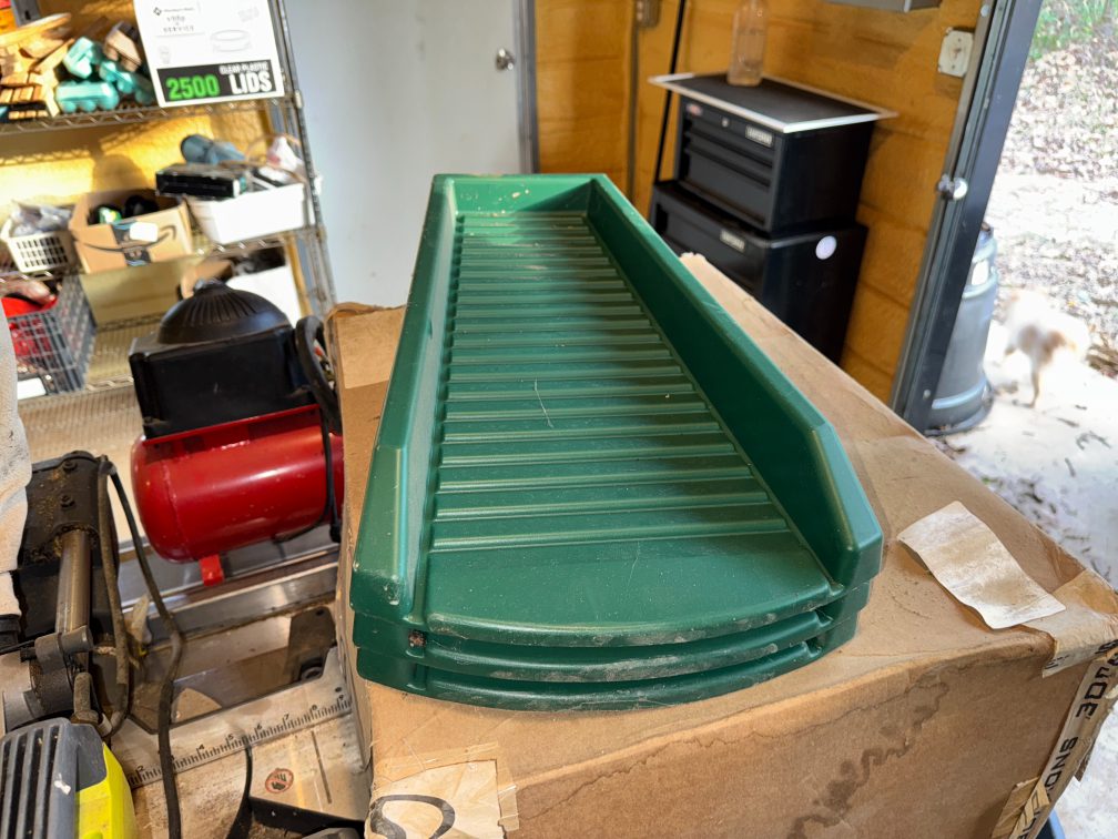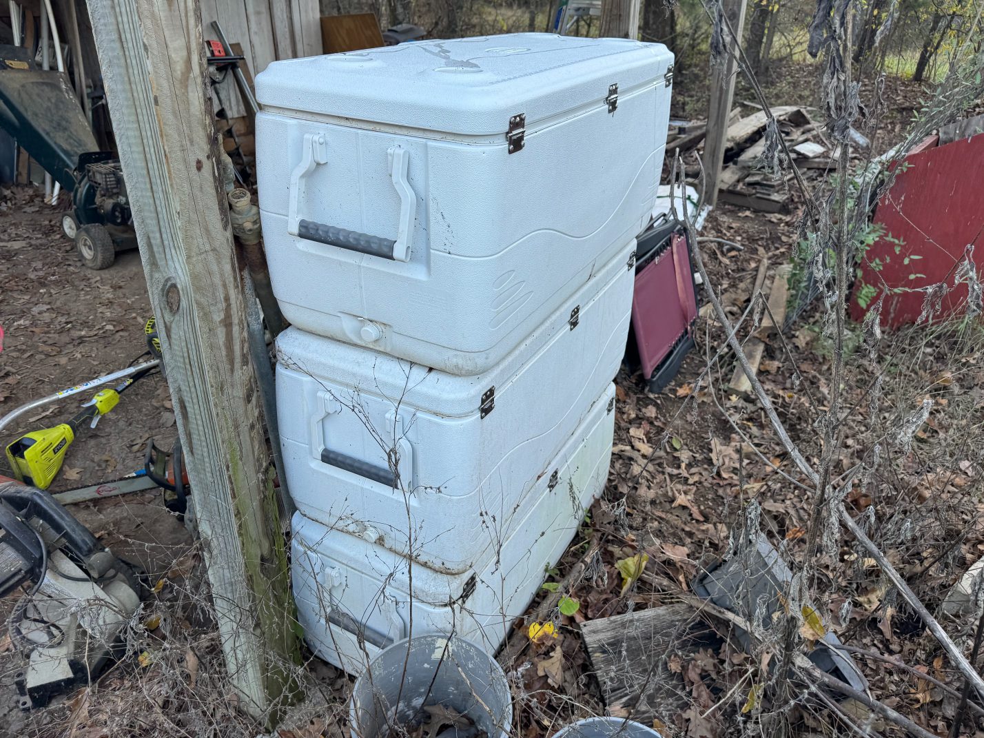 Tools/Shop Items: Sears Reciprocating Saw – Black & Decker Power Miter Saw – Stihl Chainsaw – Come Along – Belt Sander – Bench Vise – Log Chain – Chain Binder – Sledgehammers – Freeze Proof Faucet – Axes – Tile Saw – Ryobi Electric Weed Eater – Stihl Weedeater – Concrete Finish Tools – Gardening Hand Tools – Aluminum 6 Ft Ladder – Gas Cans – Electrical Meter Jacks – Wire Panels – Sheet Metal – Extension Cords – 50-Gallon Plastic Barrels – Dolly – Wood Crates – Wood Milk Crate – Motorcycle Helmets – Rotozip – Tools – Toolbox – Skilsaw – Toolboxes – Dremel Tools – Ryobi Compound Miter Saw – Brass Couplings – Spigot Valves – Extension Ladder – Yard Dump Trailer – Wilderness Pungo 100 Kayak – Air Compressor – Water Pumps – Grow Equipment – Table Saw On Stand – Vinyl Windows – Glass Blocks – Rubbermaid Feed Trough – Irrigation Supplies – Sprinkler Heads – Rake Heads – Propane Tank – Garden Hose – Buckets – Metal Sprinkler – Brute Trash Can – Lettuce Washer – Fire Extinguisher – Popup Canopies – Stainless Tables – Stainless Racks – Metal Cart – Stools – Metal Shelf – Propane Heater – Ice Chests – Planters