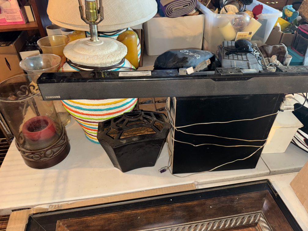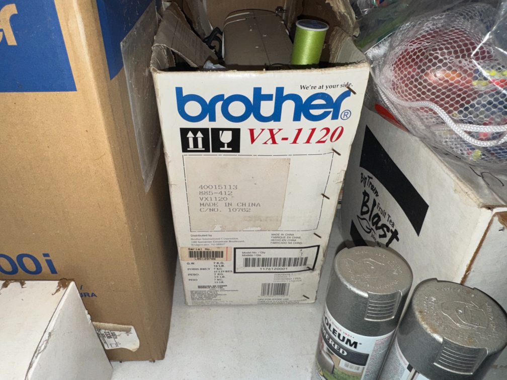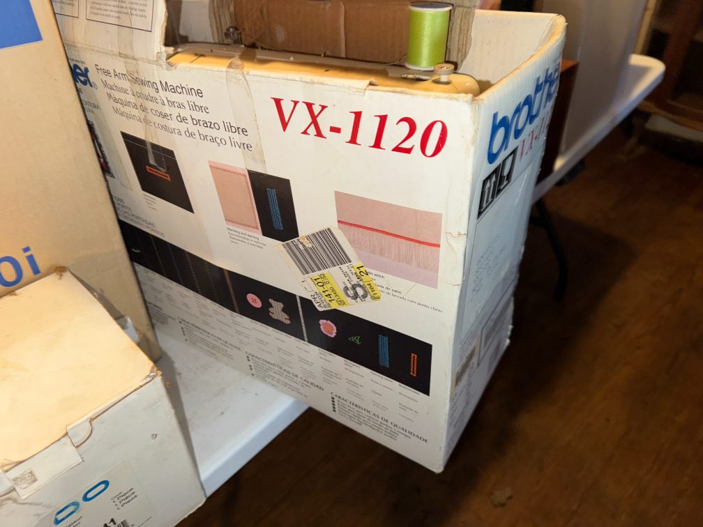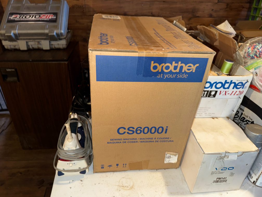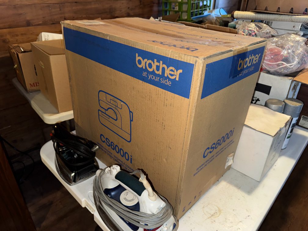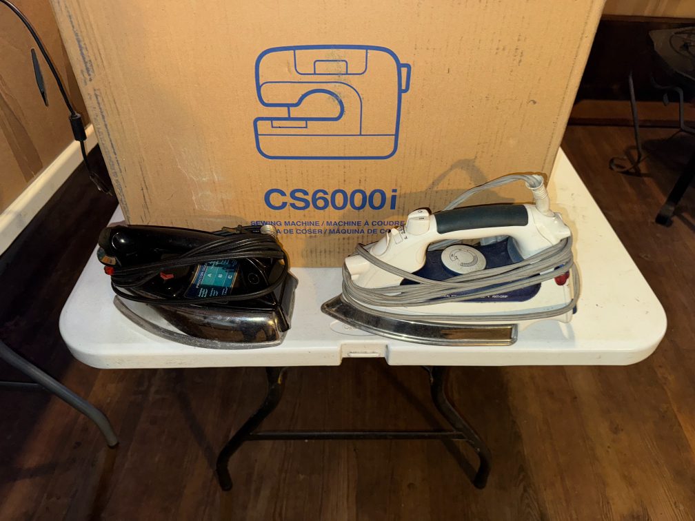 Furniture/Household Items: Folding Chairs – Stainless Tables – Wrought Iron Table – Patio Table & Chairs – Propane Double Grill W/ Burner – Wood Table & Chairs – Samsung Television – Chest Of Drawers – Pictures – Paintings – Samsung Soundbar – Lamps – Ladder Toss Game – Wood Coffee Table – Bulletin Boards – Oak Dresser – Speakers – Nightstands – Stainless Shelves – Oak Curio Cabinet – White Dresser – Upright Dresser – Kenmore Washer & Dryer – Leather Sofa – Baker’s Rack – Stainless Pot – Enamel Pot – Propane Patio Heater – Lifetime Folding Tables – Sifters – Cast Iron Waffle Iron – Cast Iron Skillets – Candle Holders – Weighted Blanket – (New) Brother Cs6000i Sewing Machine – Brother Vx1120 Sewing Machine