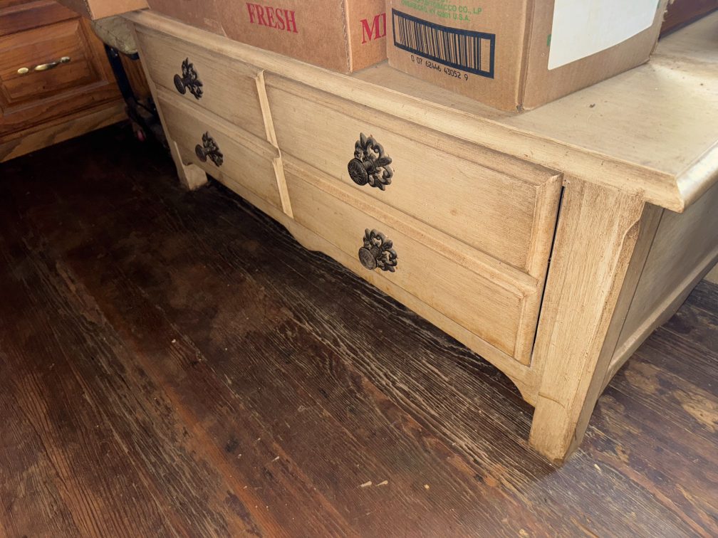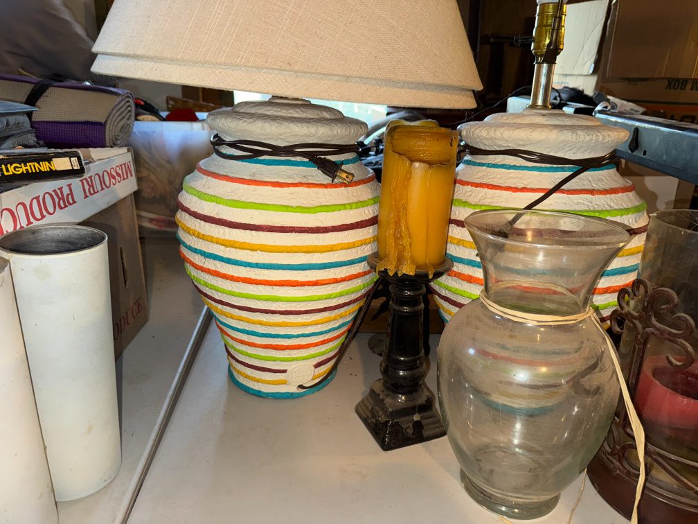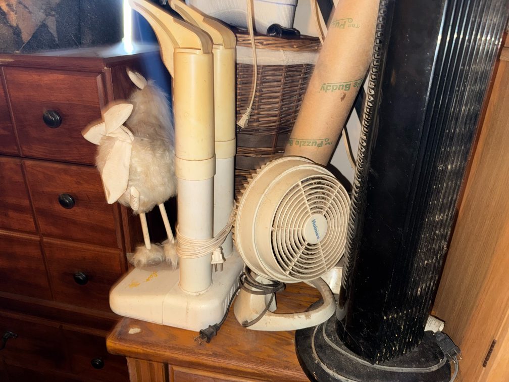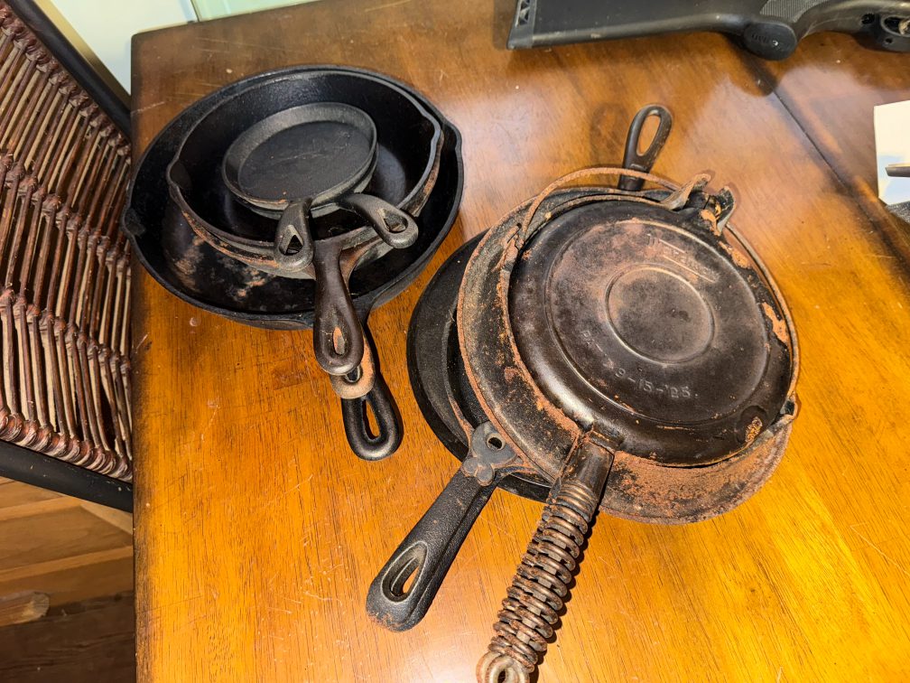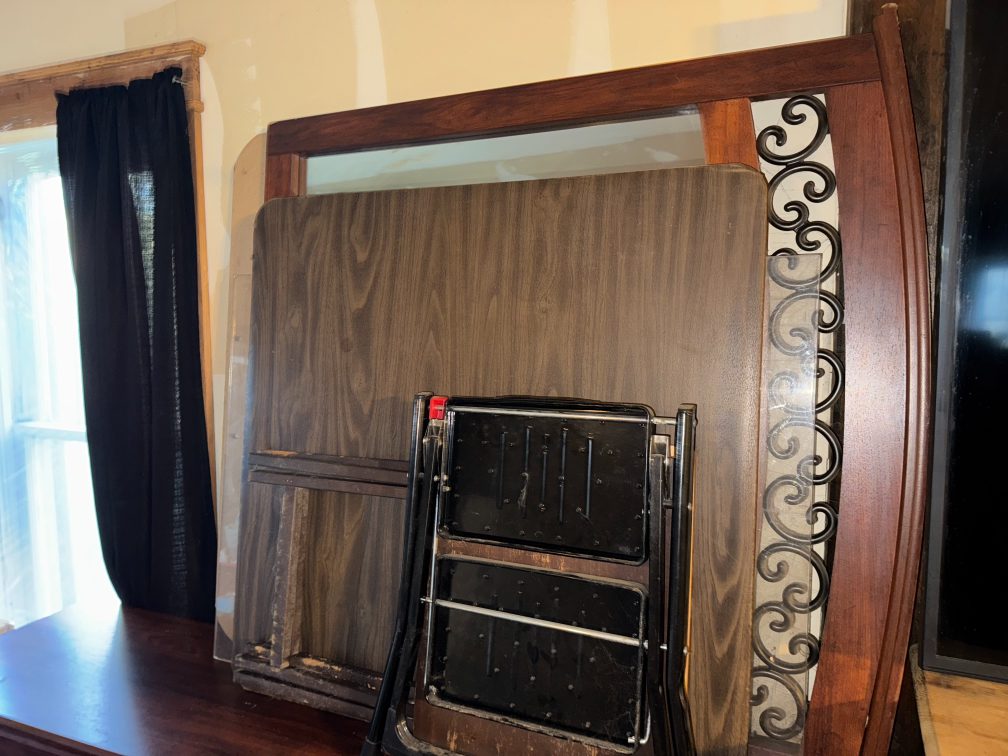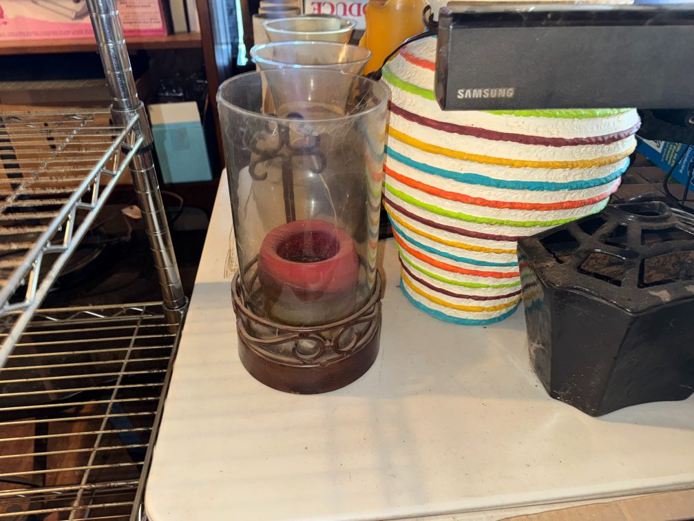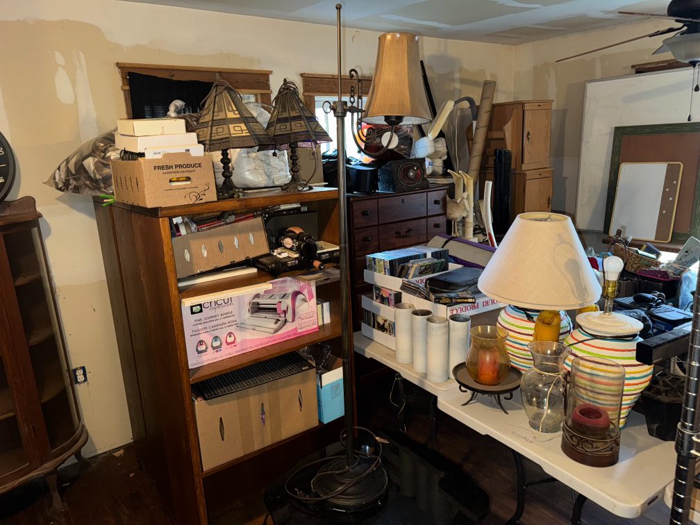 Furniture/Household Items: Folding Chairs – Stainless Tables – Wrought Iron Table – Patio Table & Chairs – Propane Double Grill W/ Burner – Wood Table & Chairs – Samsung Television – Chest Of Drawers – Pictures – Paintings – Samsung Soundbar – Lamps – Ladder Toss Game – Wood Coffee Table – Bulletin Boards – Oak Dresser – Speakers – Nightstands – Stainless Shelves – Oak Curio Cabinet – White Dresser – Upright Dresser – Kenmore Washer & Dryer – Leather Sofa – Baker’s Rack – Stainless Pot – Enamel Pot – Propane Patio Heater – Lifetime Folding Tables – Sifters – Cast Iron Waffle Iron – Cast Iron Skillets – Candle Holders – Weighted Blanket – (New) Brother Cs6000i Sewing Machine – Brother Vx1120 Sewing Machine