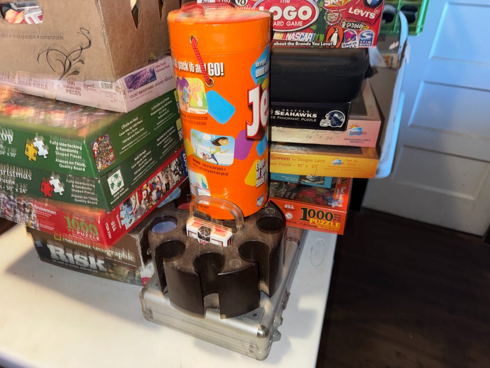 And: Bags Of Compost – Scrap Wire – Greenhouse Frame – Drone – Pellet Rifle – Purses – Service Holsters/Belts/Handcuff Holders – Leather Bags – Movies – Puzzles – Cricut Machine – Squares – Egg Cartons – Concrete Blocks