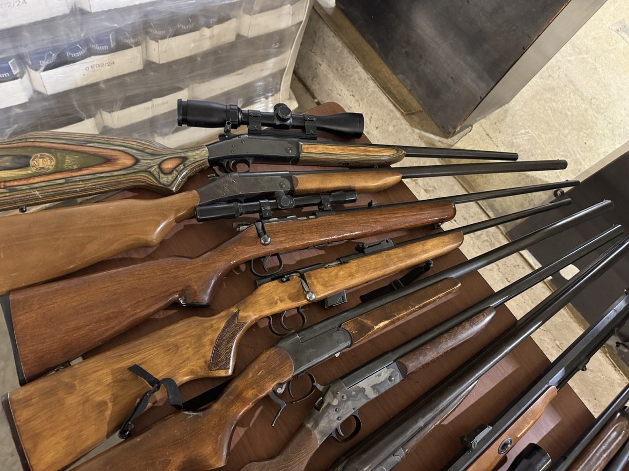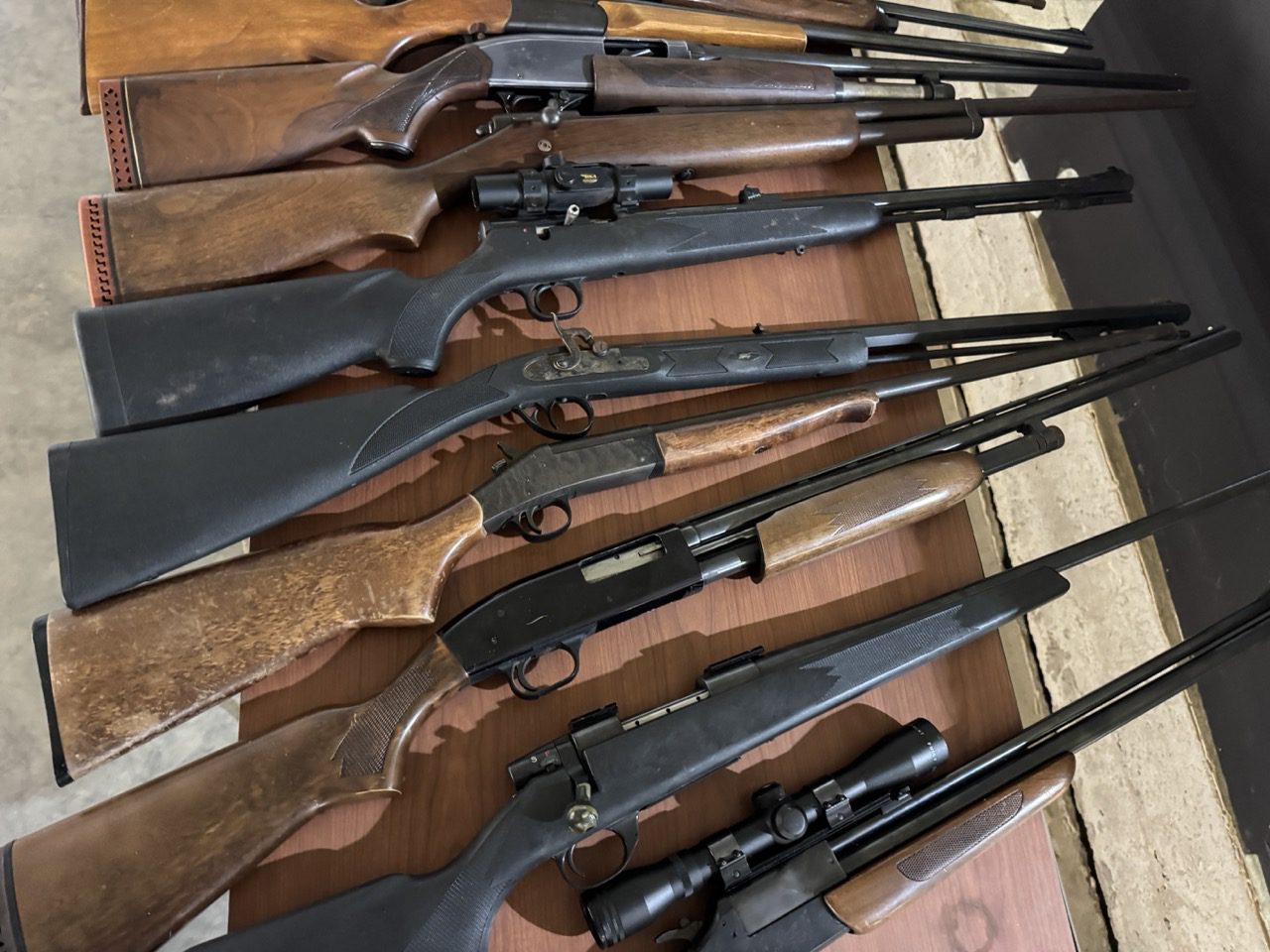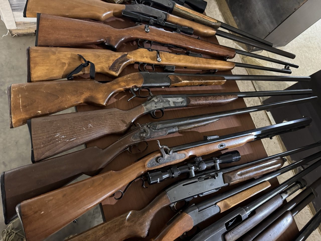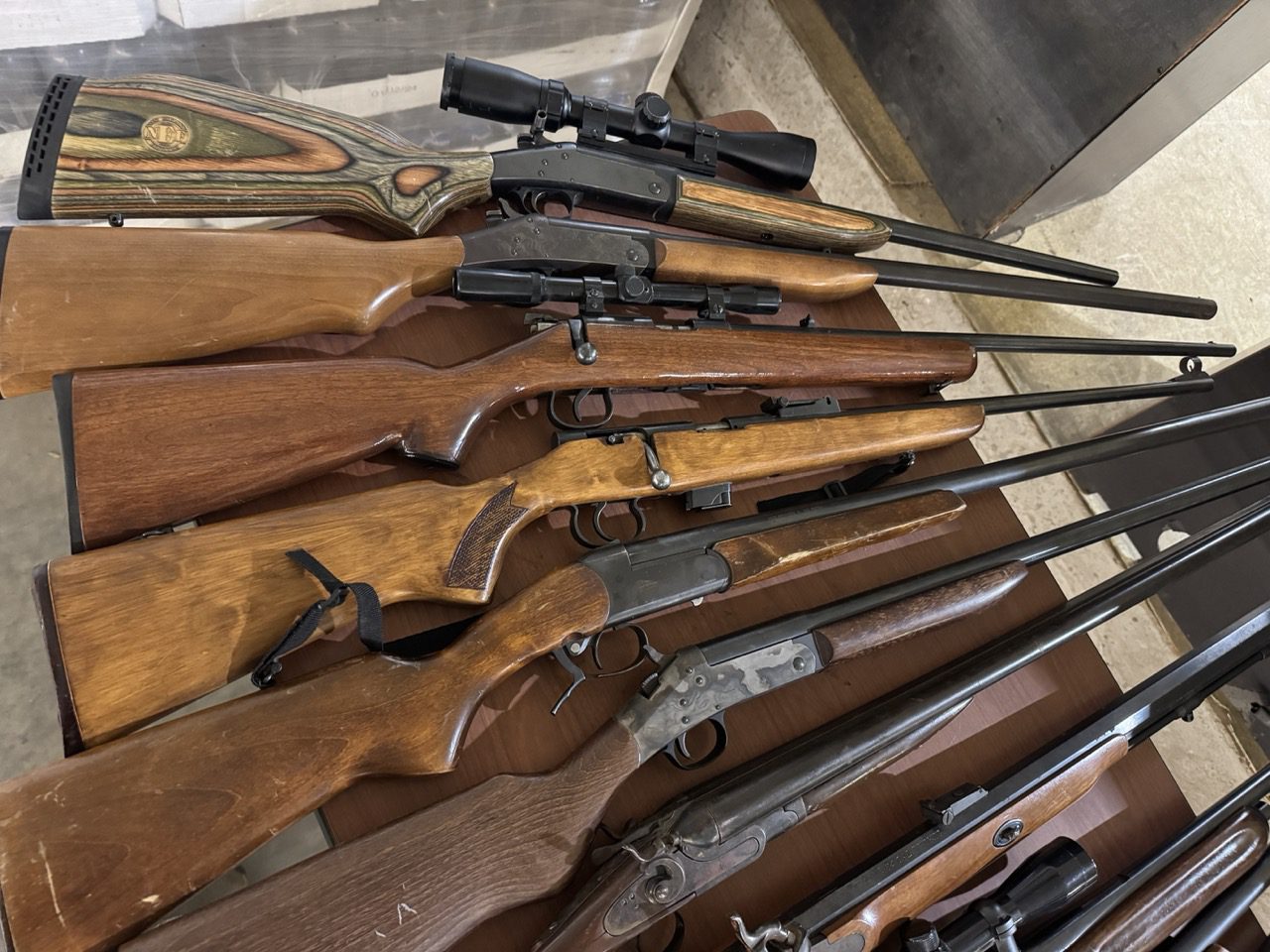 Guns:Â Weatherby Vanguard 22-250 – Savage 24V 22 Over 20ga – New England Pardner 410 SS – JC Higgins 16ga Bolt – Remington Spartan 20ga – Remington 740 280 – Mossberg 20ga Pump – Winchester 1200 20ga Pump – Marlin 200 12ga – Remington 12ga SS – USSR 22 Bolt Action – H&R 12ga SS – New England 270 SS – Thompson Center 54 Cal BP – Thompson Center 50 Cal BP – CVA 50 Cal BP