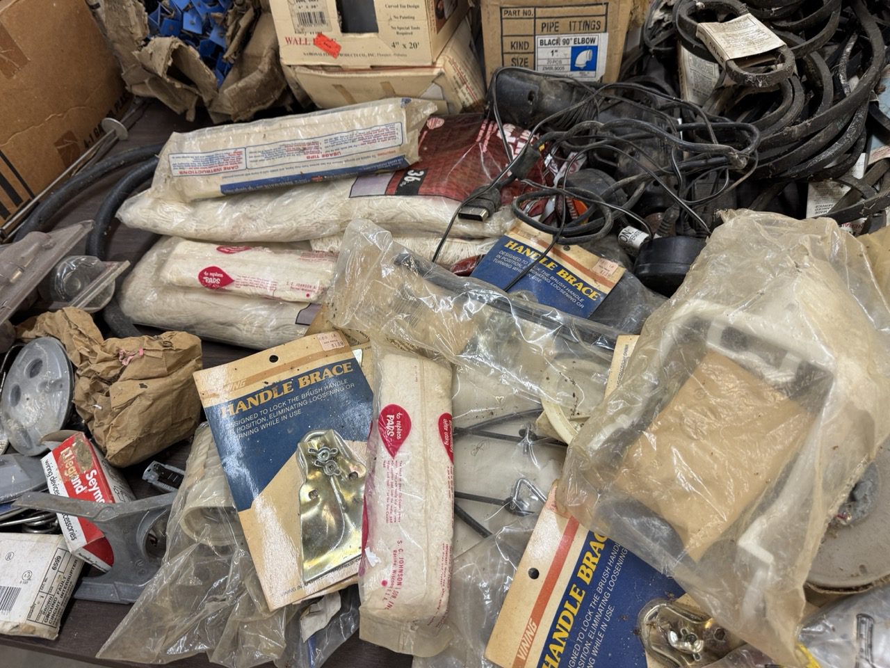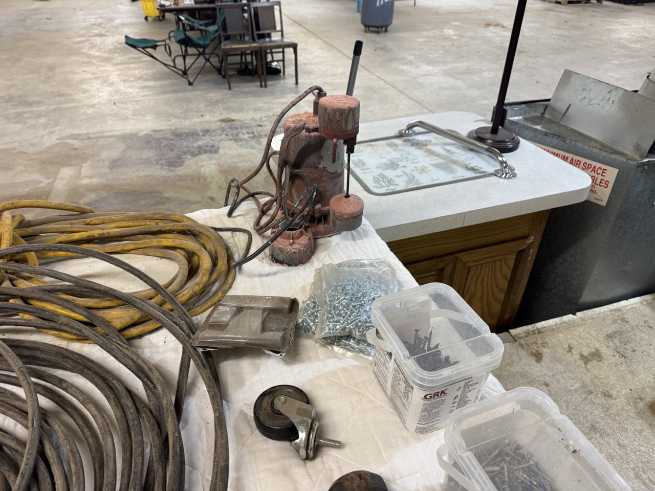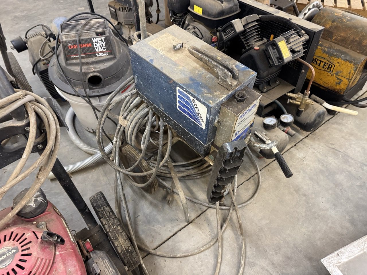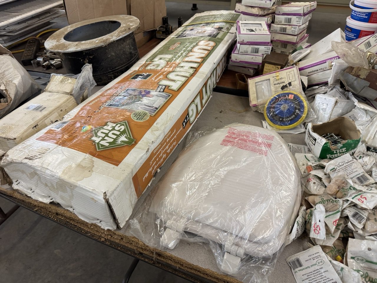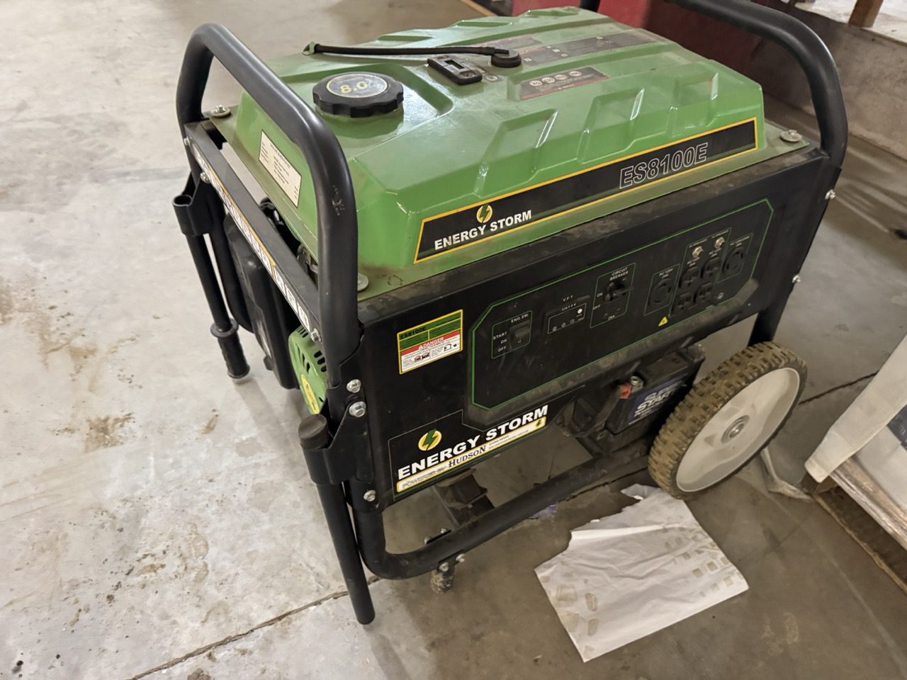 Building Supplies & Tools: (Appx 75) Boxes Sheet Metal Screws – 5ft Metal Brake – Energy Storm ES8100E Generator – Pipe Threader – Industrial Air Compressor – Pipe Wrenches – Electrical Wire – Attic Stairs – Ceiling Fans – Sump Pump – Drill Press – Power Cords – Paint Sprayer Hoses – Air Nailers – De Humidifiers – Fiberglass Ladders – Ratchets – Hammers – Hose Reels – Toilets – Sinks – Welding Helmets – Electrical Supplies – Power Washer – Airless Paint Sprayer – Weedeater On Wheels – Pipe Insulation – Power Inverters – New Faucets – Sand Paper – Cut Off Blades – PVC Fittings – Sheet Metal – Metal Trim – PVC Pipe