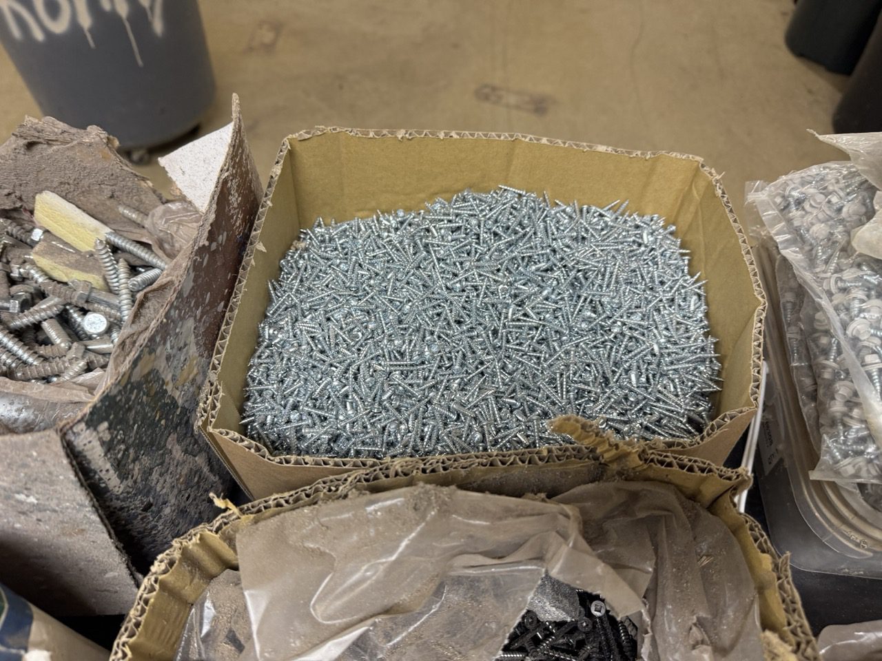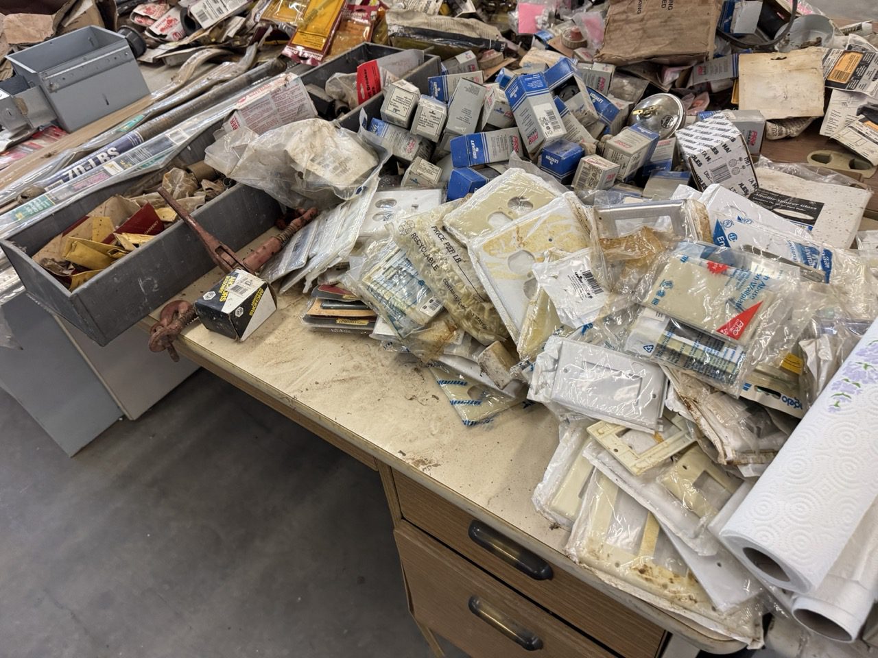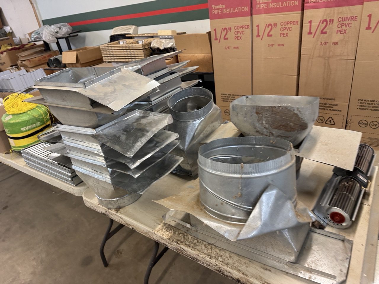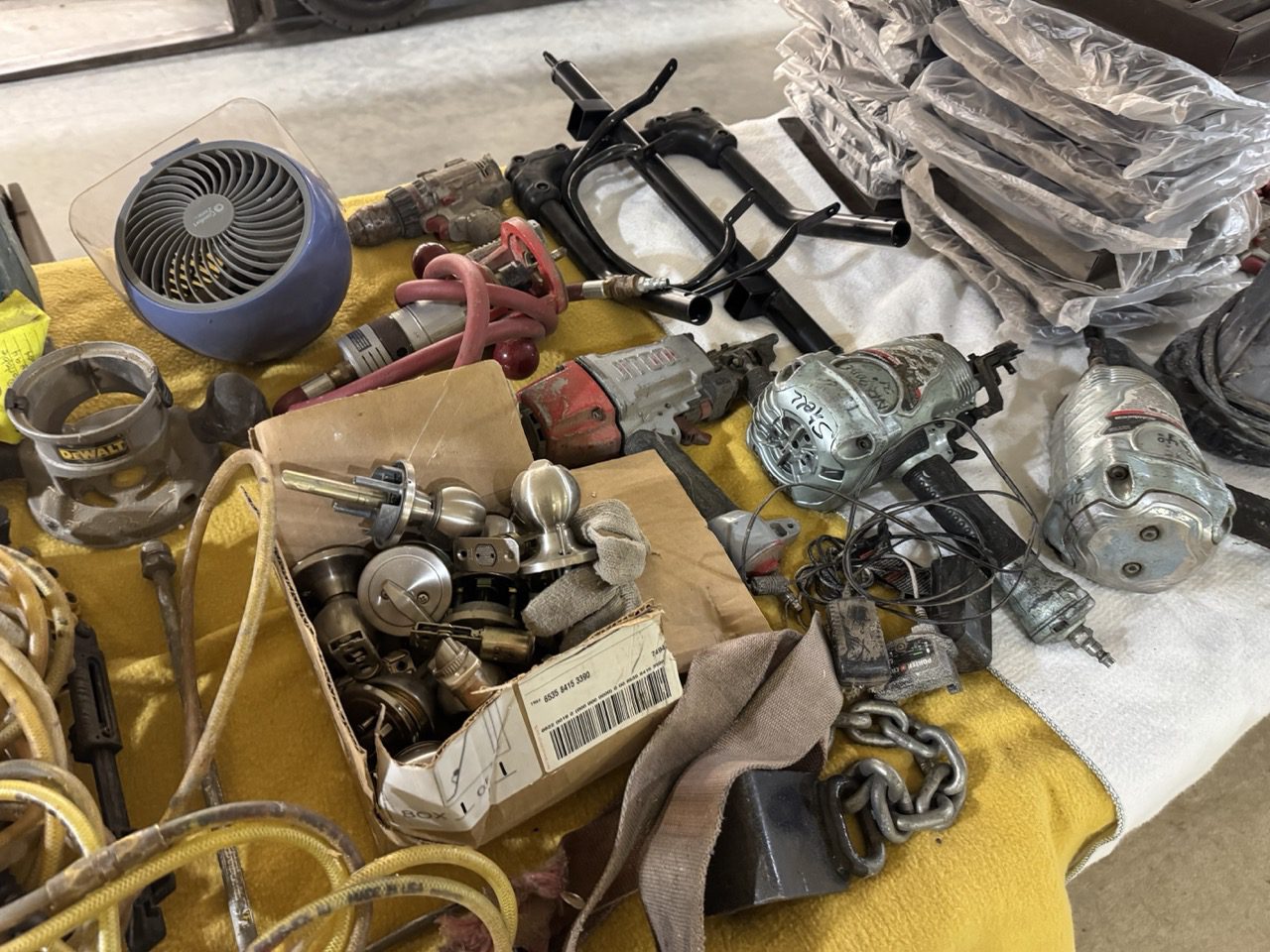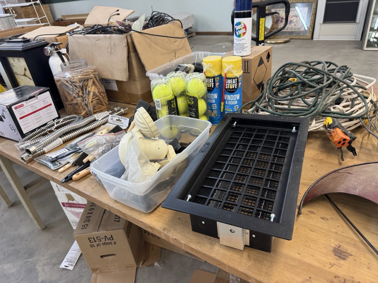 Building Supplies & Tools: (Appx 75) Boxes Sheet Metal Screws – 5ft Metal Brake – Energy Storm ES8100E Generator – Pipe Threader – Industrial Air Compressor – Pipe Wrenches – Electrical Wire – Attic Stairs – Ceiling Fans – Sump Pump – Drill Press – Power Cords – Paint Sprayer Hoses – Air Nailers – De Humidifiers – Fiberglass Ladders – Ratchets – Hammers – Hose Reels – Toilets – Sinks – Welding Helmets – Electrical Supplies – Power Washer – Airless Paint Sprayer – Weedeater On Wheels – Pipe Insulation – Power Inverters – New Faucets – Sand Paper – Cut Off Blades – PVC Fittings – Sheet Metal – Metal Trim – PVC Pipe