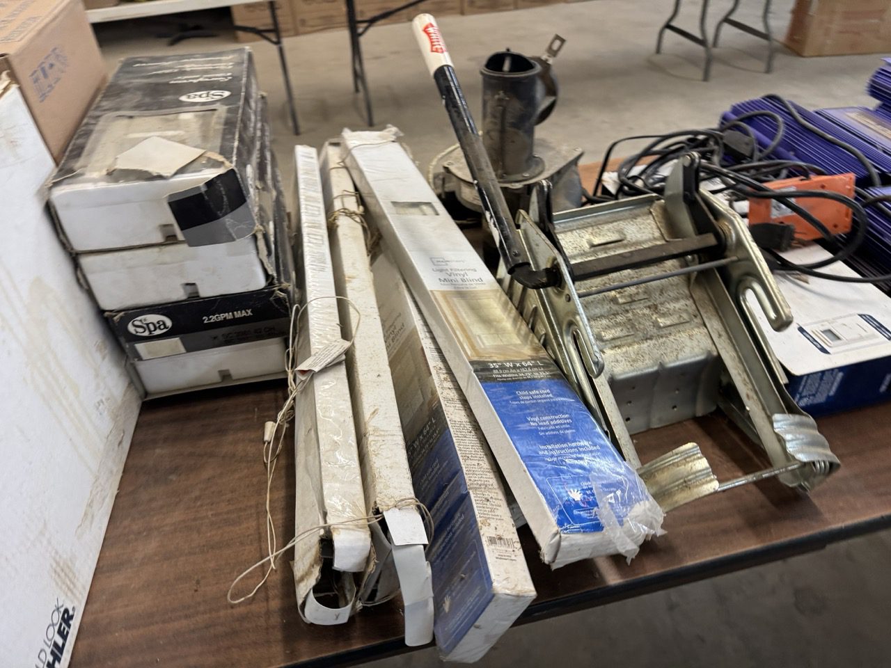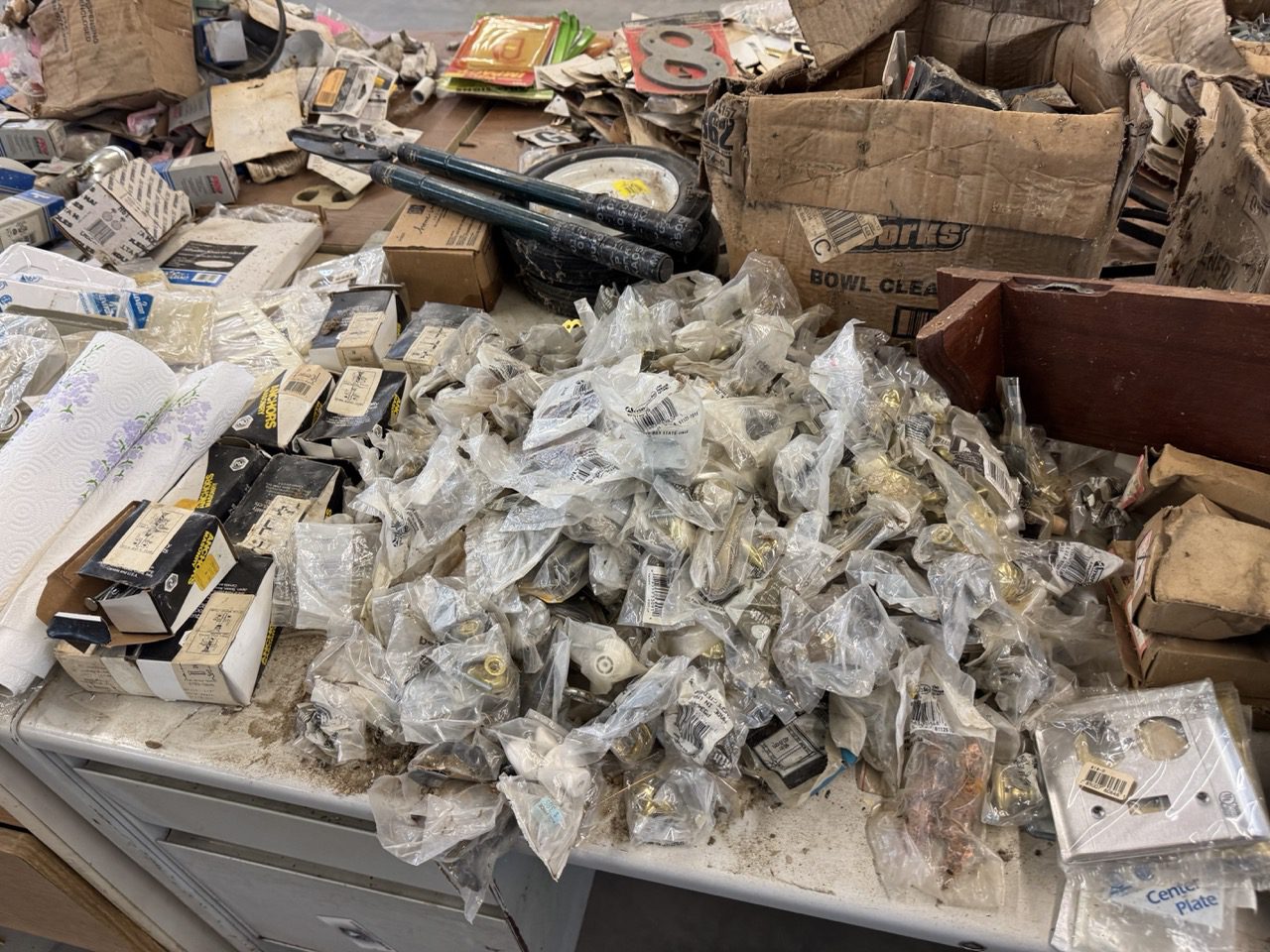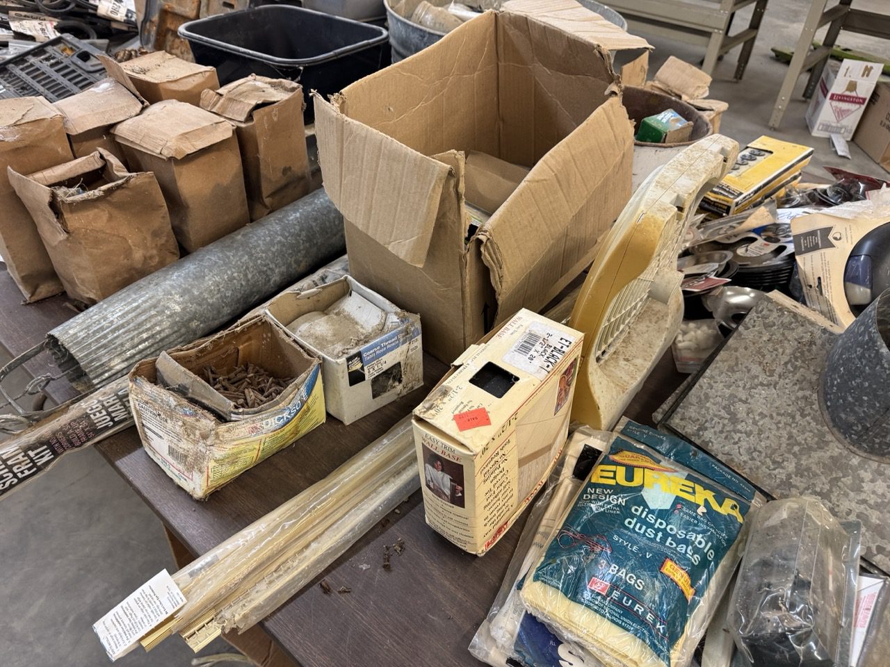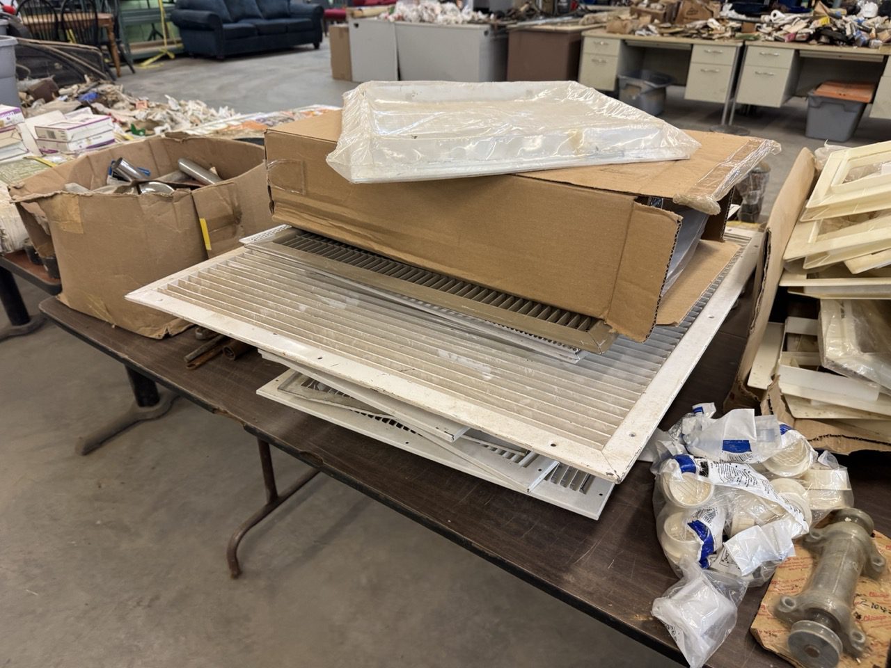 Building Supplies & Tools: (Appx 75) Boxes Sheet Metal Screws – 5ft Metal Brake – Energy Storm ES8100E Generator – Pipe Threader – Industrial Air Compressor – Pipe Wrenches – Electrical Wire – Attic Stairs – Ceiling Fans – Sump Pump – Drill Press – Power Cords – Paint Sprayer Hoses – Air Nailers – De Humidifiers – Fiberglass Ladders – Ratchets – Hammers – Hose Reels – Toilets – Sinks – Welding Helmets – Electrical Supplies – Power Washer – Airless Paint Sprayer – Weedeater On Wheels – Pipe Insulation – Power Inverters – New Faucets – Sand Paper – Cut Off Blades – PVC Fittings – Sheet Metal – Metal Trim – PVC Pipe