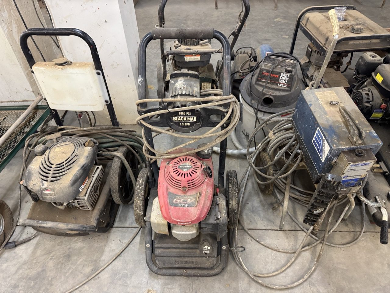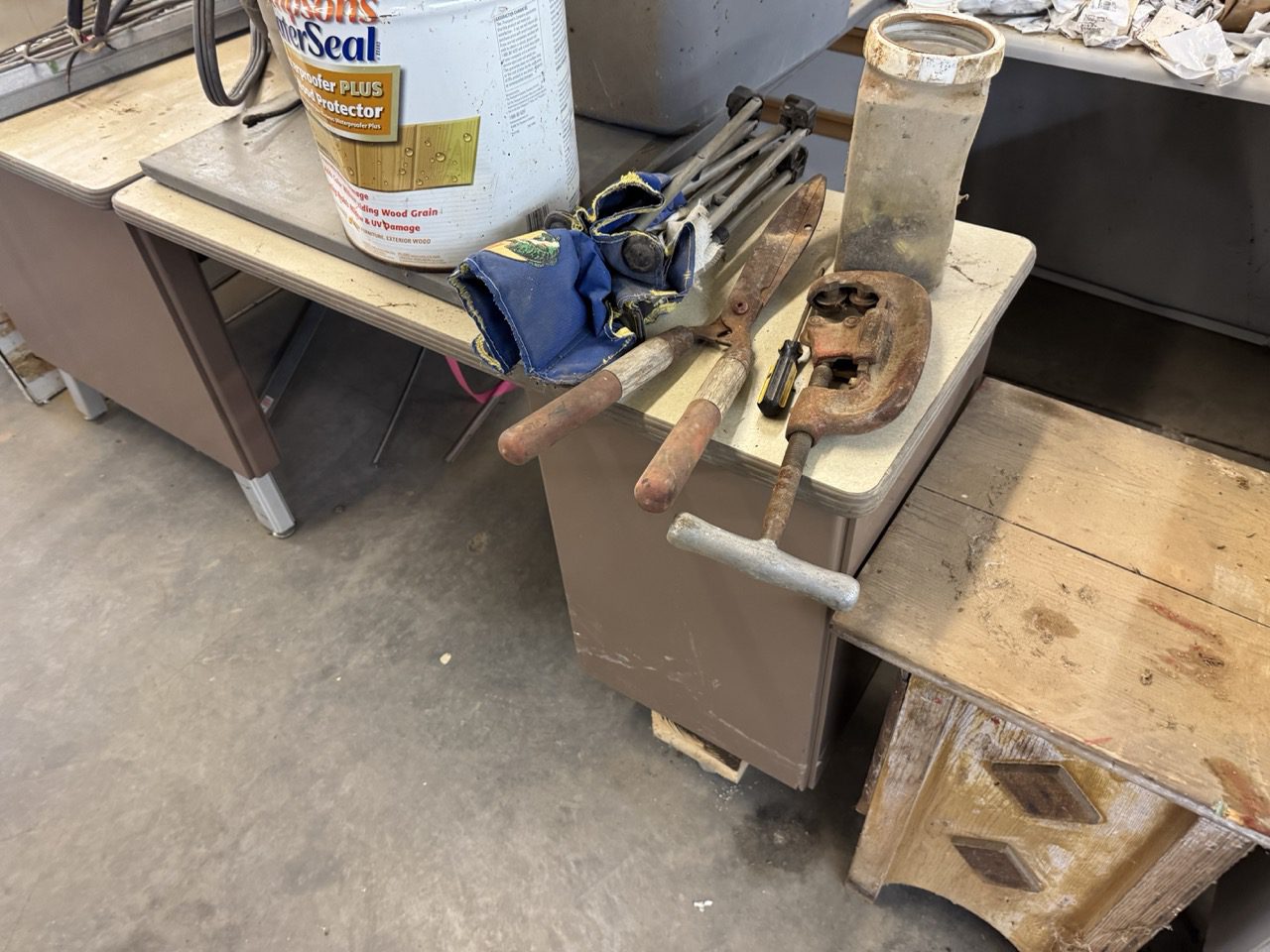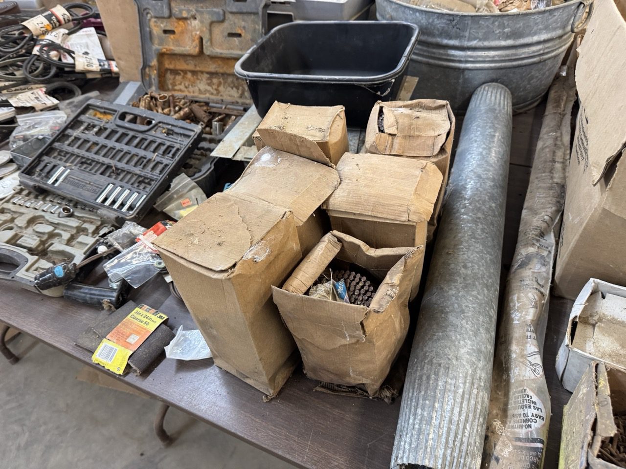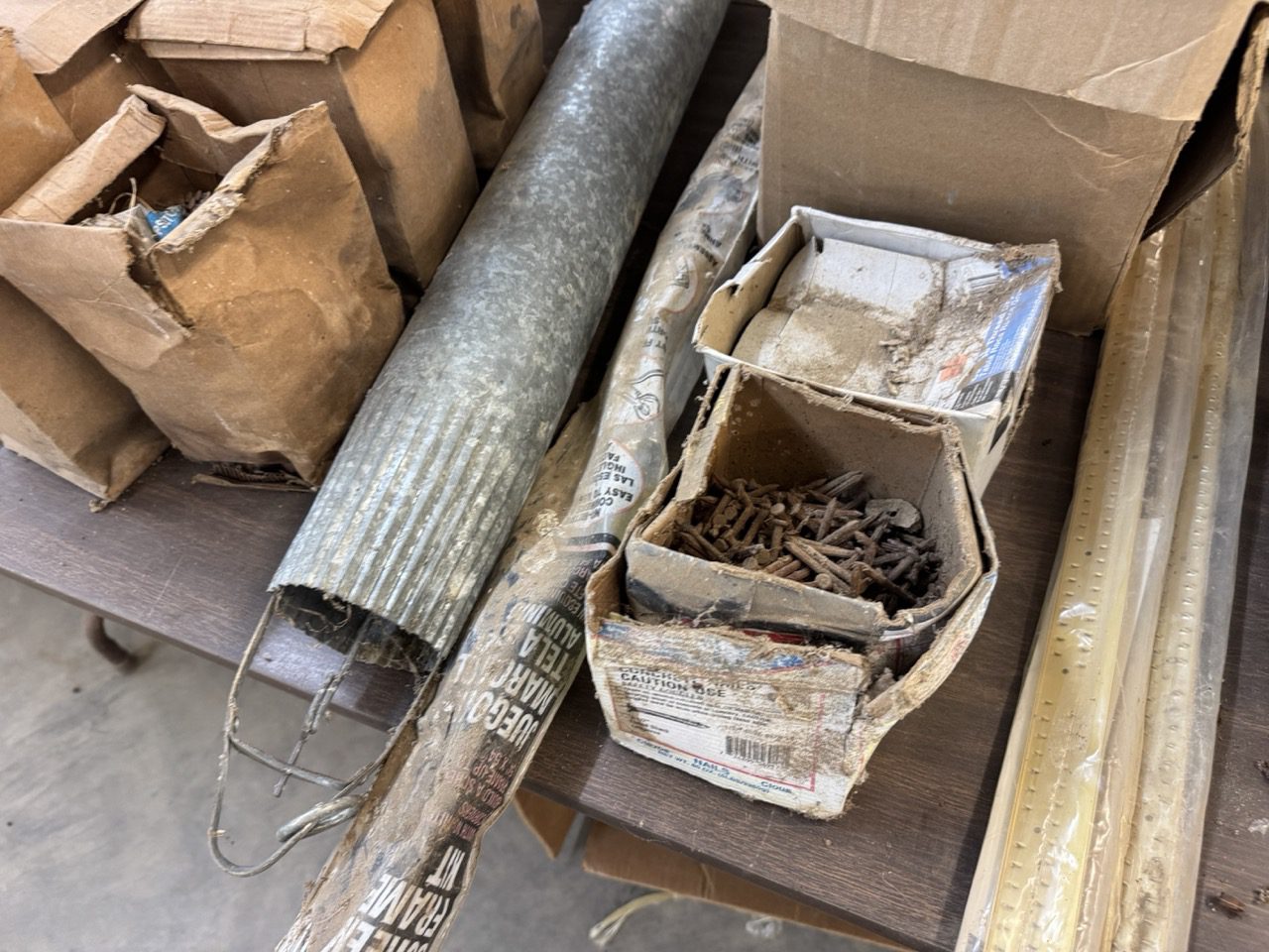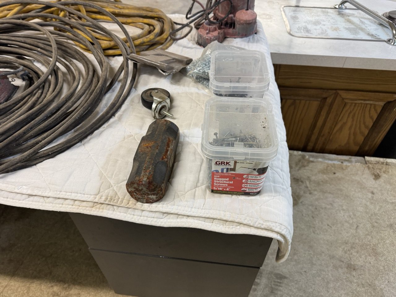 Building Supplies & Tools: (Appx 75) Boxes Sheet Metal Screws – 5ft Metal Brake – Energy Storm ES8100E Generator – Pipe Threader – Industrial Air Compressor – Pipe Wrenches – Electrical Wire – Attic Stairs – Ceiling Fans – Sump Pump – Drill Press – Power Cords – Paint Sprayer Hoses – Air Nailers – De Humidifiers – Fiberglass Ladders – Ratchets – Hammers – Hose Reels – Toilets – Sinks – Welding Helmets – Electrical Supplies – Power Washer – Airless Paint Sprayer – Weedeater On Wheels – Pipe Insulation – Power Inverters – New Faucets – Sand Paper – Cut Off Blades – PVC Fittings – Sheet Metal – Metal Trim – PVC Pipe