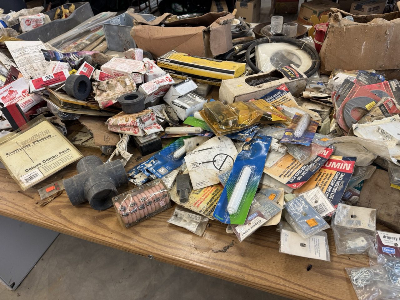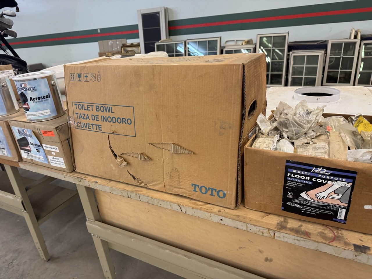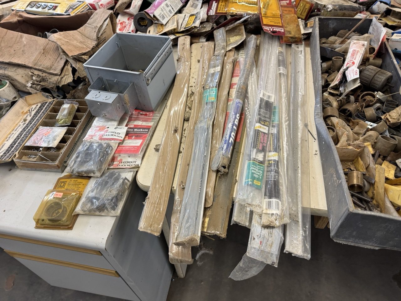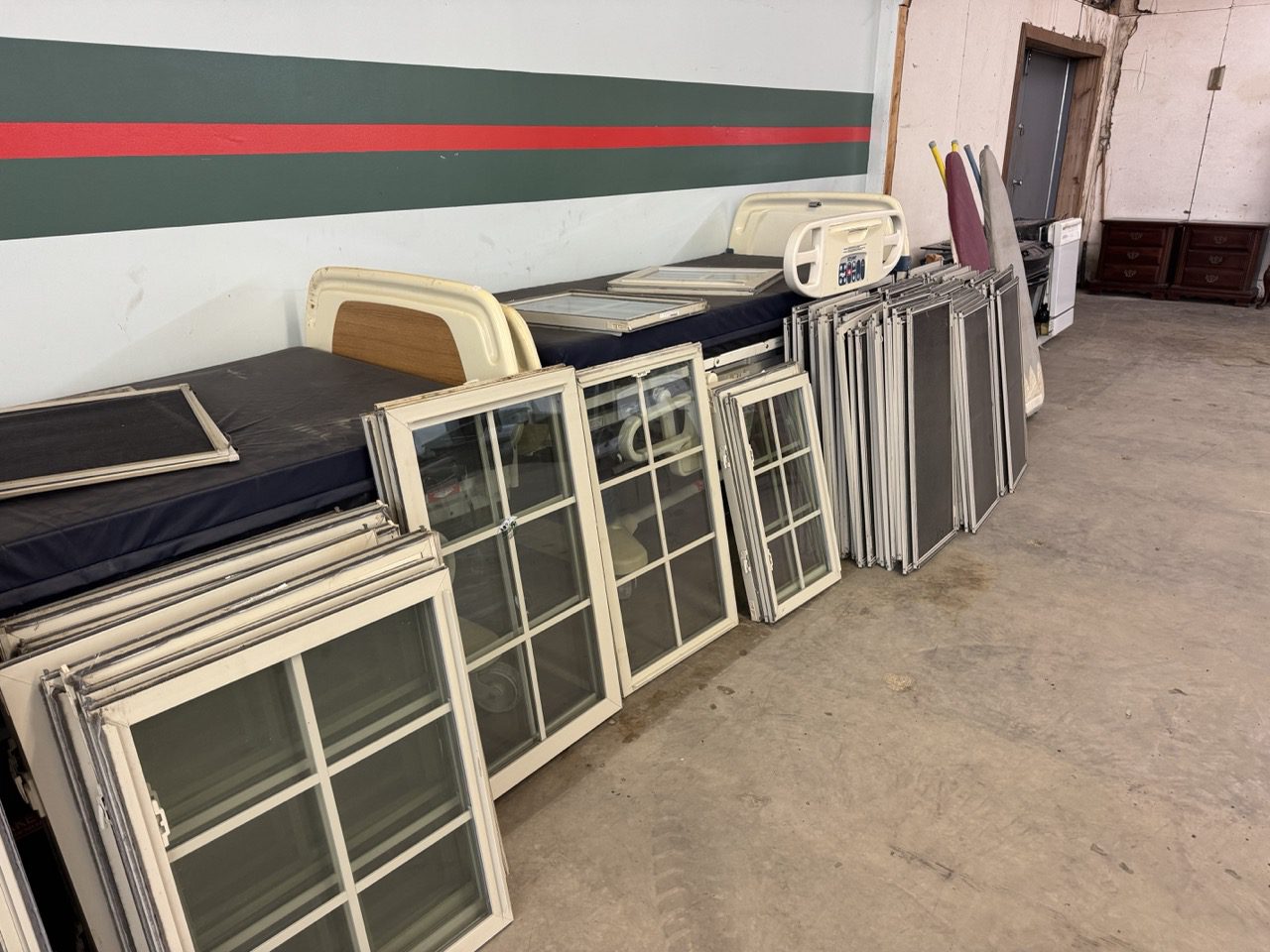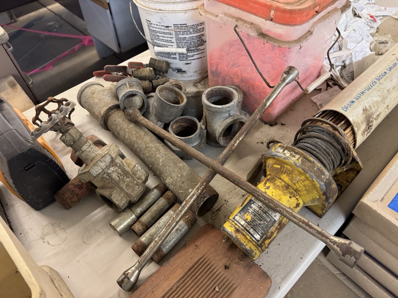 Building Supplies & Tools: (Appx 75) Boxes Sheet Metal Screws – 5ft Metal Brake – Energy Storm ES8100E Generator – Pipe Threader – Industrial Air Compressor – Pipe Wrenches – Electrical Wire – Attic Stairs – Ceiling Fans – Sump Pump – Drill Press – Power Cords – Paint Sprayer Hoses – Air Nailers – De Humidifiers – Fiberglass Ladders – Ratchets – Hammers – Hose Reels – Toilets – Sinks – Welding Helmets – Electrical Supplies – Power Washer – Airless Paint Sprayer – Weedeater On Wheels – Pipe Insulation – Power Inverters – New Faucets – Sand Paper – Cut Off Blades – PVC Fittings – Sheet Metal – Metal Trim – PVC Pipe