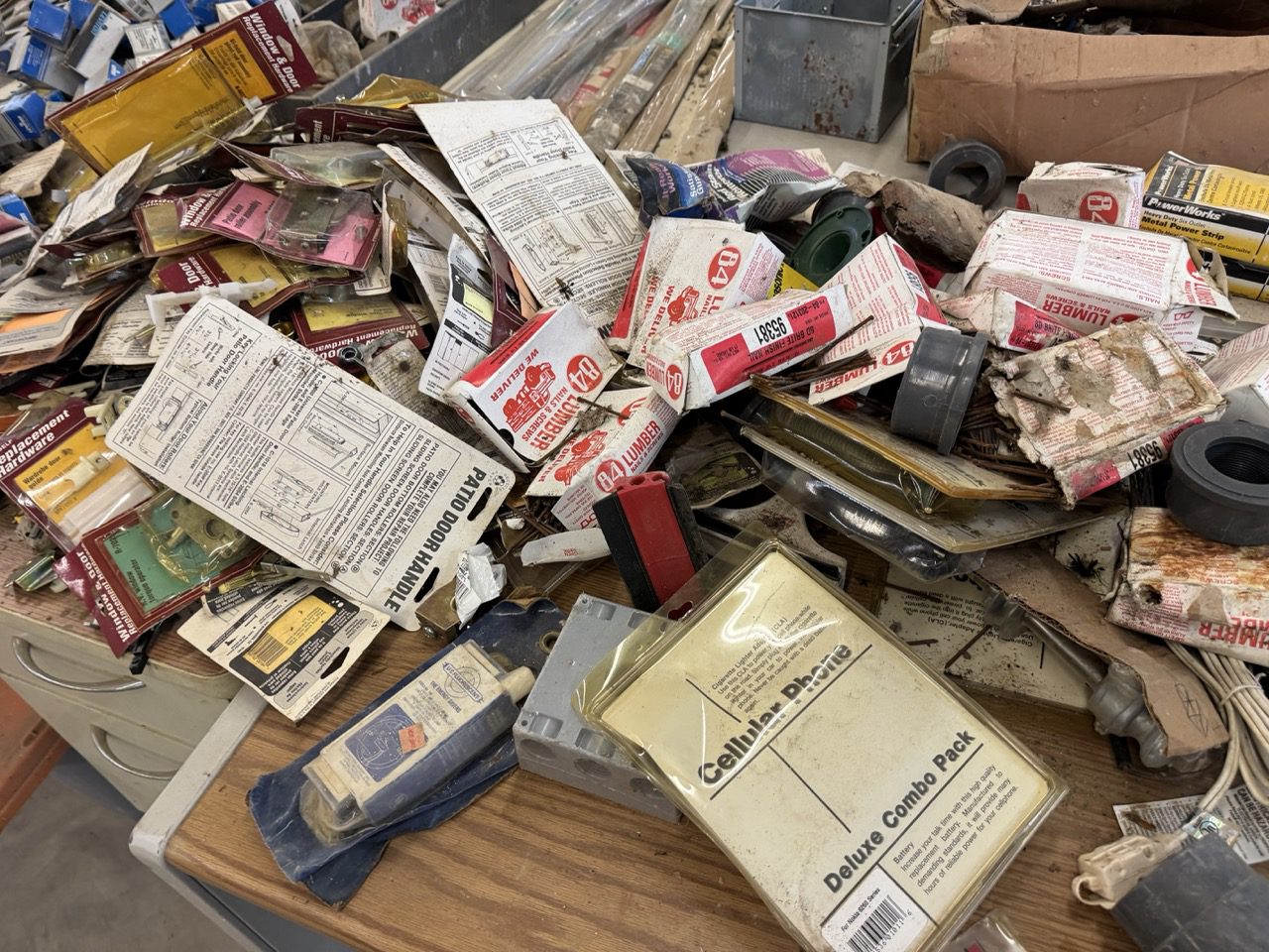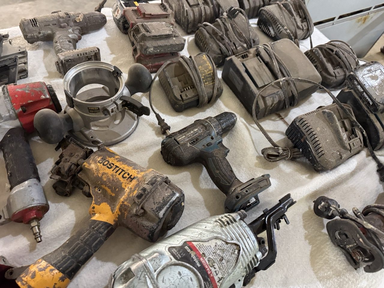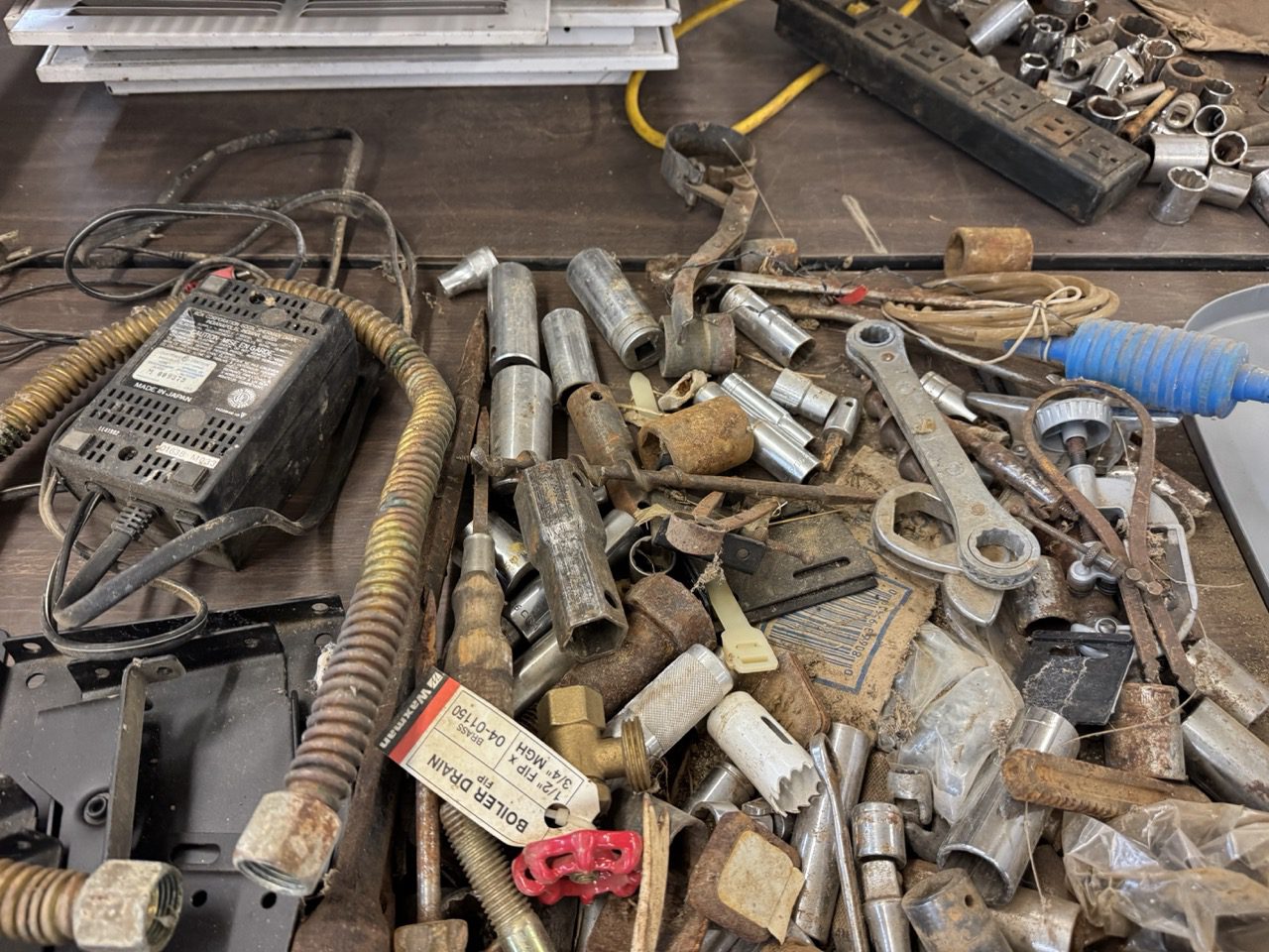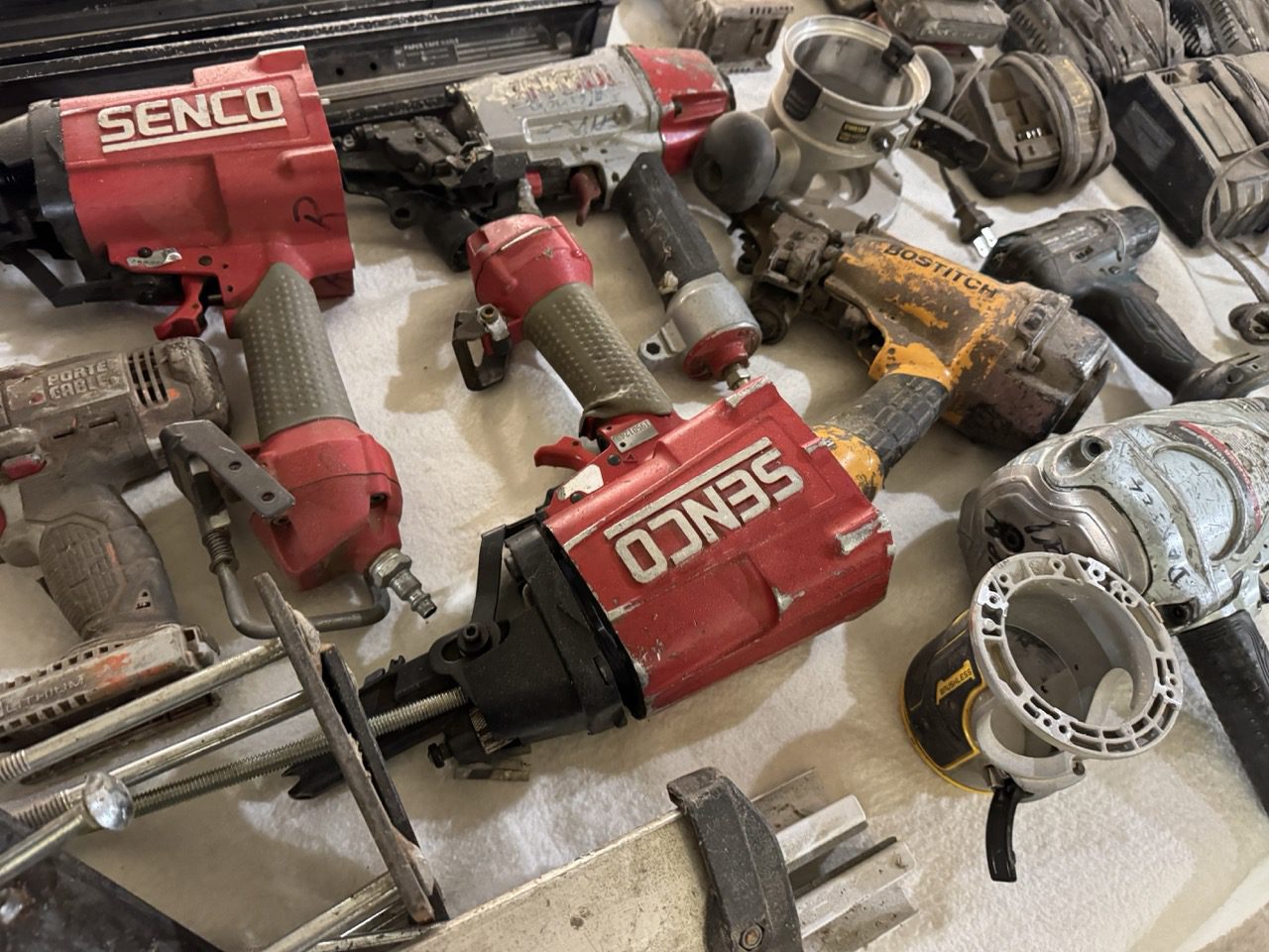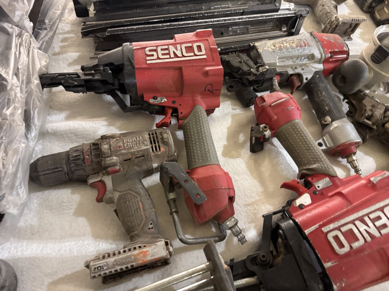 Building Supplies & Tools: (Appx 75) Boxes Sheet Metal Screws – 5ft Metal Brake – Energy Storm ES8100E Generator – Pipe Threader – Industrial Air Compressor – Pipe Wrenches – Electrical Wire – Attic Stairs – Ceiling Fans – Sump Pump – Drill Press – Power Cords – Paint Sprayer Hoses – Air Nailers – De Humidifiers – Fiberglass Ladders – Ratchets – Hammers – Hose Reels – Toilets – Sinks – Welding Helmets – Electrical Supplies – Power Washer – Airless Paint Sprayer – Weedeater On Wheels – Pipe Insulation – Power Inverters – New Faucets – Sand Paper – Cut Off Blades – PVC Fittings – Sheet Metal – Metal Trim – PVC Pipe
