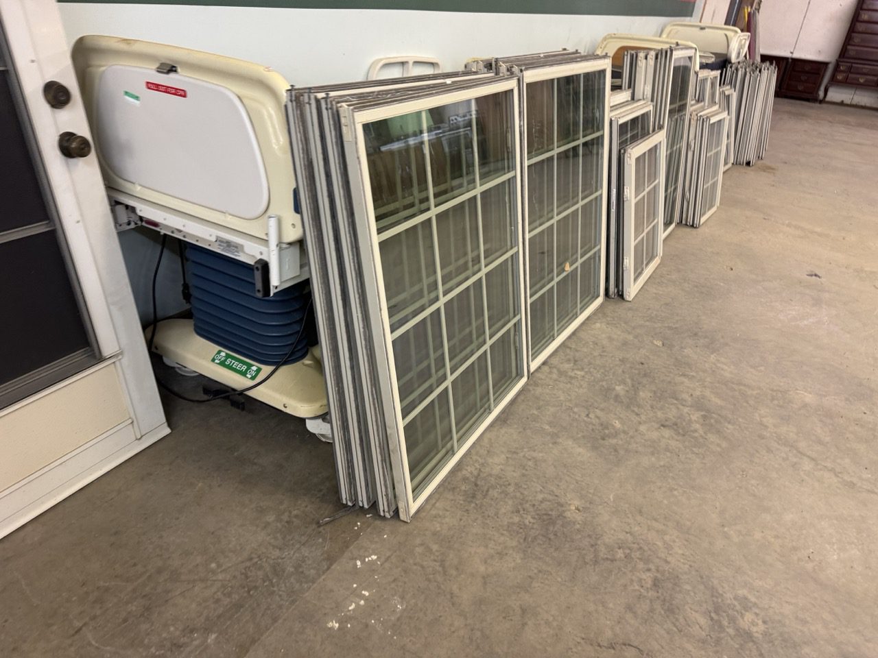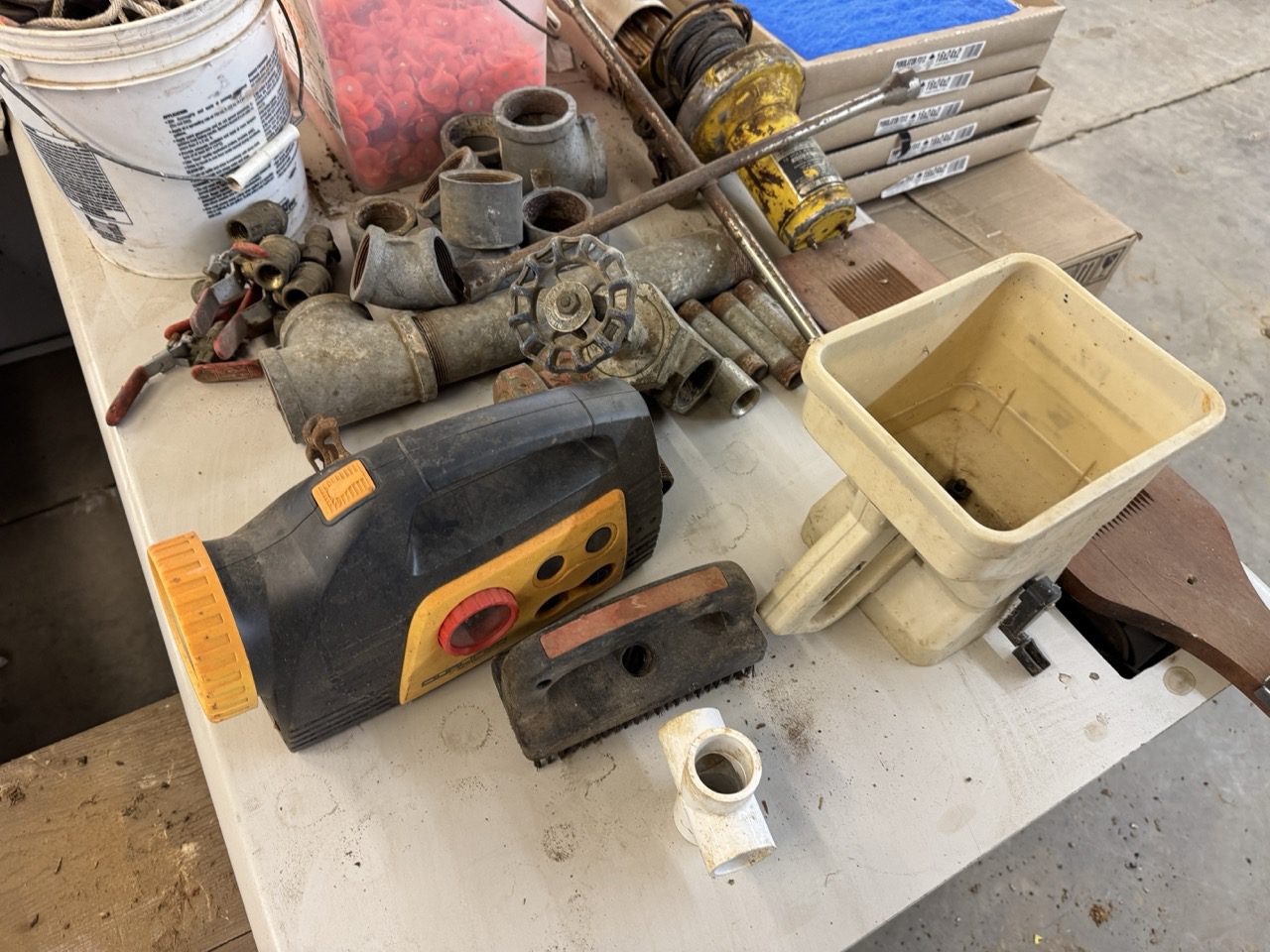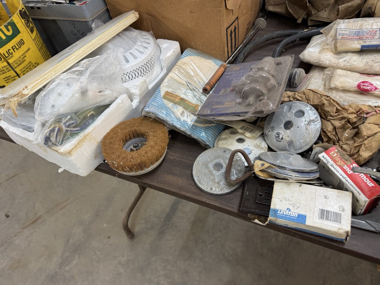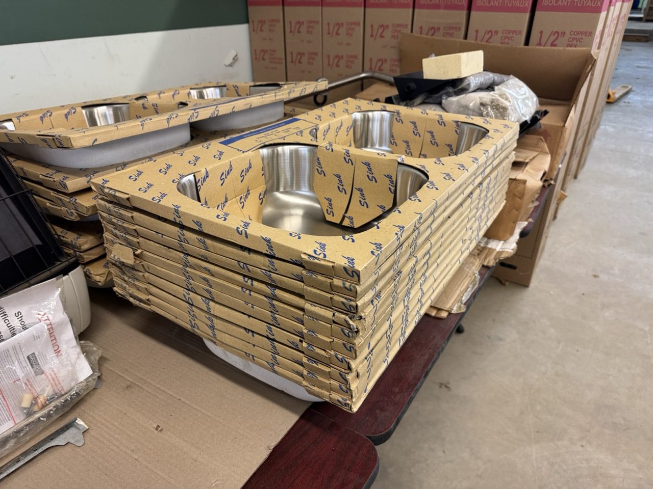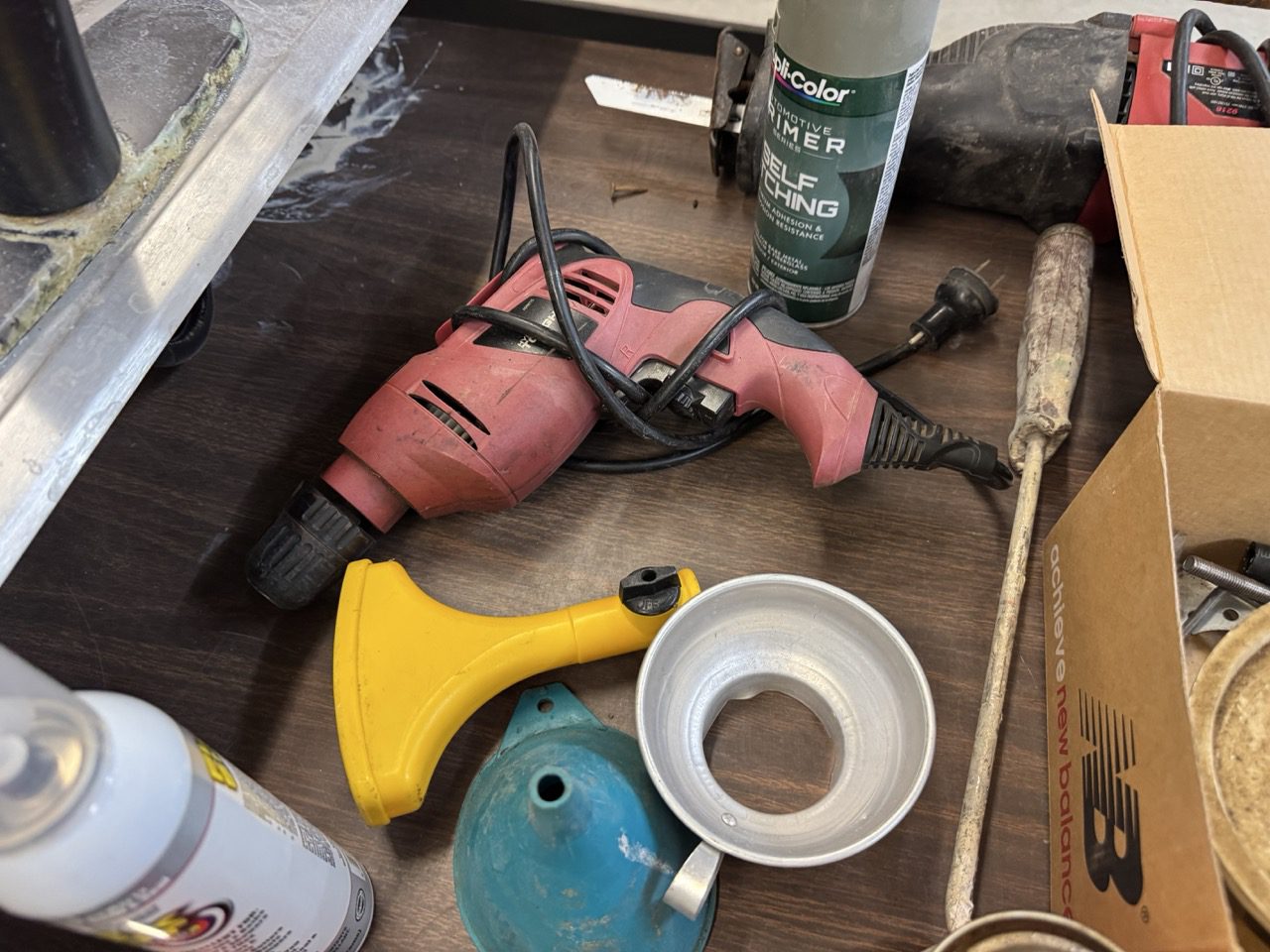 Building Supplies & Tools: (Appx 75) Boxes Sheet Metal Screws – 5ft Metal Brake – Energy Storm ES8100E Generator – Pipe Threader – Industrial Air Compressor – Pipe Wrenches – Electrical Wire – Attic Stairs – Ceiling Fans – Sump Pump – Drill Press – Power Cords – Paint Sprayer Hoses – Air Nailers – De Humidifiers – Fiberglass Ladders – Ratchets – Hammers – Hose Reels – Toilets – Sinks – Welding Helmets – Electrical Supplies – Power Washer – Airless Paint Sprayer – Weedeater On Wheels – Pipe Insulation – Power Inverters – New Faucets – Sand Paper – Cut Off Blades – PVC Fittings – Sheet Metal – Metal Trim – PVC Pipe