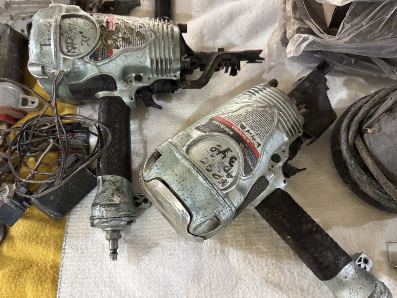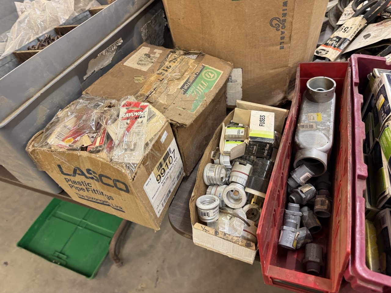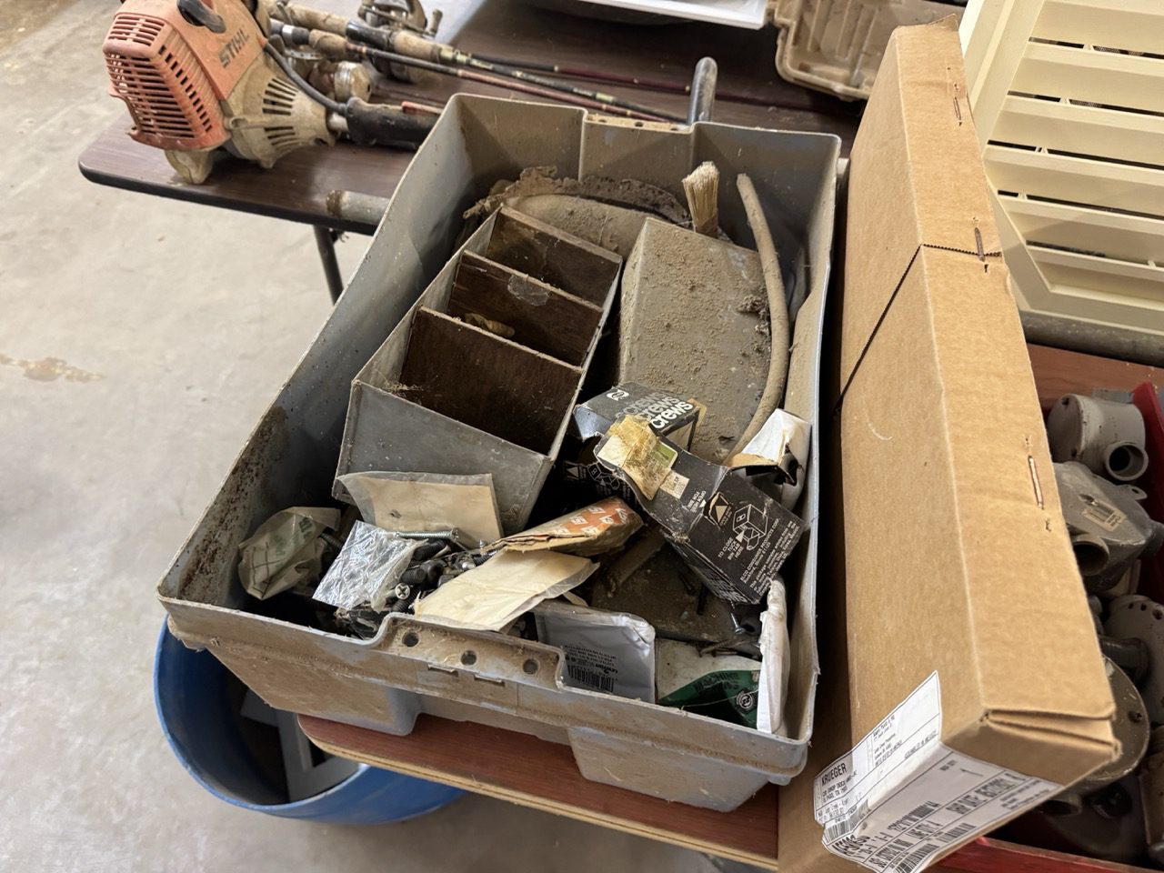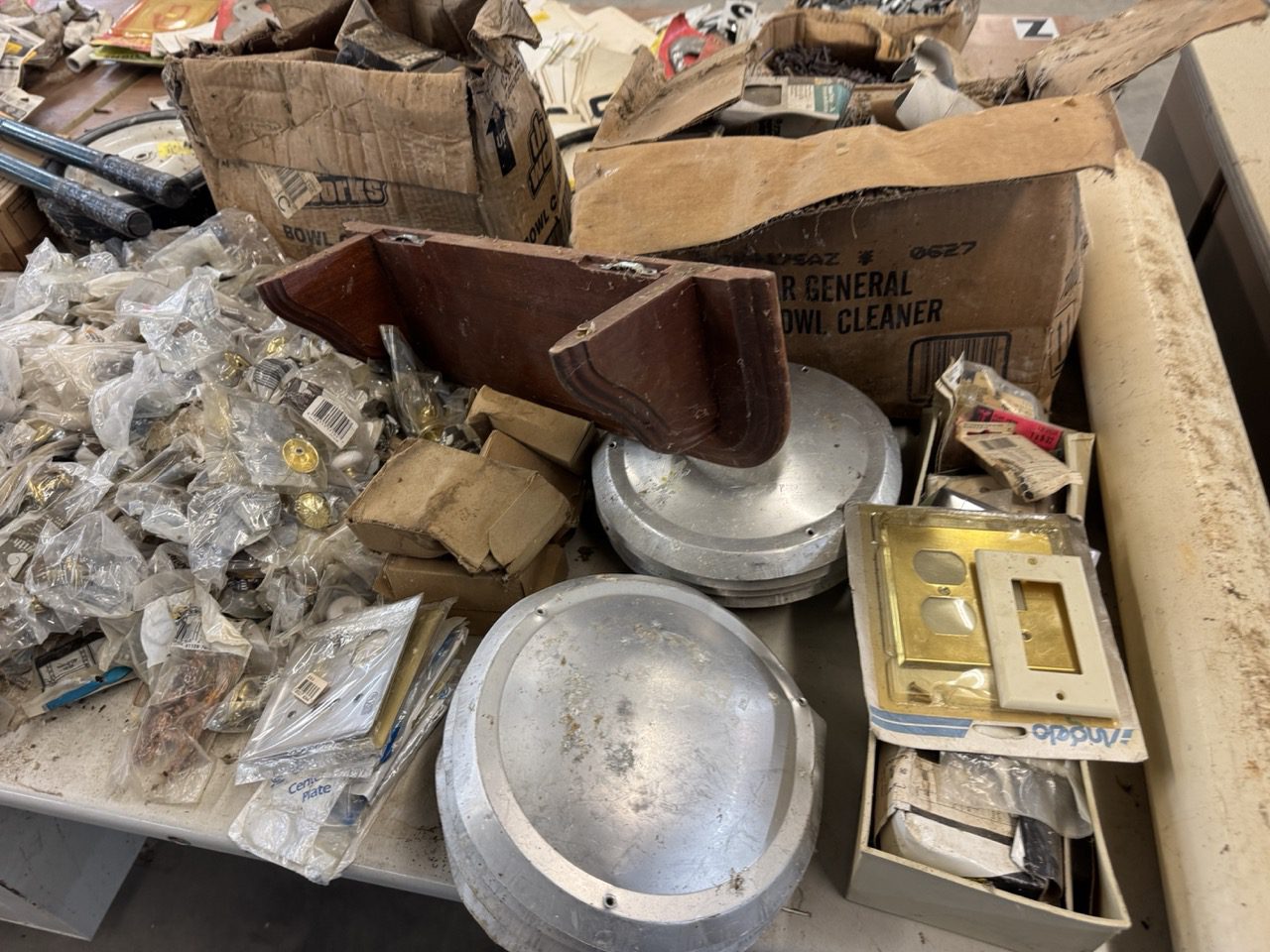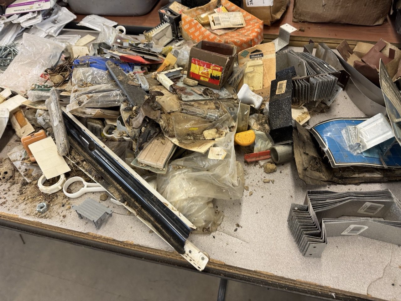 Building Supplies & Tools: (Appx 75) Boxes Sheet Metal Screws – 5ft Metal Brake – Energy Storm ES8100E Generator – Pipe Threader – Industrial Air Compressor – Pipe Wrenches – Electrical Wire – Attic Stairs – Ceiling Fans – Sump Pump – Drill Press – Power Cords – Paint Sprayer Hoses – Air Nailers – De Humidifiers – Fiberglass Ladders – Ratchets – Hammers – Hose Reels – Toilets – Sinks – Welding Helmets – Electrical Supplies – Power Washer – Airless Paint Sprayer – Weedeater On Wheels – Pipe Insulation – Power Inverters – New Faucets – Sand Paper – Cut Off Blades – PVC Fittings – Sheet Metal – Metal Trim – PVC Pipe