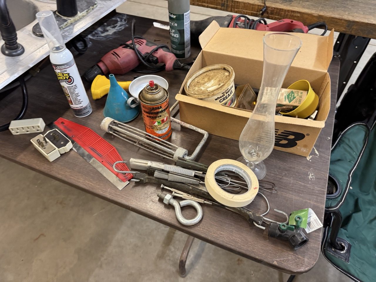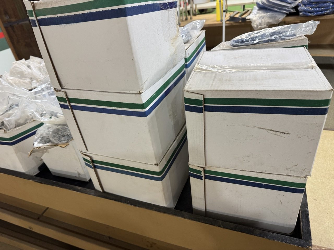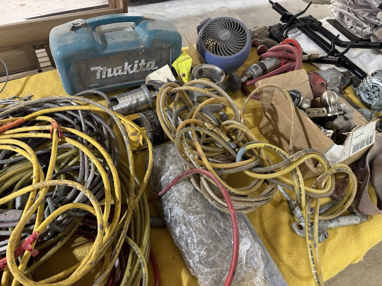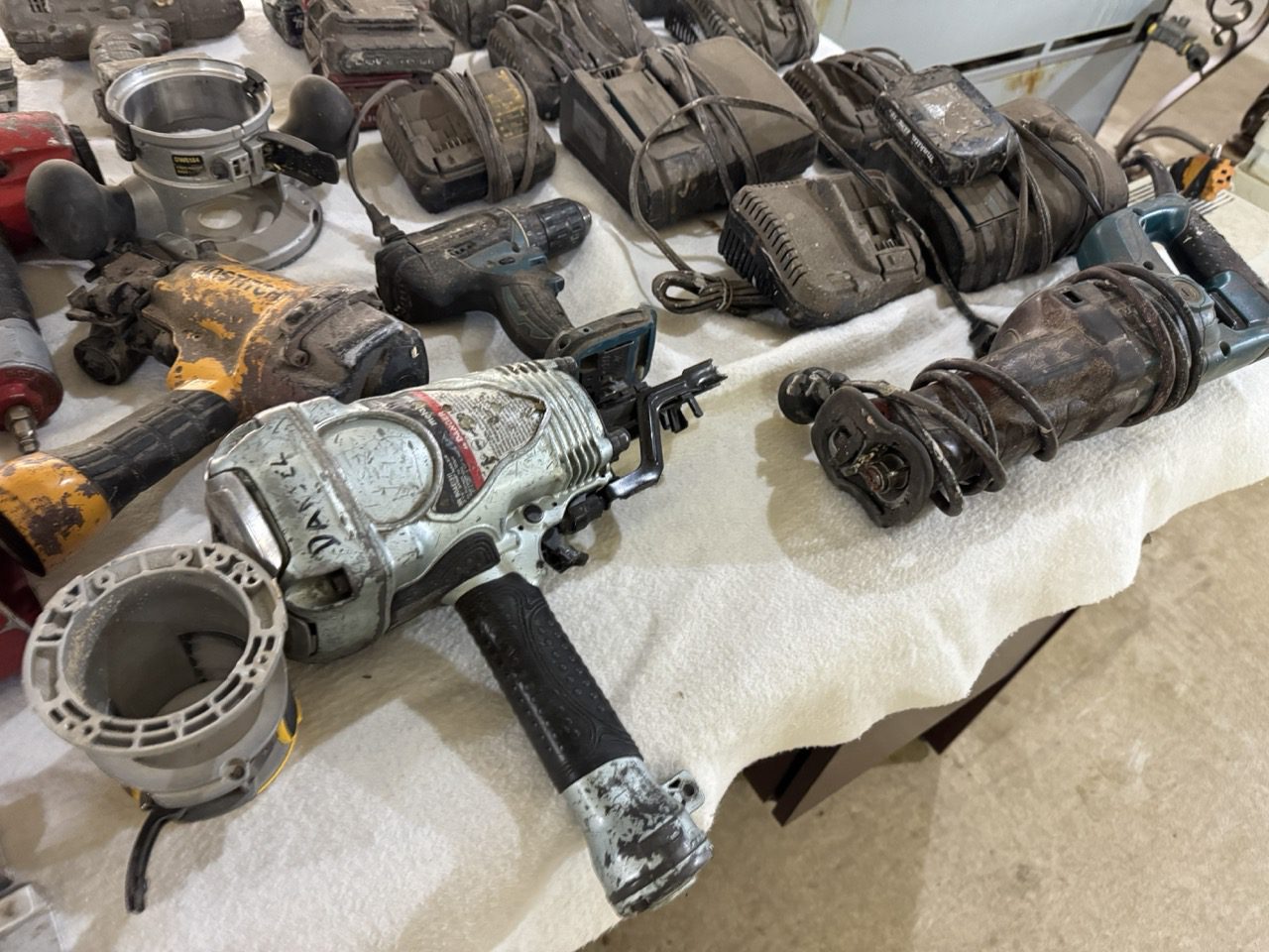 Building Supplies & Tools: (Appx 75) Boxes Sheet Metal Screws – 5ft Metal Brake – Energy Storm ES8100E Generator – Pipe Threader – Industrial Air Compressor – Pipe Wrenches – Electrical Wire – Attic Stairs – Ceiling Fans – Sump Pump – Drill Press – Power Cords – Paint Sprayer Hoses – Air Nailers – De Humidifiers – Fiberglass Ladders – Ratchets – Hammers – Hose Reels – Toilets – Sinks – Welding Helmets – Electrical Supplies – Power Washer – Airless Paint Sprayer – Weedeater On Wheels – Pipe Insulation – Power Inverters – New Faucets – Sand Paper – Cut Off Blades – PVC Fittings – Sheet Metal – Metal Trim – PVC Pipe