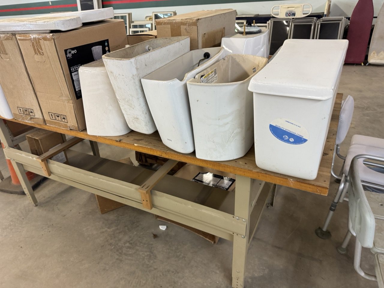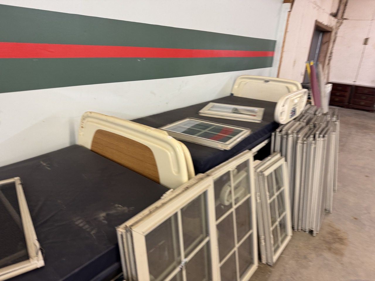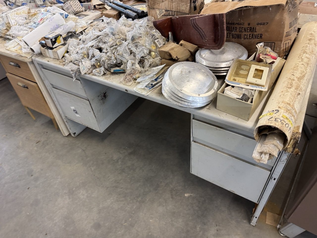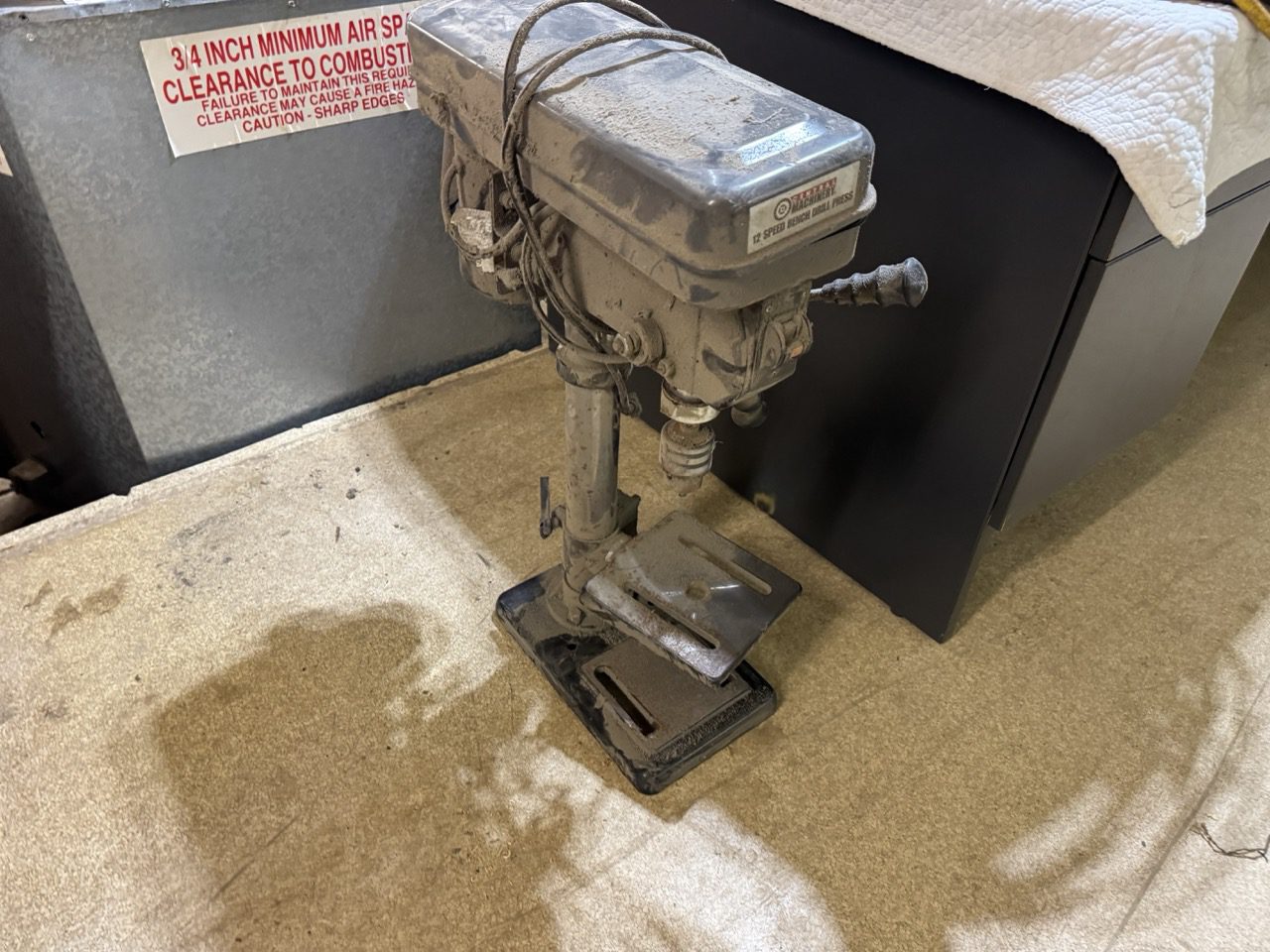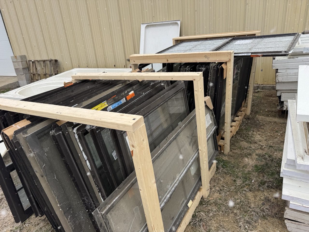 Building Supplies & Tools: (Appx 75) Boxes Sheet Metal Screws – 5ft Metal Brake – Energy Storm ES8100E Generator – Pipe Threader – Industrial Air Compressor – Pipe Wrenches – Electrical Wire – Attic Stairs – Ceiling Fans – Sump Pump – Drill Press – Power Cords – Paint Sprayer Hoses – Air Nailers – De Humidifiers – Fiberglass Ladders – Ratchets – Hammers – Hose Reels – Toilets – Sinks – Welding Helmets – Electrical Supplies – Power Washer – Airless Paint Sprayer – Weedeater On Wheels – Pipe Insulation – Power Inverters – New Faucets – Sand Paper – Cut Off Blades – PVC Fittings – Sheet Metal – Metal Trim – PVC Pipe