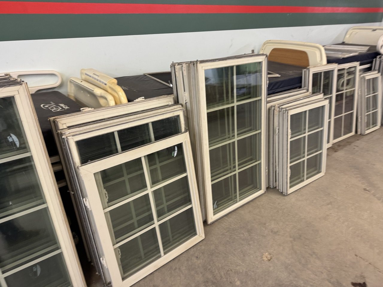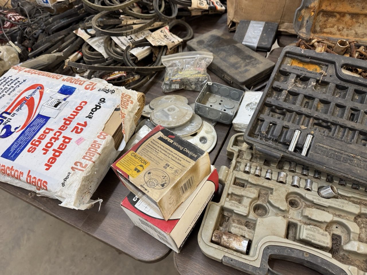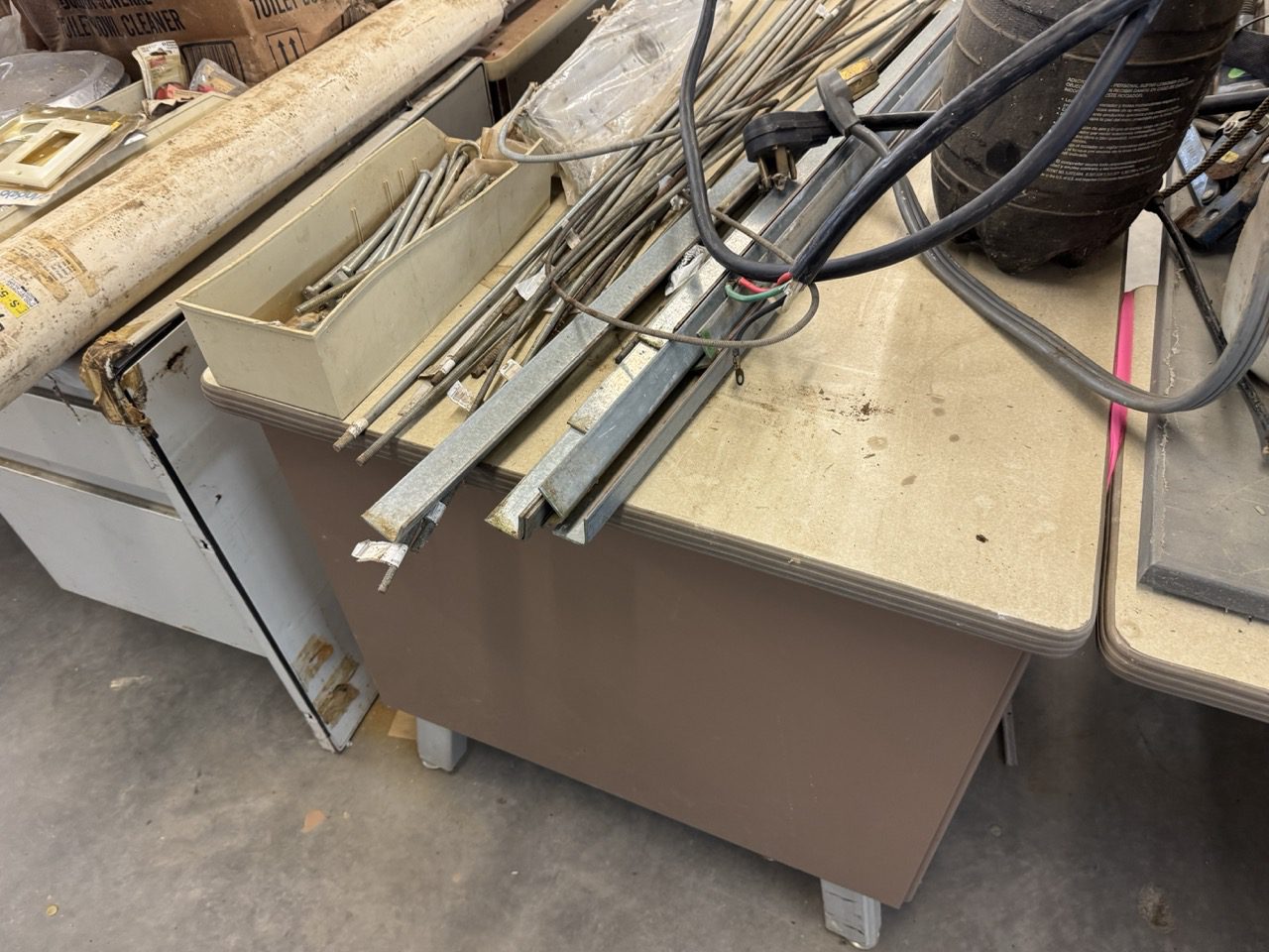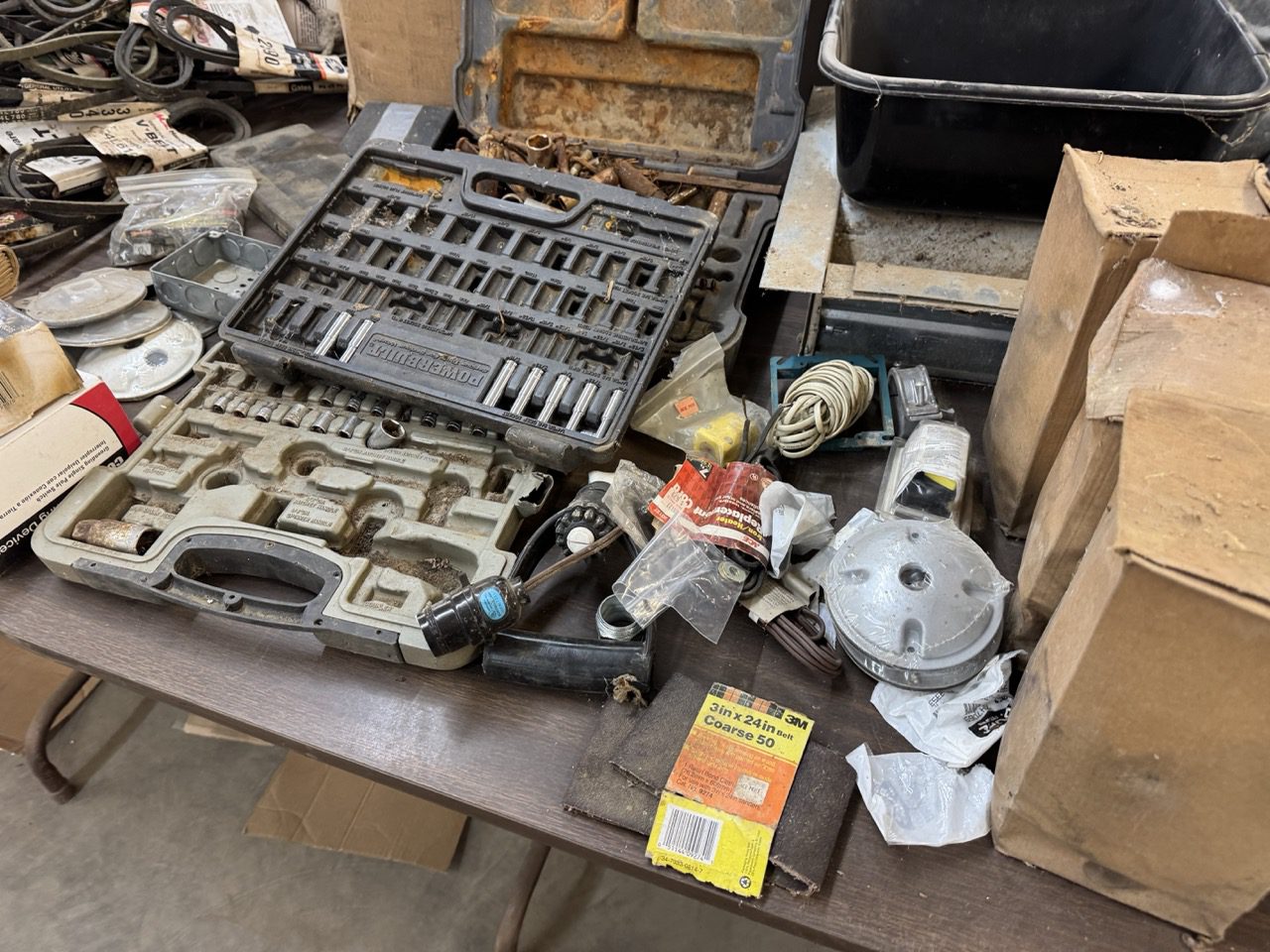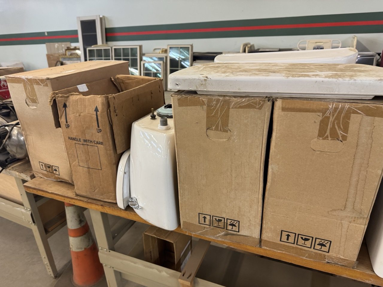 Building Supplies & Tools: (Appx 75) Boxes Sheet Metal Screws – 5ft Metal Brake – Energy Storm ES8100E Generator – Pipe Threader – Industrial Air Compressor – Pipe Wrenches – Electrical Wire – Attic Stairs – Ceiling Fans – Sump Pump – Drill Press – Power Cords – Paint Sprayer Hoses – Air Nailers – De Humidifiers – Fiberglass Ladders – Ratchets – Hammers – Hose Reels – Toilets – Sinks – Welding Helmets – Electrical Supplies – Power Washer – Airless Paint Sprayer – Weedeater On Wheels – Pipe Insulation – Power Inverters – New Faucets – Sand Paper – Cut Off Blades – PVC Fittings – Sheet Metal – Metal Trim – PVC Pipe