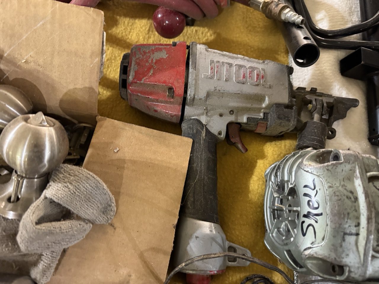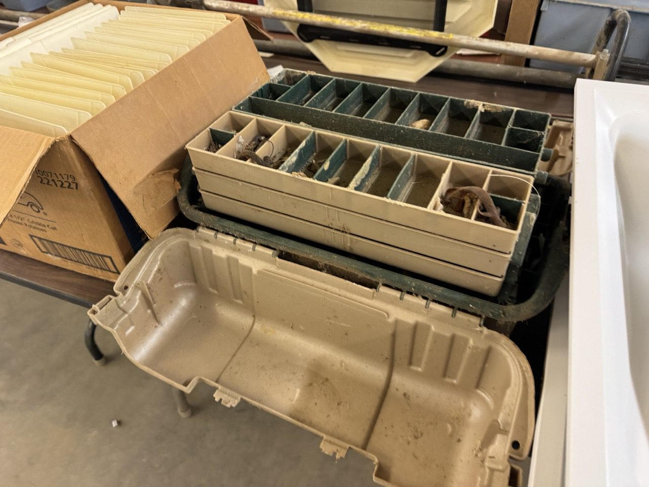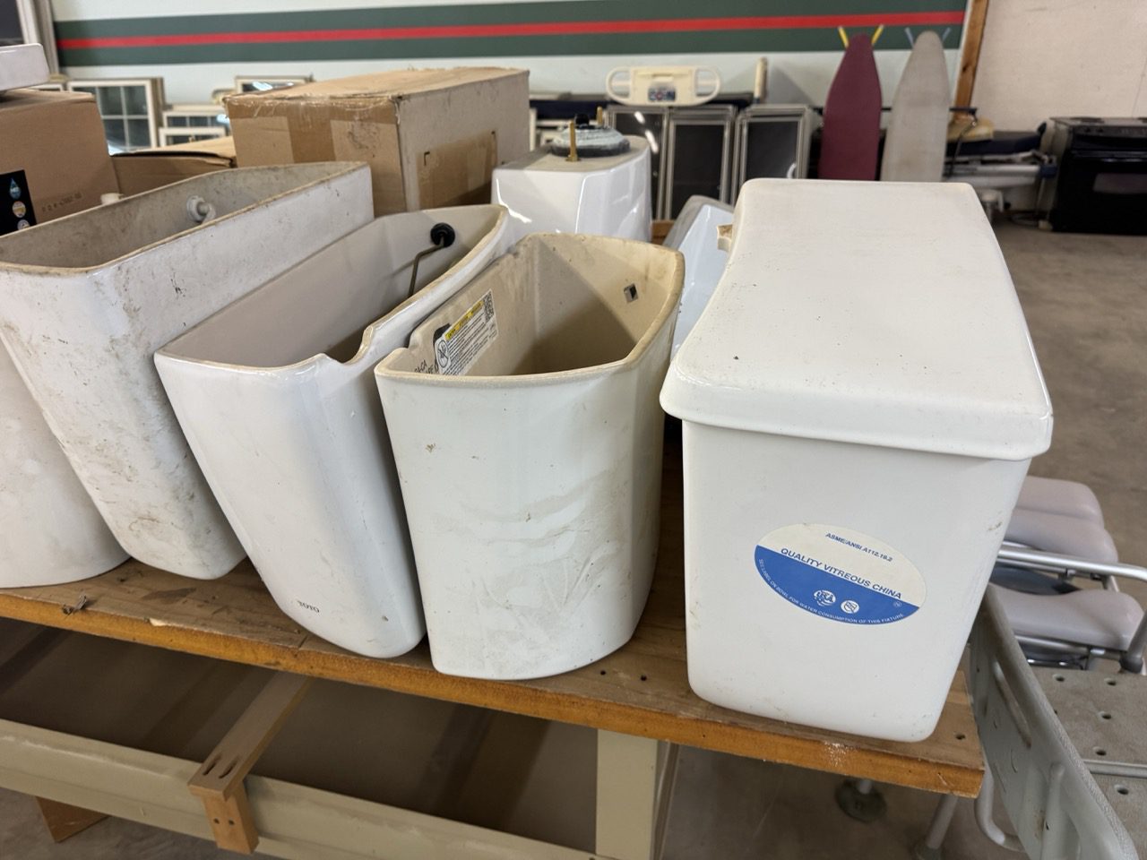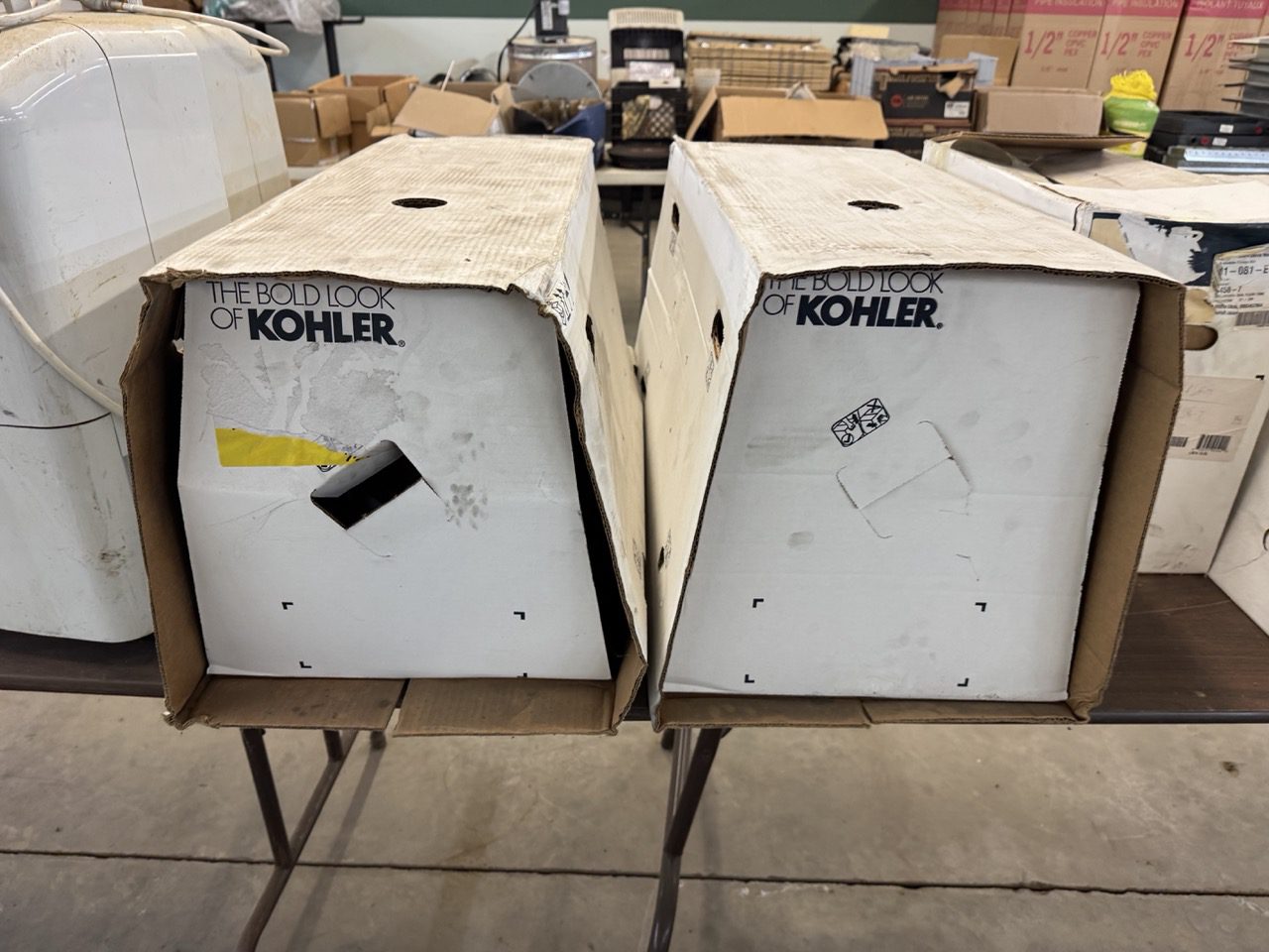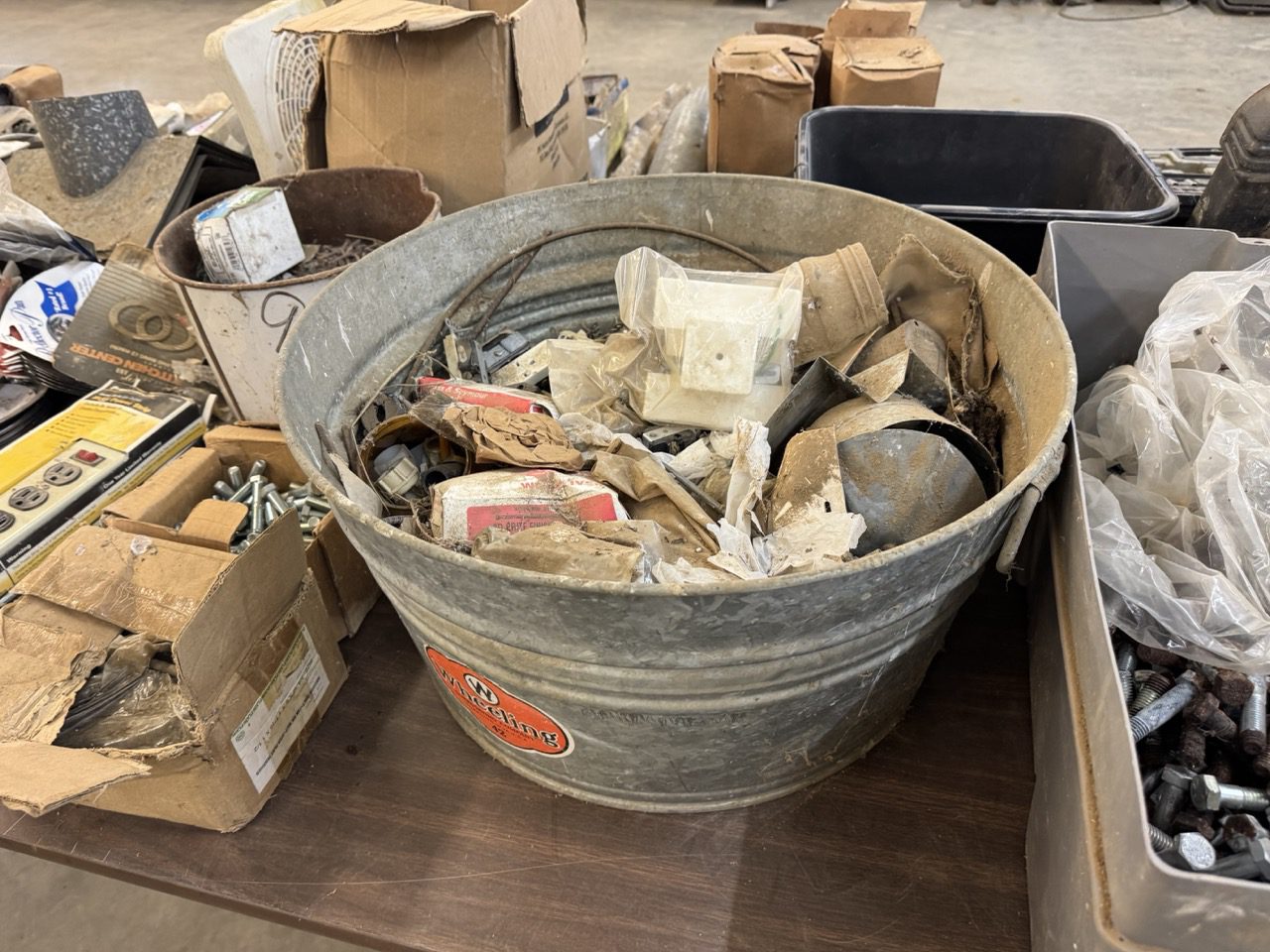 Building Supplies & Tools: (Appx 75) Boxes Sheet Metal Screws – 5ft Metal Brake – Energy Storm ES8100E Generator – Pipe Threader – Industrial Air Compressor – Pipe Wrenches – Electrical Wire – Attic Stairs – Ceiling Fans – Sump Pump – Drill Press – Power Cords – Paint Sprayer Hoses – Air Nailers – De Humidifiers – Fiberglass Ladders – Ratchets – Hammers – Hose Reels – Toilets – Sinks – Welding Helmets – Electrical Supplies – Power Washer – Airless Paint Sprayer – Weedeater On Wheels – Pipe Insulation – Power Inverters – New Faucets – Sand Paper – Cut Off Blades – PVC Fittings – Sheet Metal – Metal Trim – PVC Pipe