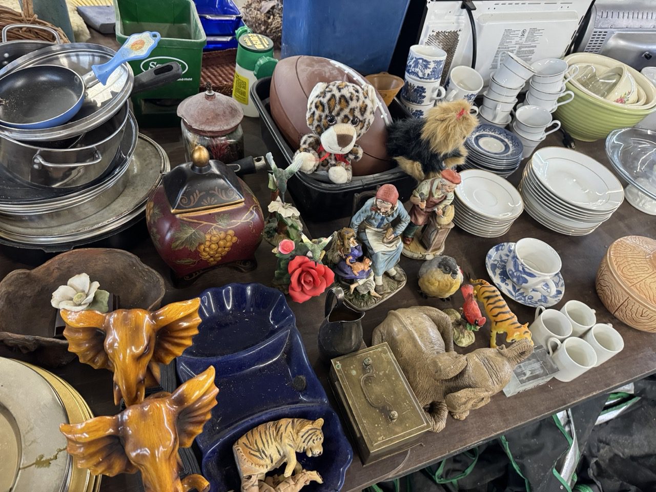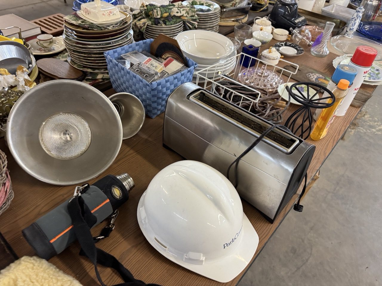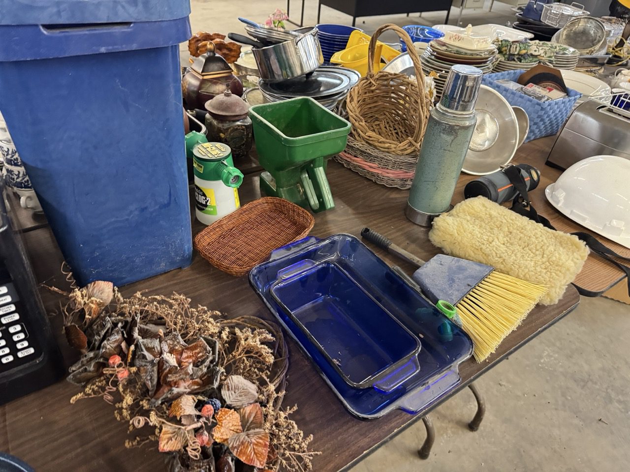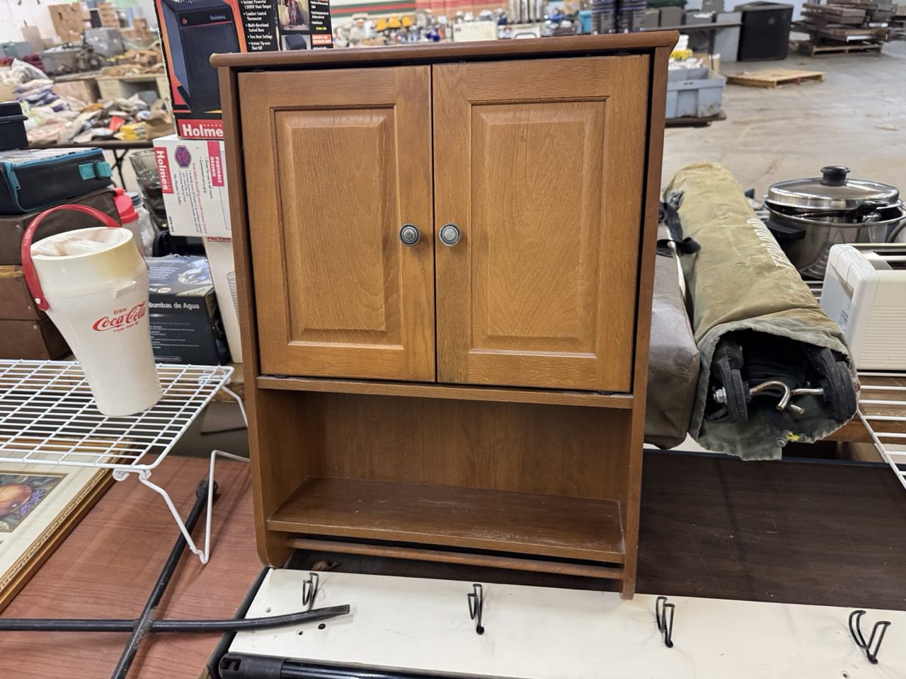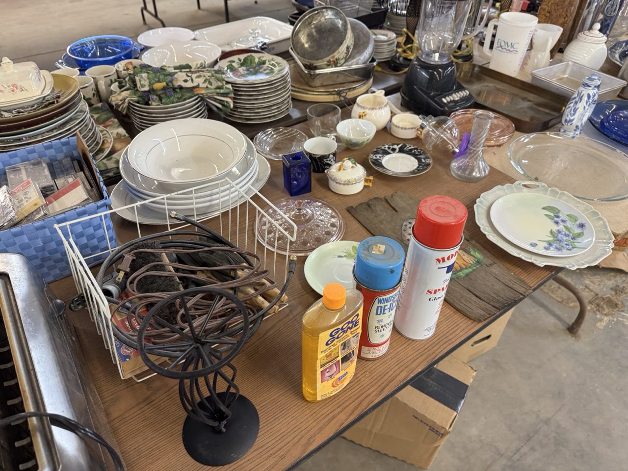 Furniture & Household:Â Ashley Office Desks – Office Chairs – Couch – Arm Chairs – Table & Chairs – Cherry Dresser, Chest & Night Stand – Oak Hutch – Hanging Wall Art & Pictures – End Tables – Curio Cabinet – Drop Leaf Table & 2 Chairs – Bakers Rack – Jewelry Armoires – Mirrors – Stainless Pots – Kitchen Utensils – Pots & Pans – Toaster Oven