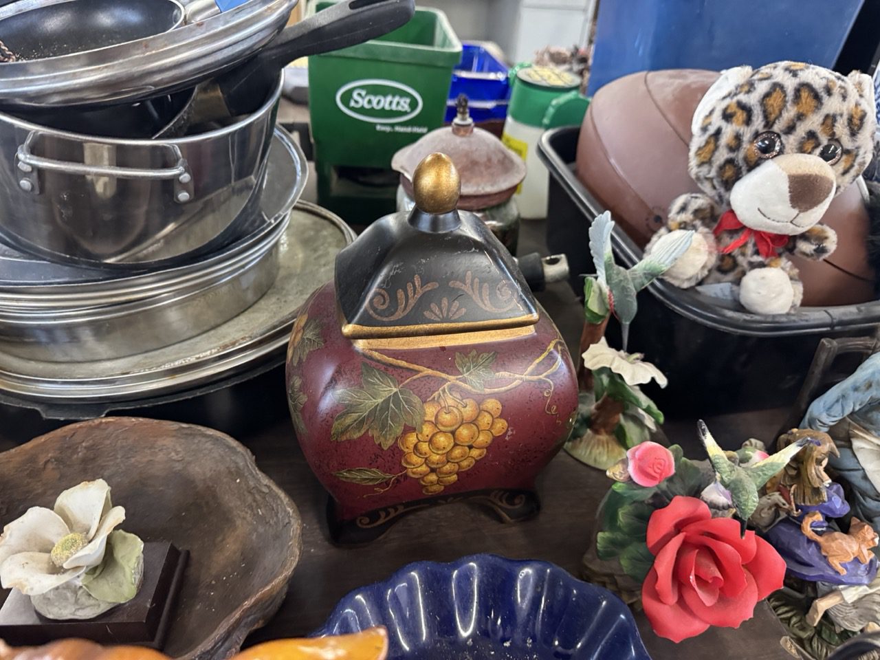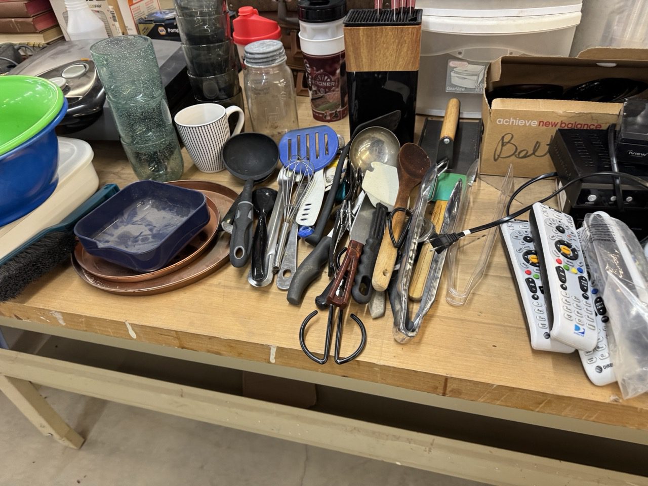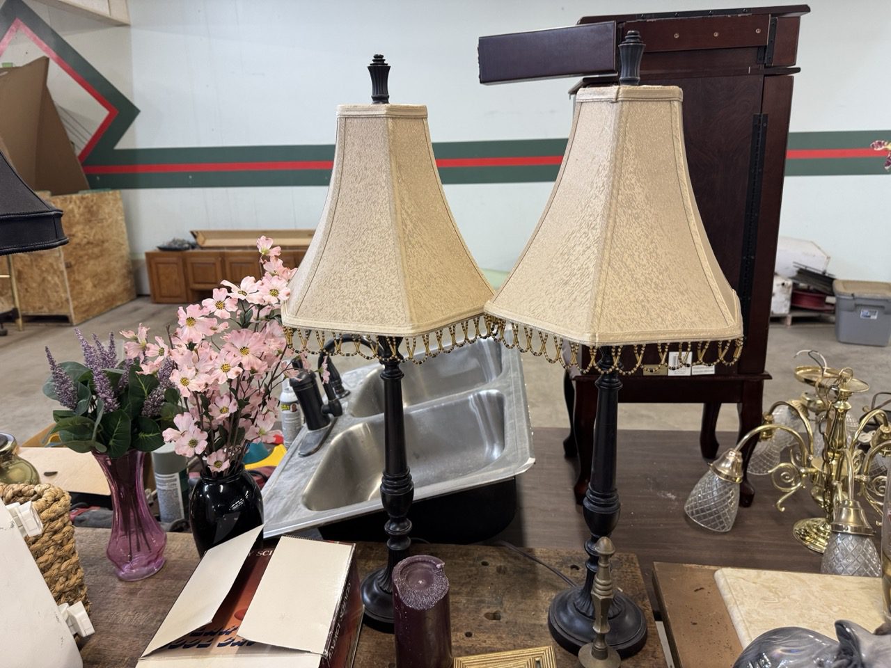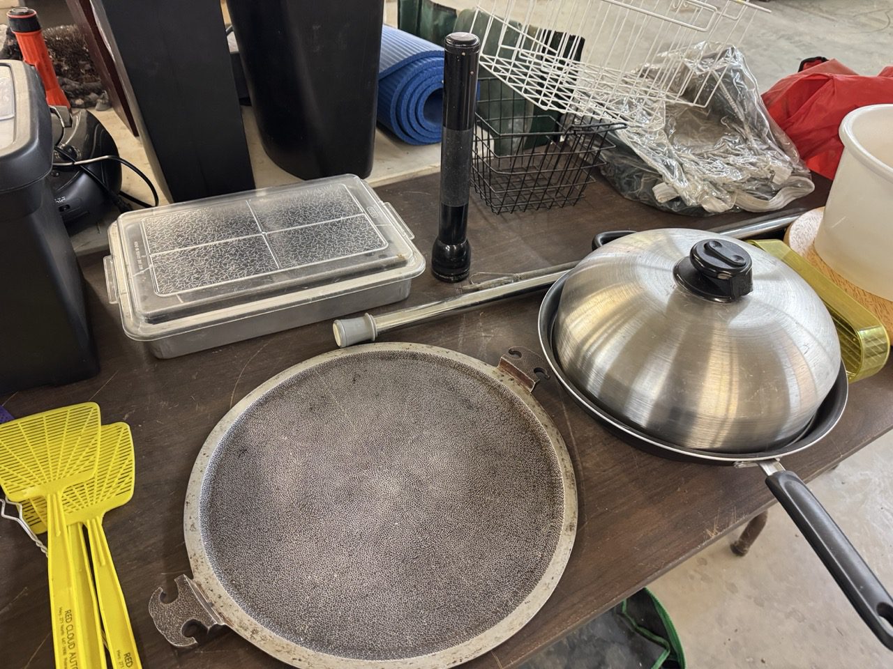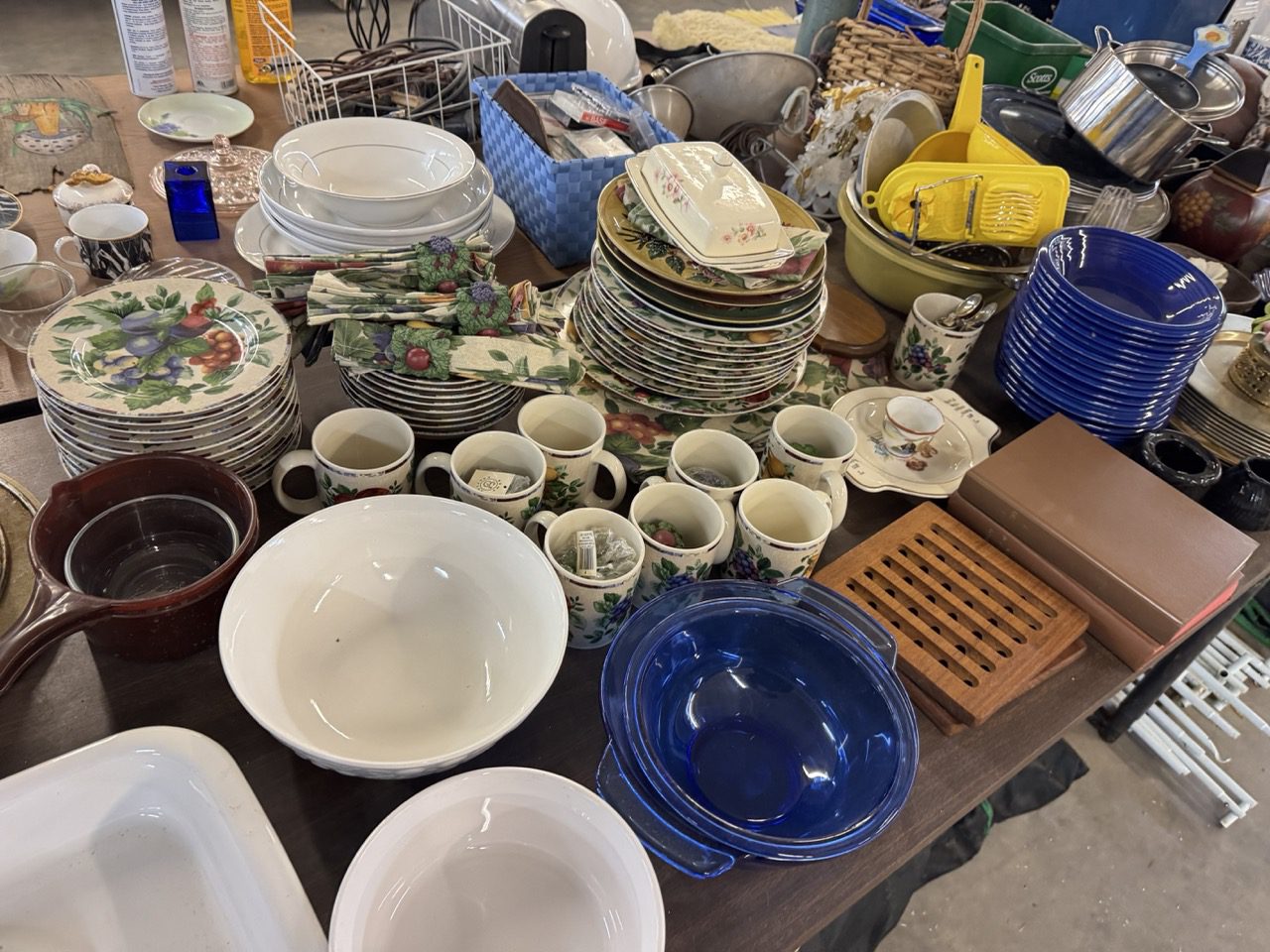Furniture & Household:Â Ashley Office Desks – Office Chairs – Couch – Arm Chairs – Table & Chairs – Cherry Dresser, Chest & Night Stand – Oak Hutch – Hanging Wall Art & Pictures – End Tables – Curio Cabinet – Drop Leaf Table & 2 Chairs – Bakers Rack – Jewelry Armoires – Mirrors – Stainless Pots – Kitchen Utensils – Pots & Pans – Toaster Oven