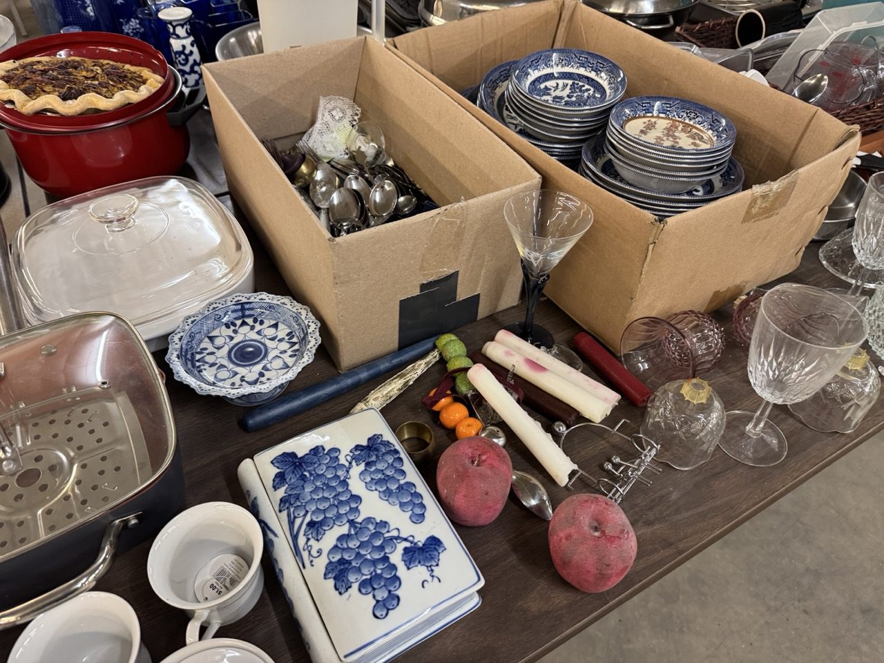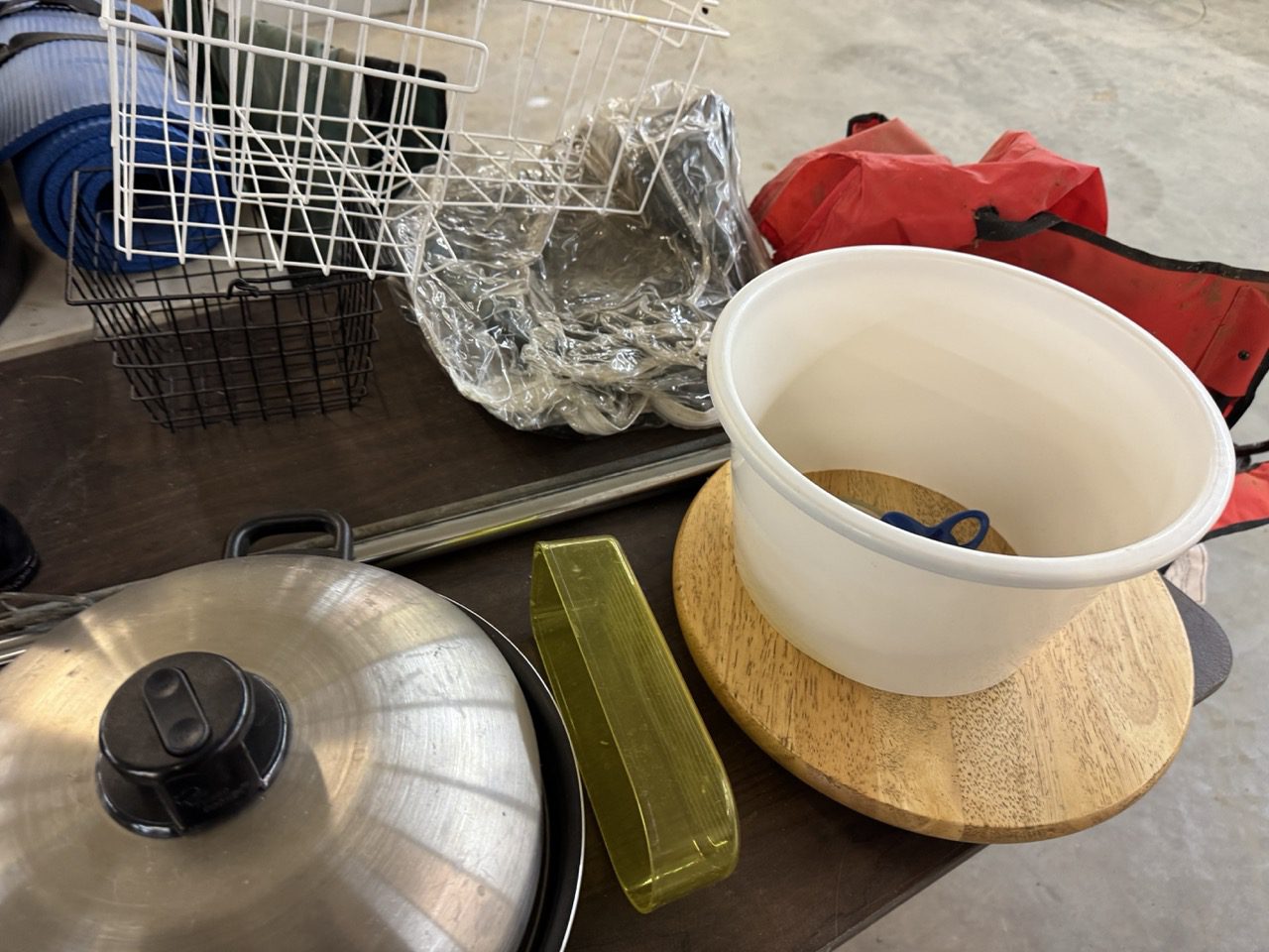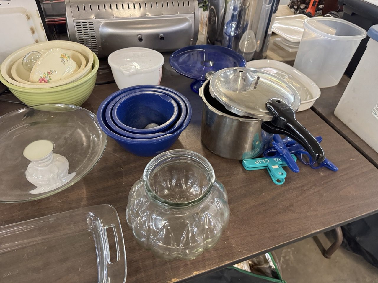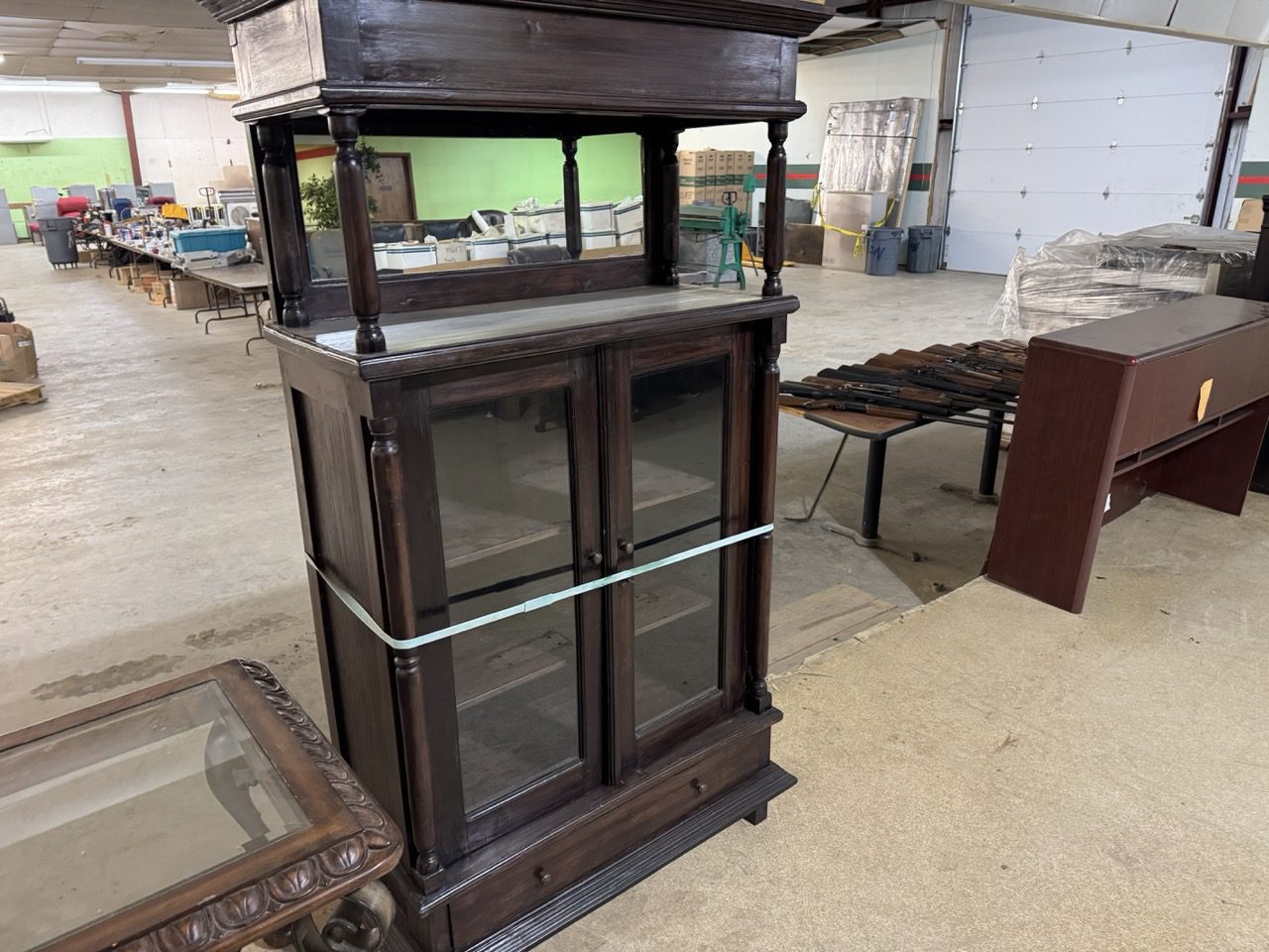 Furniture & Household:Â Ashley Office Desks – Office Chairs – Couch – Arm Chairs – Table & Chairs – Cherry Dresser, Chest & Night Stand – Oak Hutch – Hanging Wall Art & Pictures – End Tables – Curio Cabinet – Drop Leaf Table & 2 Chairs – Bakers Rack – Jewelry Armoires – Mirrors – Stainless Pots – Kitchen Utensils – Pots & Pans – Toaster Oven