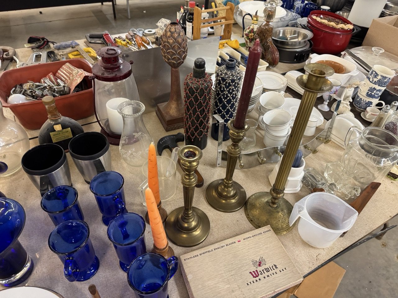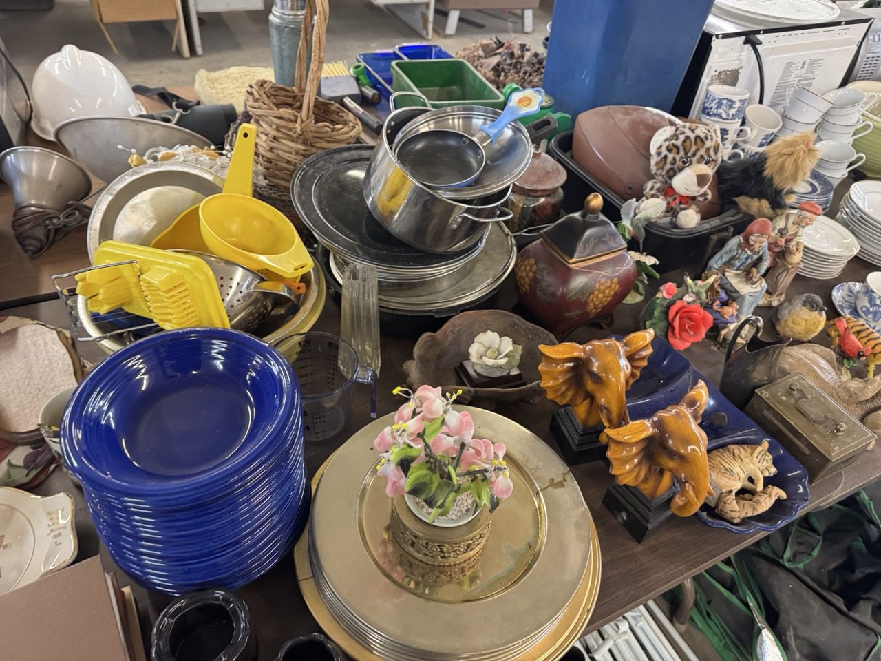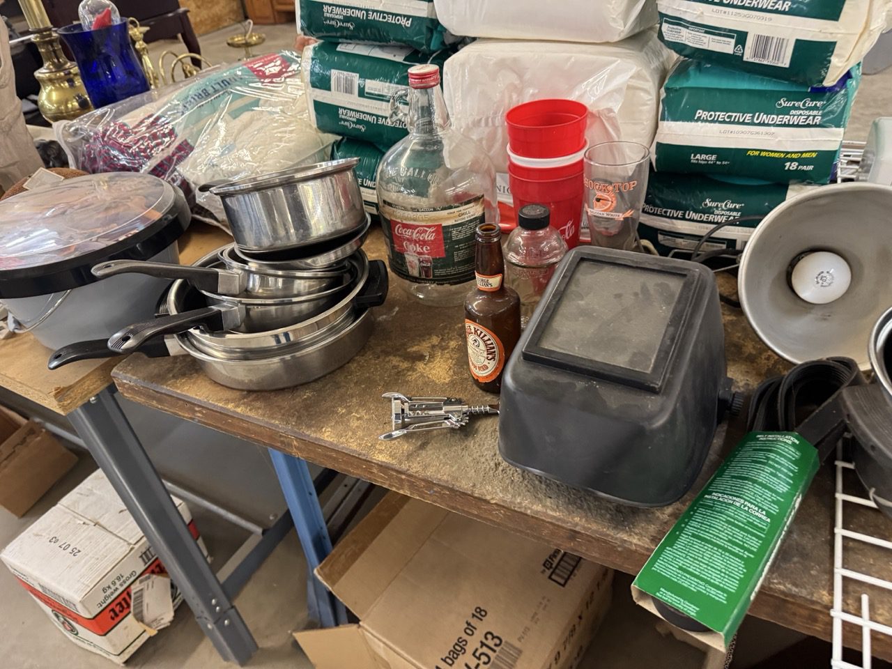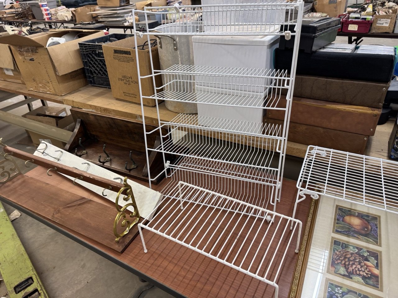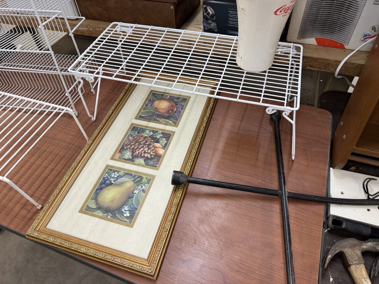Furniture & Household:Â Ashley Office Desks – Office Chairs – Couch – Arm Chairs – Table & Chairs – Cherry Dresser, Chest & Night Stand – Oak Hutch – Hanging Wall Art & Pictures – End Tables – Curio Cabinet – Drop Leaf Table & 2 Chairs – Bakers Rack – Jewelry Armoires – Mirrors – Stainless Pots – Kitchen Utensils – Pots & Pans – Toaster Oven