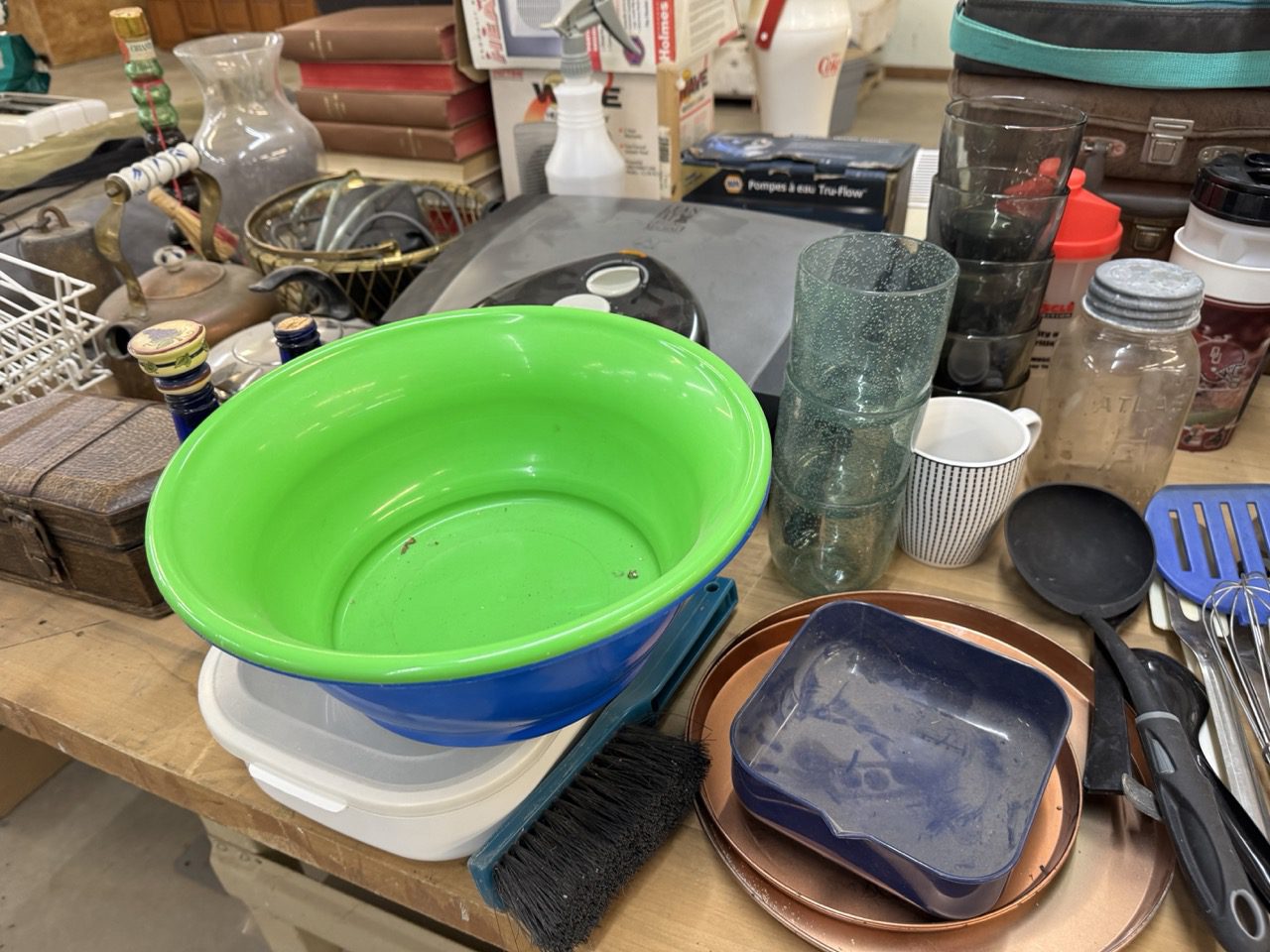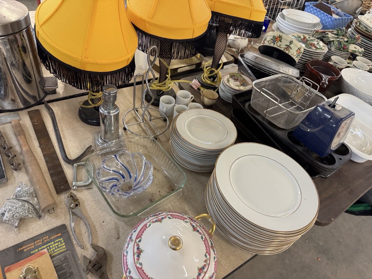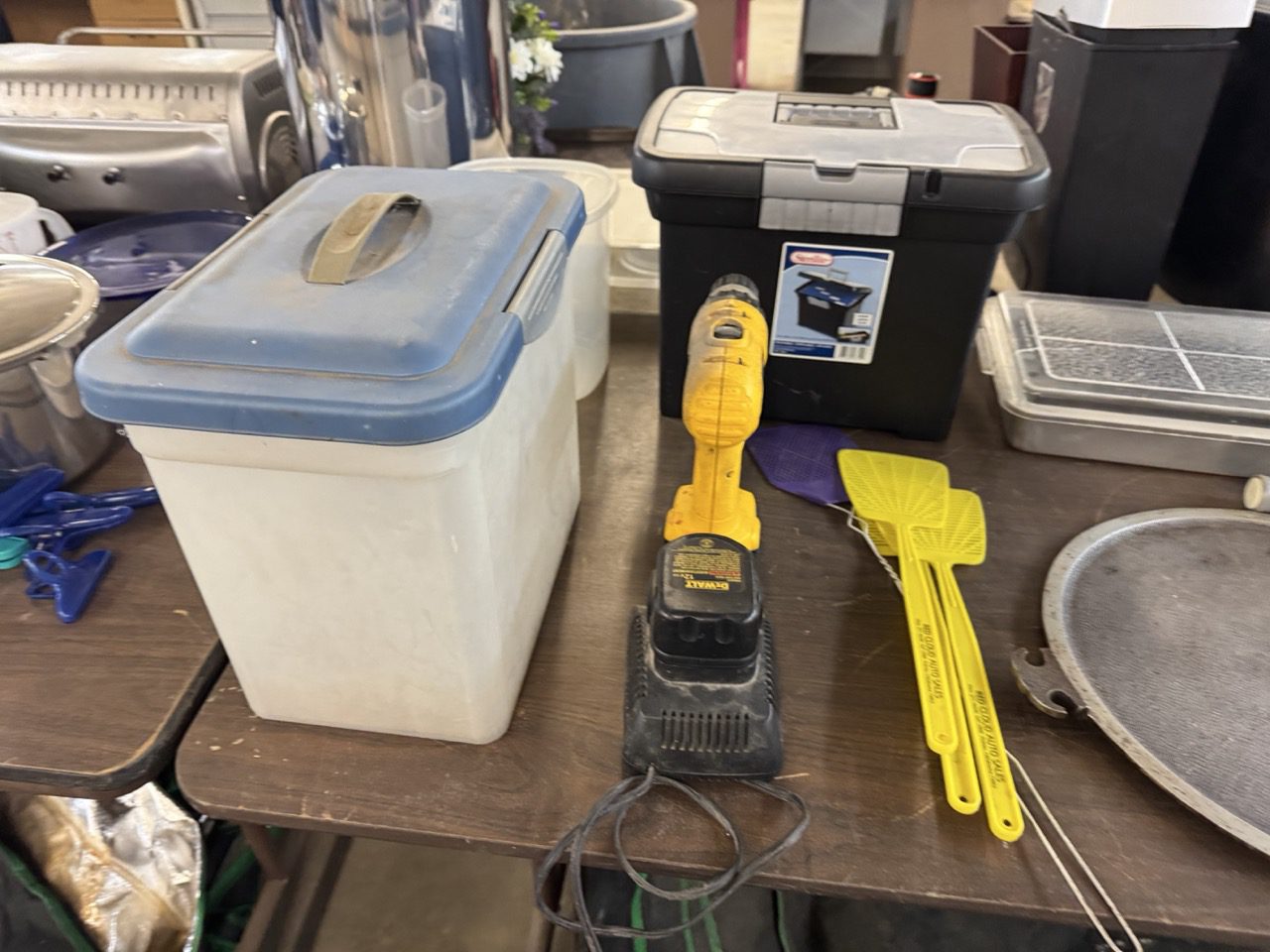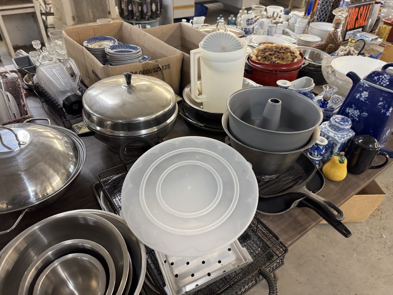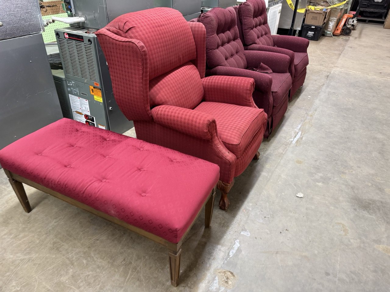 Furniture & Household:Â Ashley Office Desks – Office Chairs – Couch – Arm Chairs – Table & Chairs – Cherry Dresser, Chest & Night Stand – Oak Hutch – Hanging Wall Art & Pictures – End Tables – Curio Cabinet – Drop Leaf Table & 2 Chairs – Bakers Rack – Jewelry Armoires – Mirrors – Stainless Pots – Kitchen Utensils – Pots & Pans – Toaster Oven