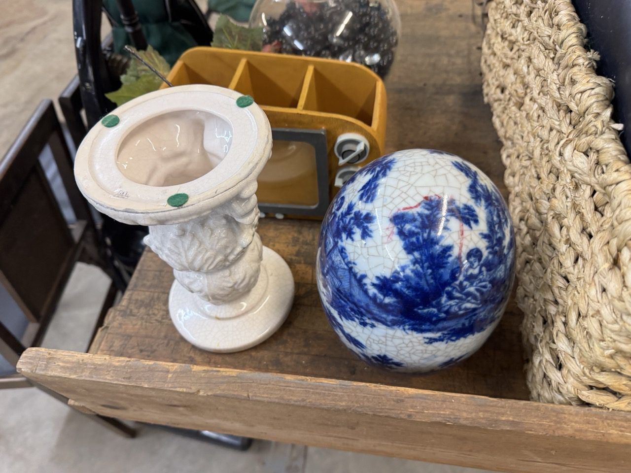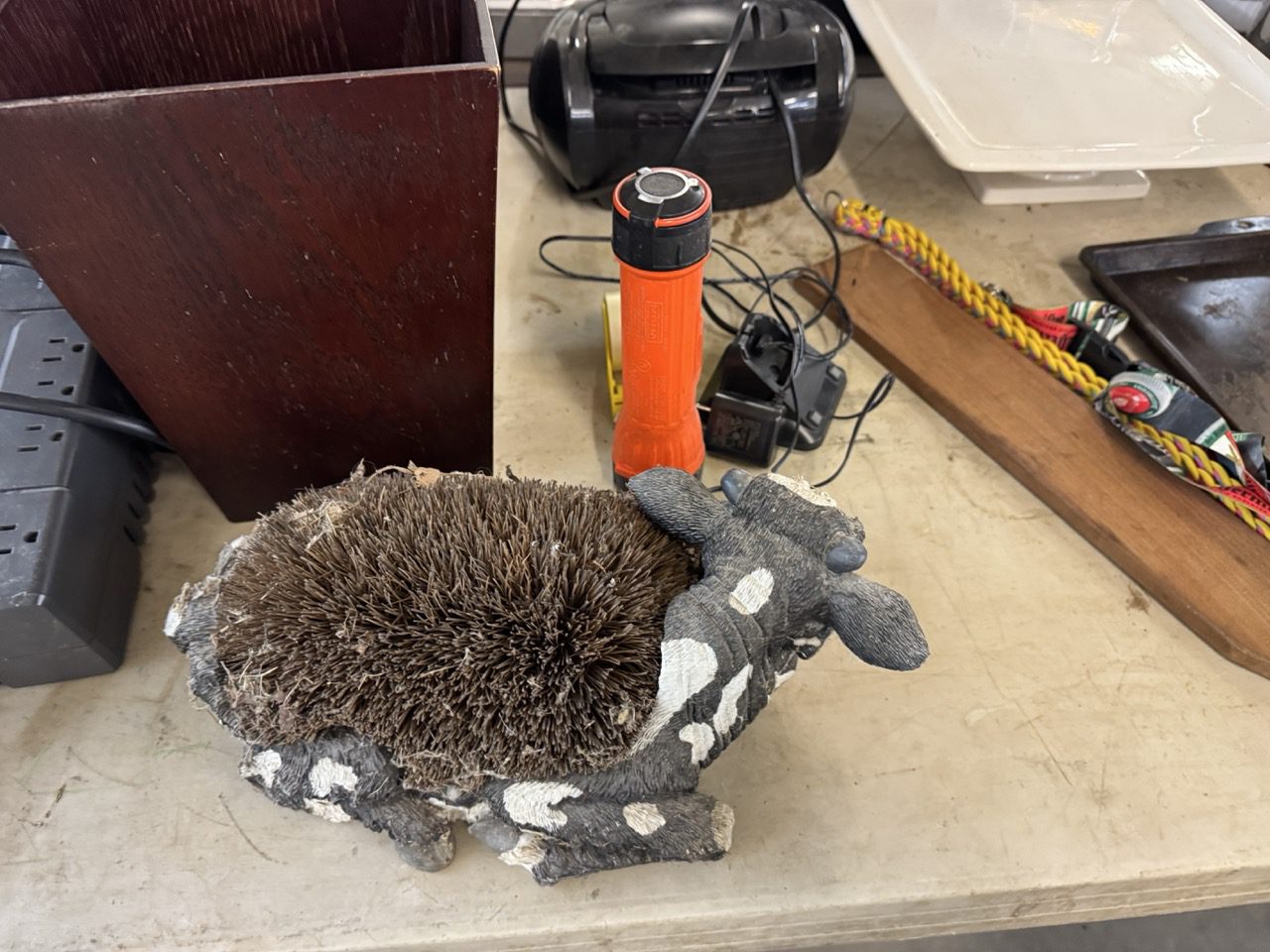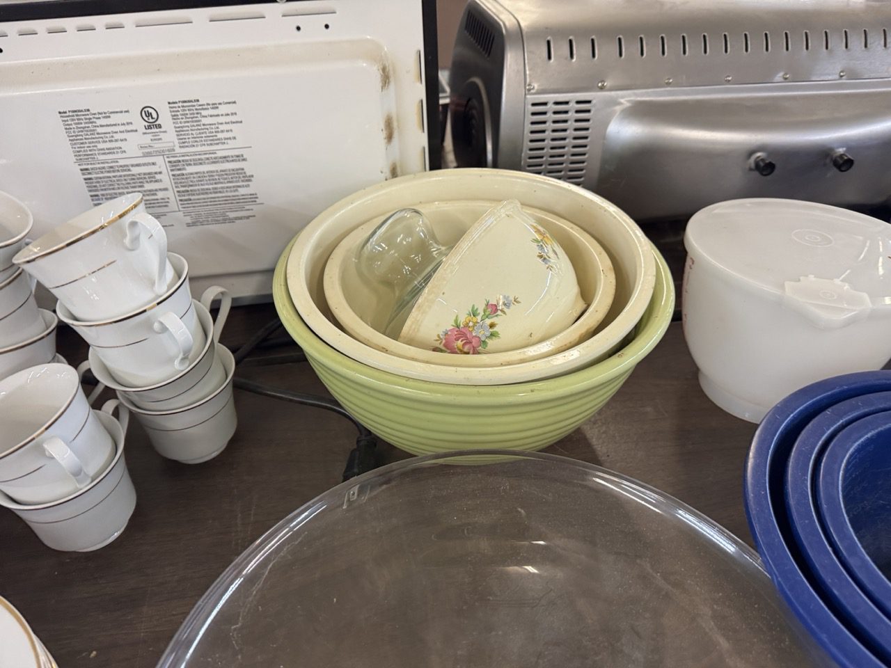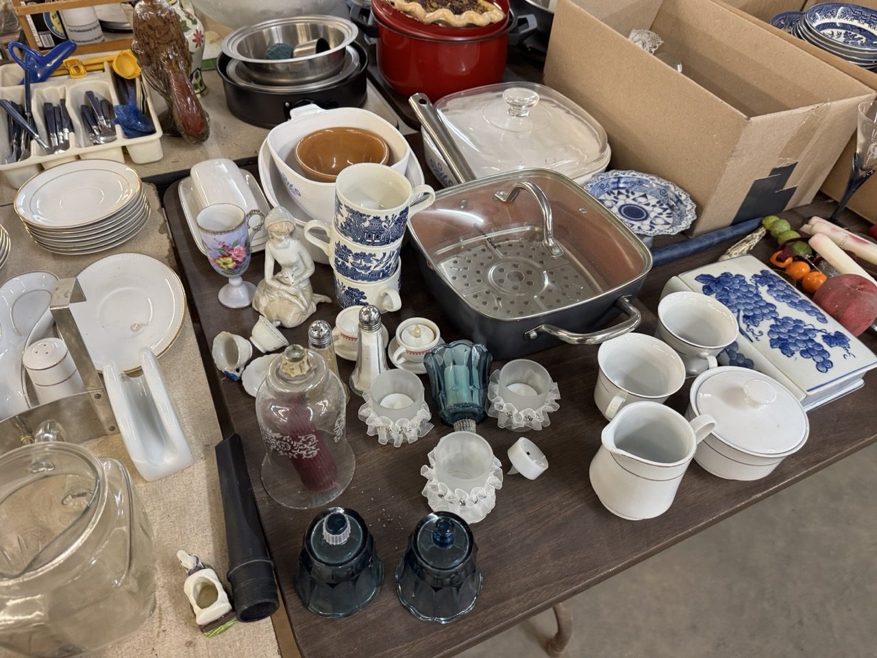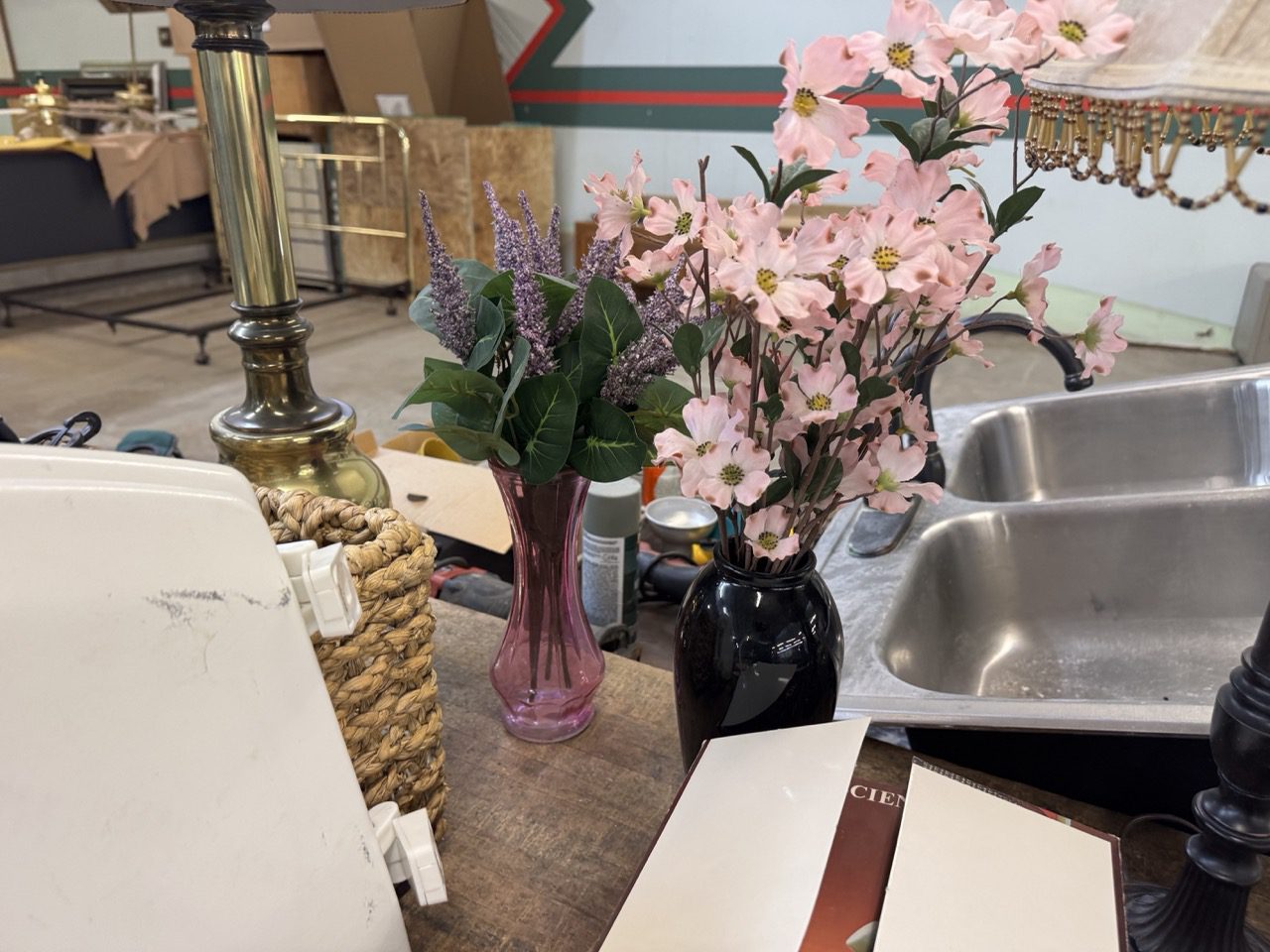 Furniture & Household:Â Ashley Office Desks – Office Chairs – Couch – Arm Chairs – Table & Chairs – Cherry Dresser, Chest & Night Stand – Oak Hutch – Hanging Wall Art & Pictures – End Tables – Curio Cabinet – Drop Leaf Table & 2 Chairs – Bakers Rack – Jewelry Armoires – Mirrors – Stainless Pots – Kitchen Utensils – Pots & Pans – Toaster Oven