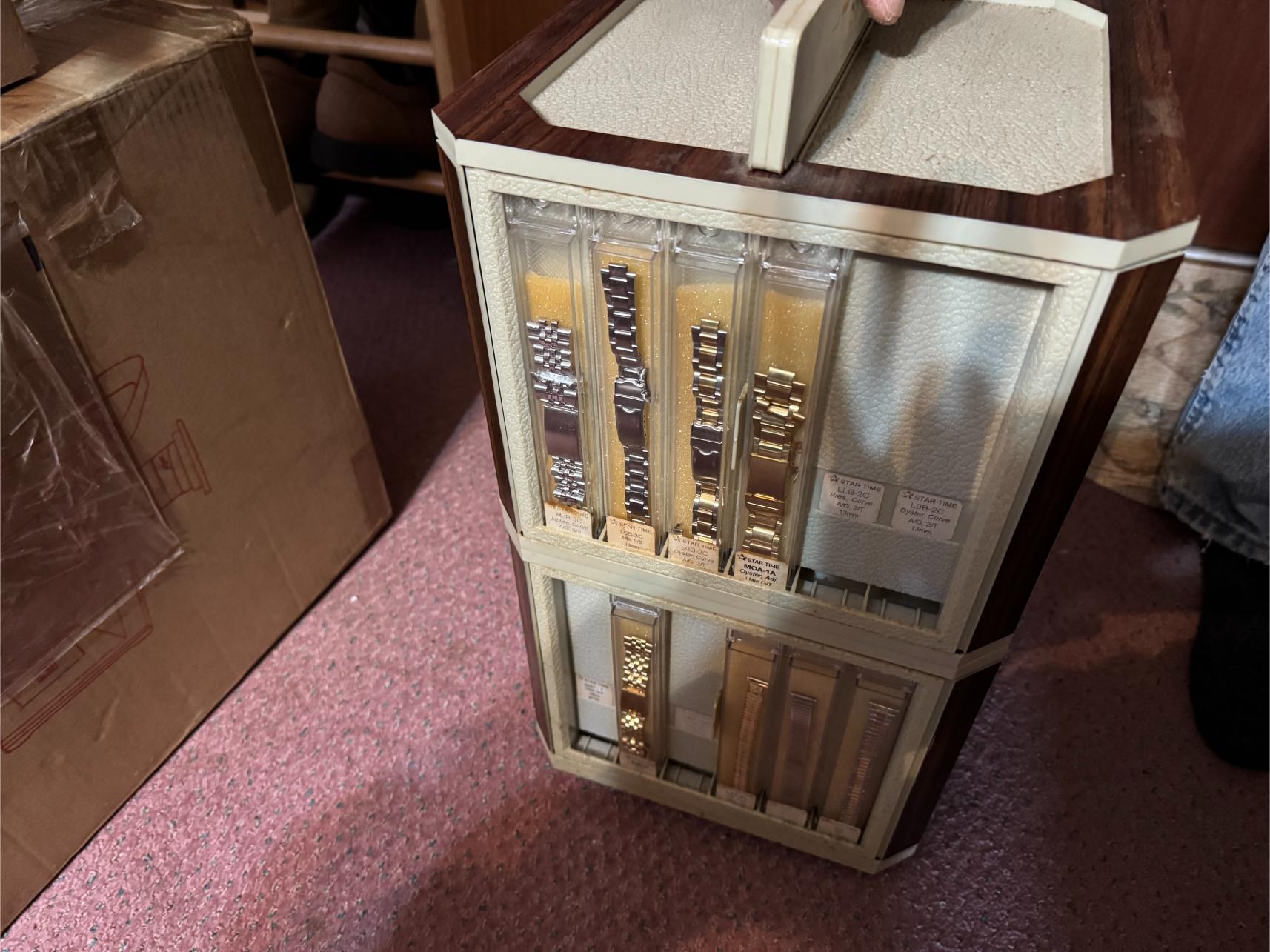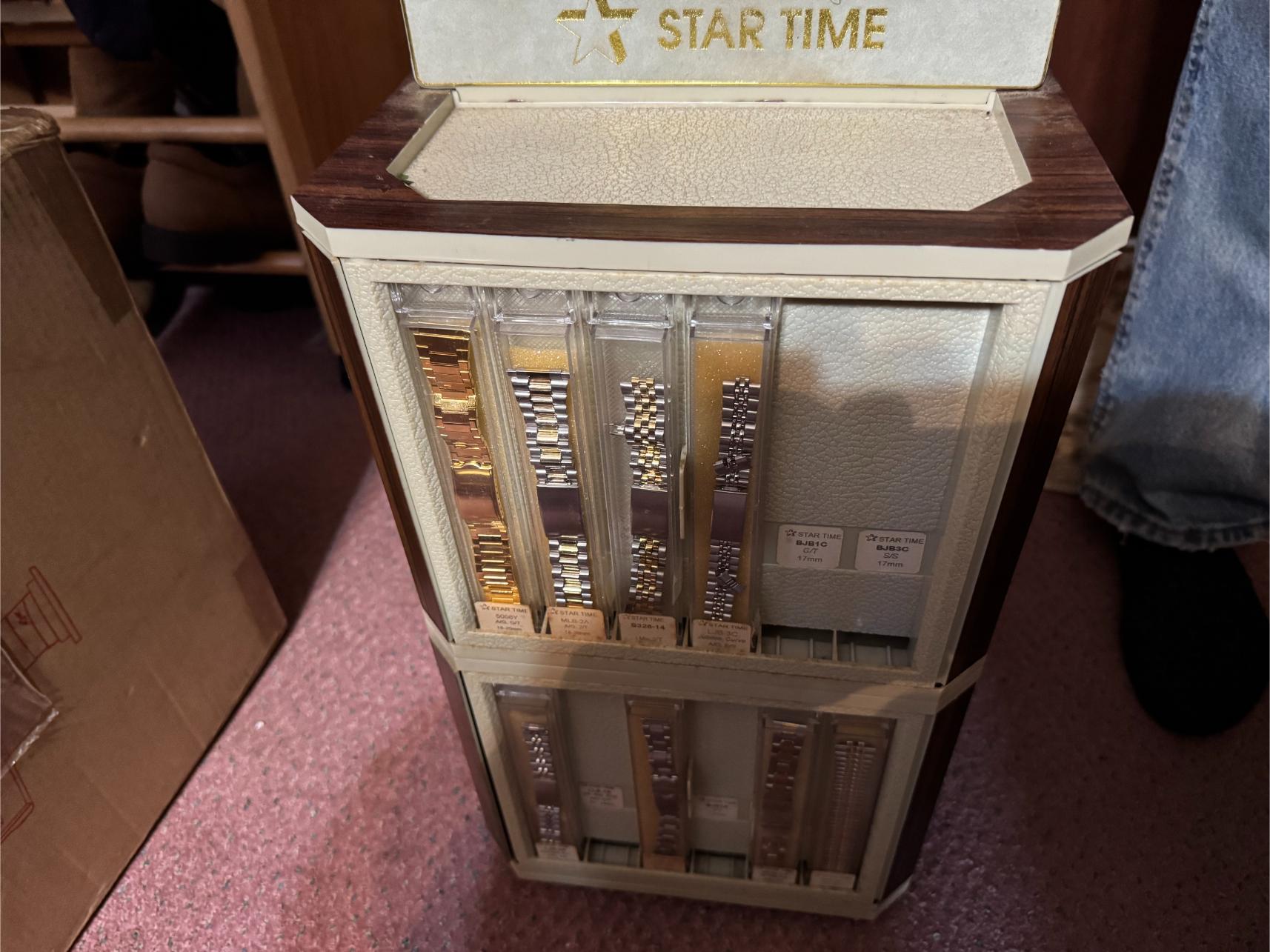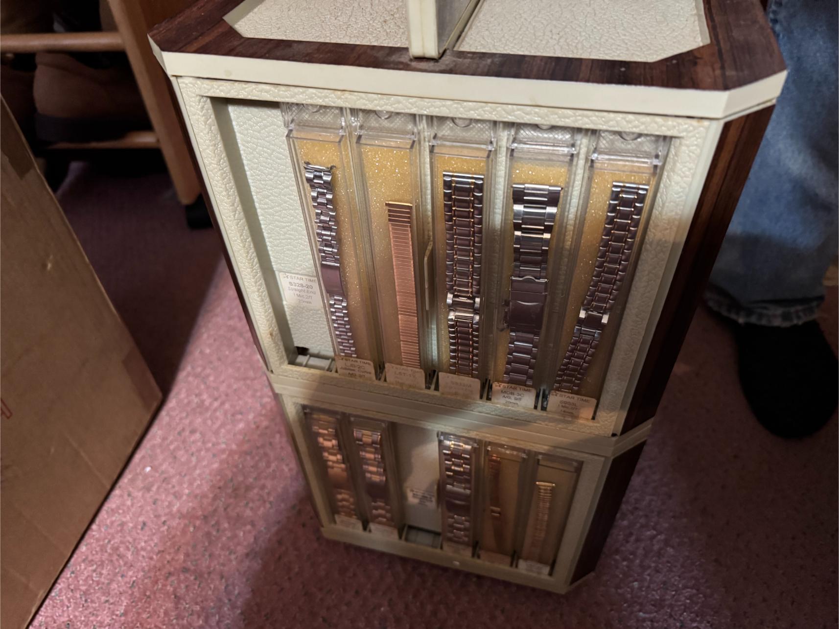 Guns & Jewelry:Â Browning 270 White Gold Medalion w/Stainless Barrel & Leopold Scope – Hi Standard 9-Shot 22 Revolver w/Extra Mag Cylinder – 5 ct TW Man’s Nugget Ring (14K, 1/2 ct to 3/4 ct Diamonds, Custom Made) – 2 1/2 ct Diamond Solitaire Ladies Ring (14K) – 3 ct Diamond Solitaire Ring (14K) – 1 ct TW Diamond Earrings – 100’s Watches & Parts – Star Time Watch Band Display W/Bands – Soft Gun Cases – Yokinnin Night Vision Binoculars – (2) Jeweler’s Dust Collector & Grinder Buffing Machine – (2) Jeweler’s Desks – Electroplating Machine – (2) Jewelry Engravers – Crystal Filer (for Watches) – Steam Machine – Jewelry Displays – 4′ & 5′ Showcases