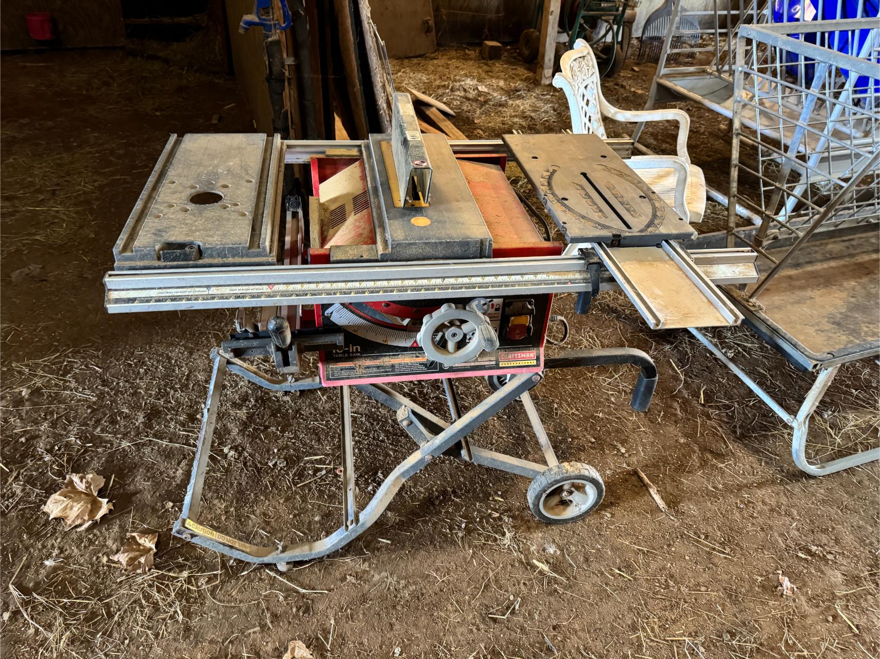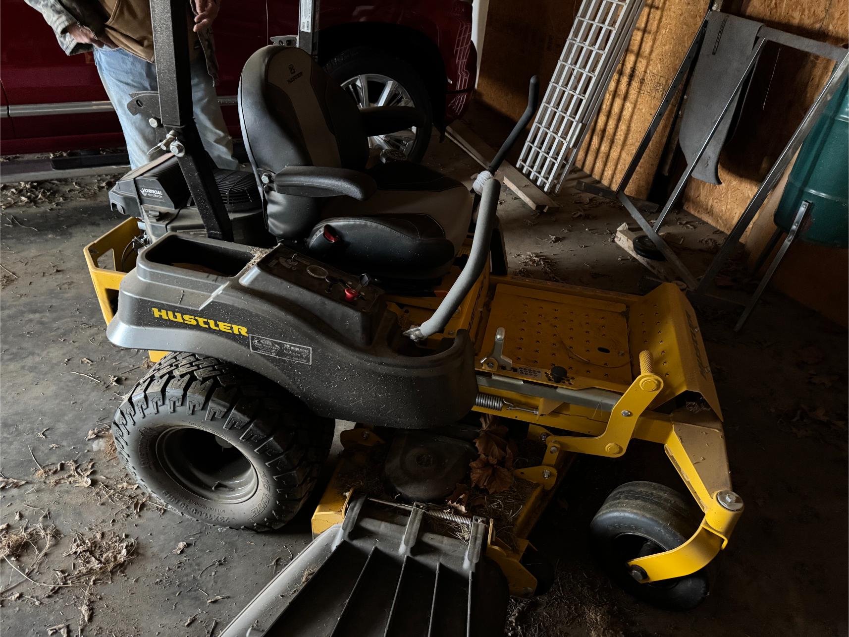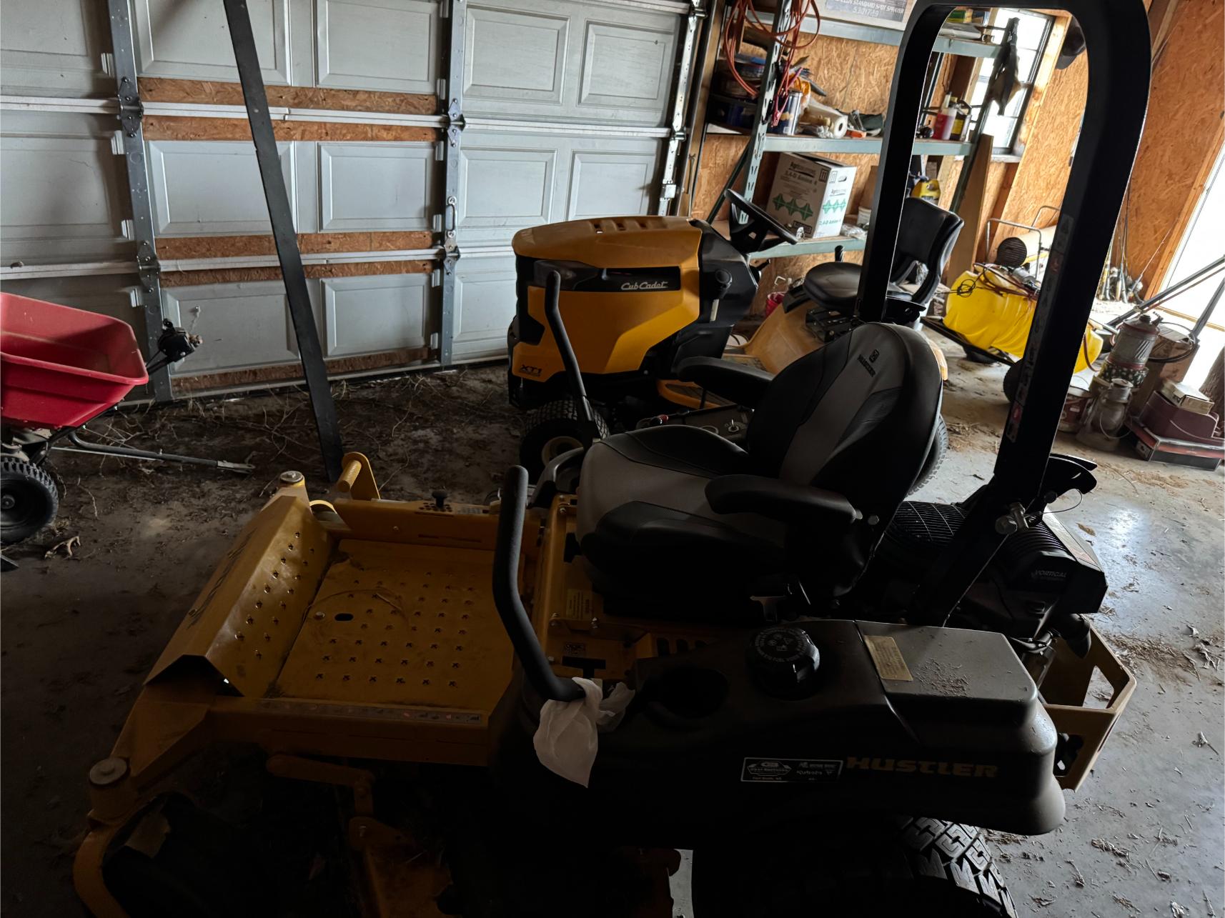 Shop:Â Â Hustler Fastrak 54″ Cut Zero Turn Mower – Cub Cadet XTI 54″ Cut Riding Mower (175 hrs) – Stihl MS210L Chainsaw – 115 Volt Flux Core Welder – Acetylene Bottles – Torch Set – Craftsman 10″ Table Saw on Cart – Miter Saw – Wood Posts – T-Posts – 70+ 16′ Wire Panels – Fencing Tools & Supplies – Fence Charger – Barbed Wire Unroller – Post Puller – Drop Links – Walding Helmet – Egg Incubator – Custom Hand Made Saddle – Leather Show Halters, Bits Reigns – Horse Blankets, Leg Wraps – Saddle Stands – Deer Feeders – Alum Ramps – Car Ramps – Sprayer on Trailer – 25-gal Sprayer – Shop Heaters – Air Compressor – Hi-Lift Jack – Front Tine Tiller – Power Washer – Ladder – Receiver Hitches – Log Chains – Toolbox – Hand Tools – Air Tools – Yard Tools – ATV Tires – Dolly – Creeper – Turtle Trap – Tank DeIcers – Horse, Cattle & Goat Supplies – Chicken Feeders & Waterers – Misc Lumber & Sheet Metal