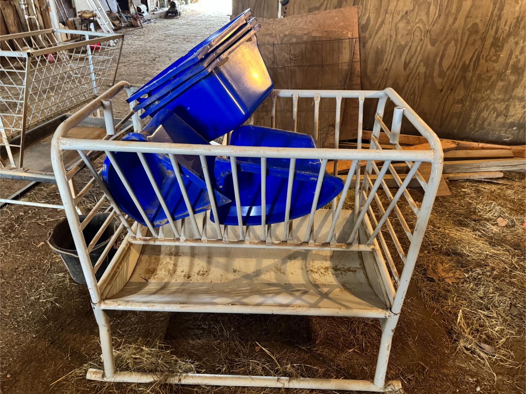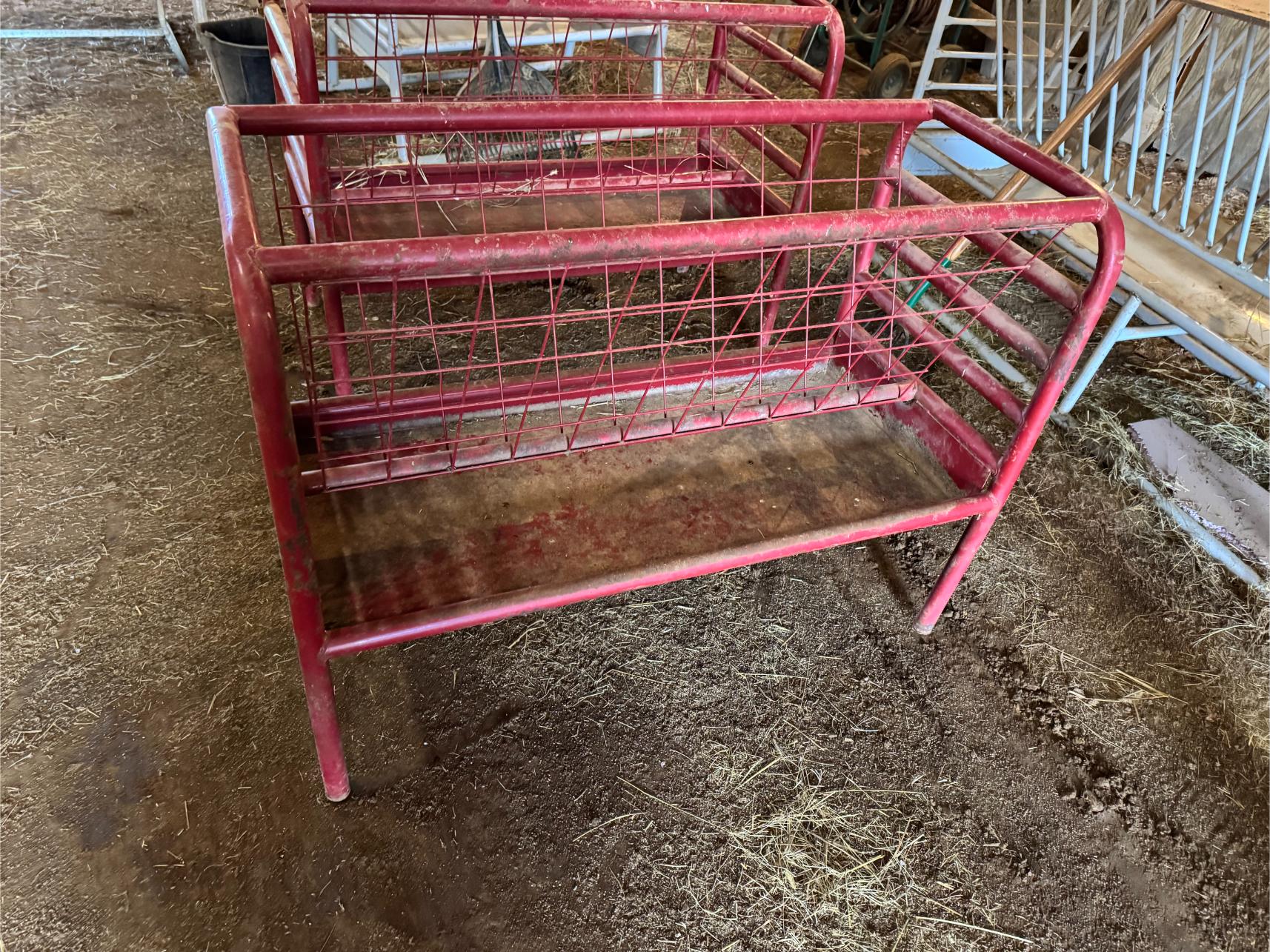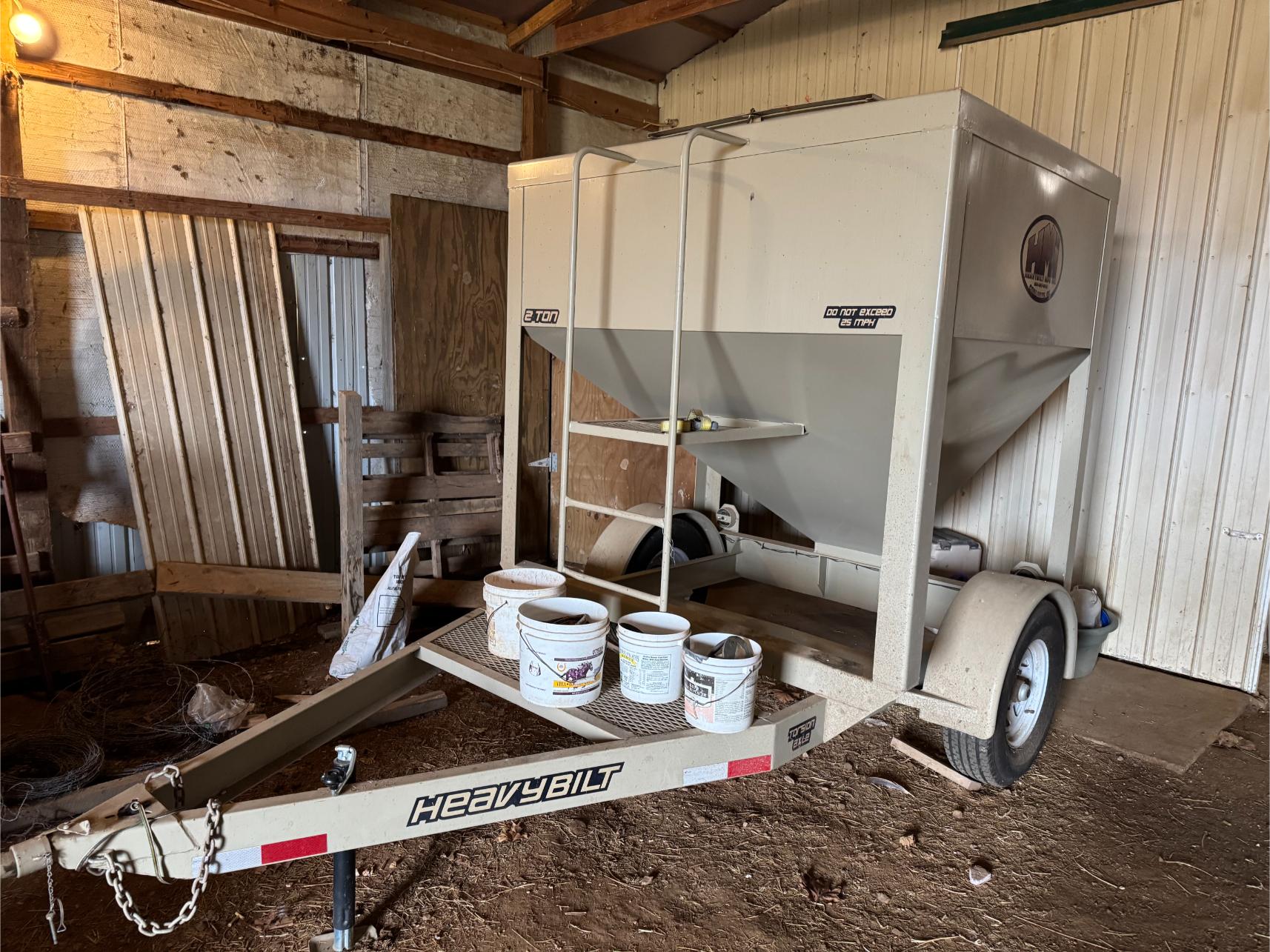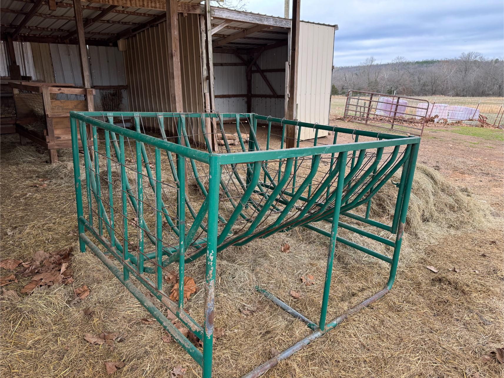 Tractor & Equipment: Kubota L3560 4×4 Tractor w;LA555 Loader (195 hrs) – Kubota RTV1140 4-Seat w/Hydraulic Dump (90 hrs) – Honda Foreman 5 4×4 4-Wheeler – Goat Master Corral w/Sweep Tub, Chute w/Head Gate & Scales – Heavybilt MFG 2-Ton Feed Buggy – 500 gal Fuel Tank on Stand – Bush Hog BH16 3 pt 6′ Brush Hog – 3 pt Spray Rig – Bush Hog 3 pt Post Digger – Hay Spear – 3 pt Box Blade w/Ripper Teeth – 3 pt 6′ Disk – 20′ Texas Bragg Dual Axle Trailer – 3 pt Trailer Mover – Metal Hay Ring – 4′ & 6′ Hay Bales – Goat/Sheep Hay Feeders, Feed & Water Troughs – Feed Buckets