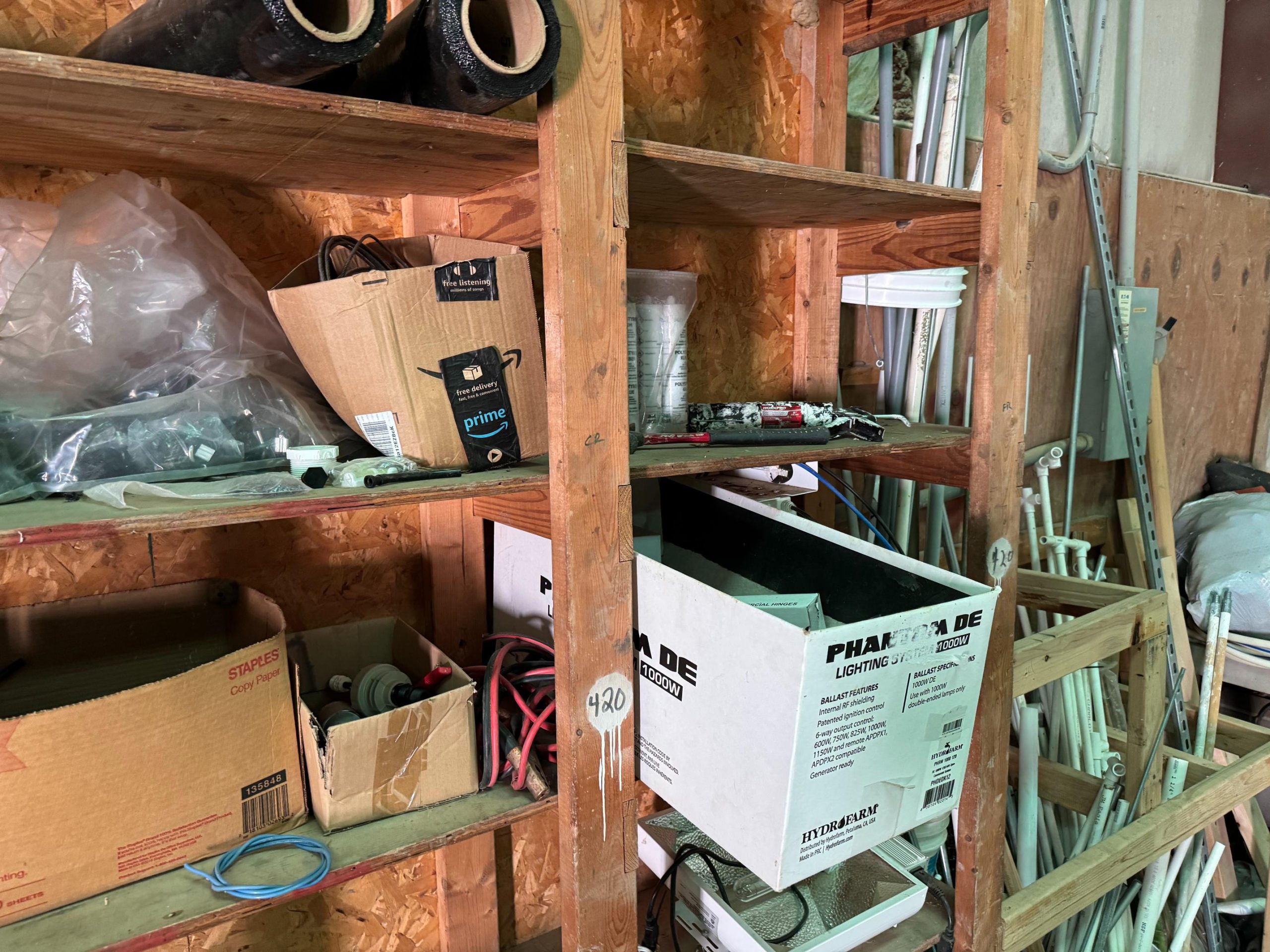 Shop Items, Grow Equipment & Misc: Zerocool System (Air Conditioner & Dehumidifier for Grow Facility – Cost $100,000 – additional info below) – 6000 & 5500 Watt Generators – Scaffolding – Mini-Split Unit (still in box) – Netafim – High Flow Reverse Osmosis Unit – Stainless & Other Shelves – Halogen Lights – Lg Breaker Box – Grow Media – Green House Canopies – Grow Lights – Grow Tables – Ridgid Shop Vac – Revolution Commercial Grinder – Dehumidifiers – Sump Pump – Misc Tools – Shop Fan – Fans – Can-Fan – Air Force Pro Pump – Anden Air Filter – 2″ Steel Pipe – Lumber & Plywood – Elec Wire – Conduit – Water Tanks – Water Cooler – Timers – Buckets – Chest Freezers – New 36” Diamond Saws –