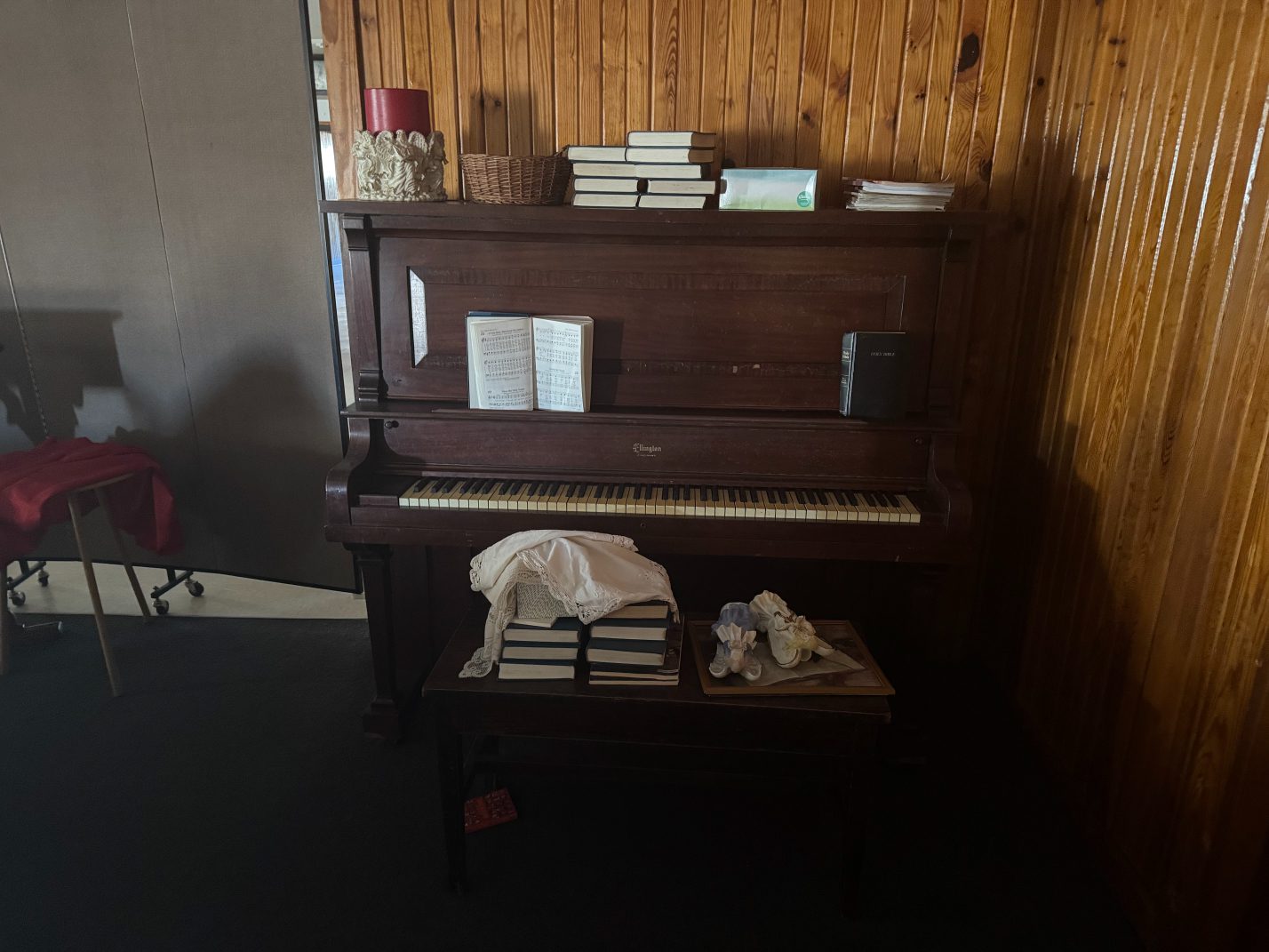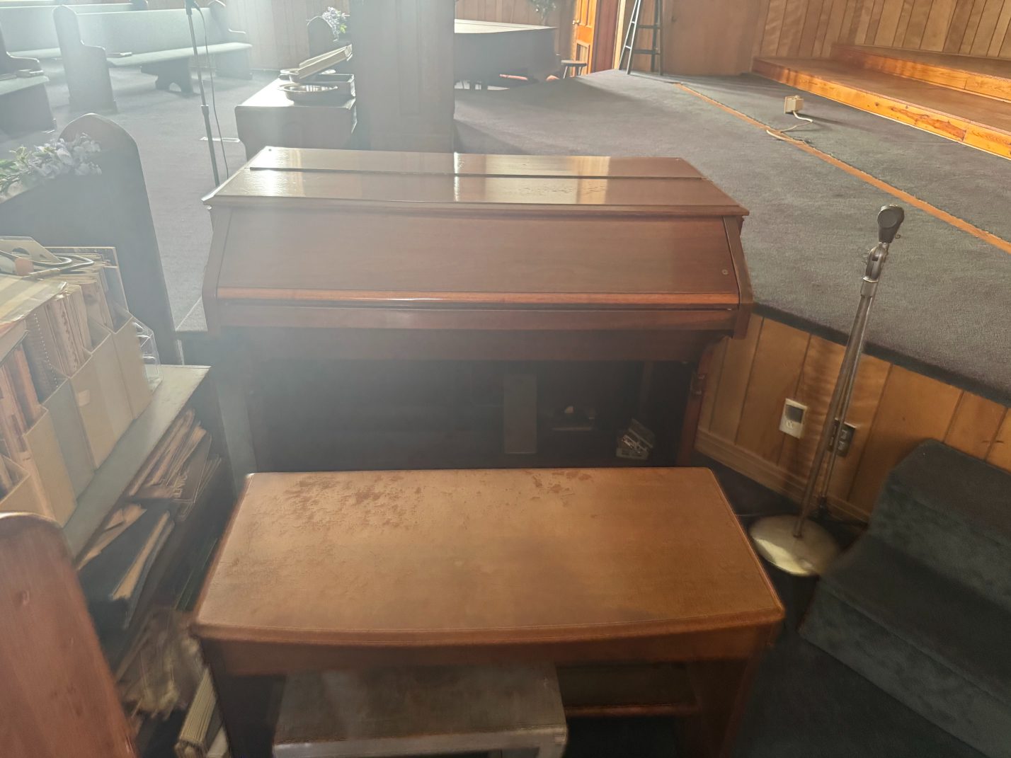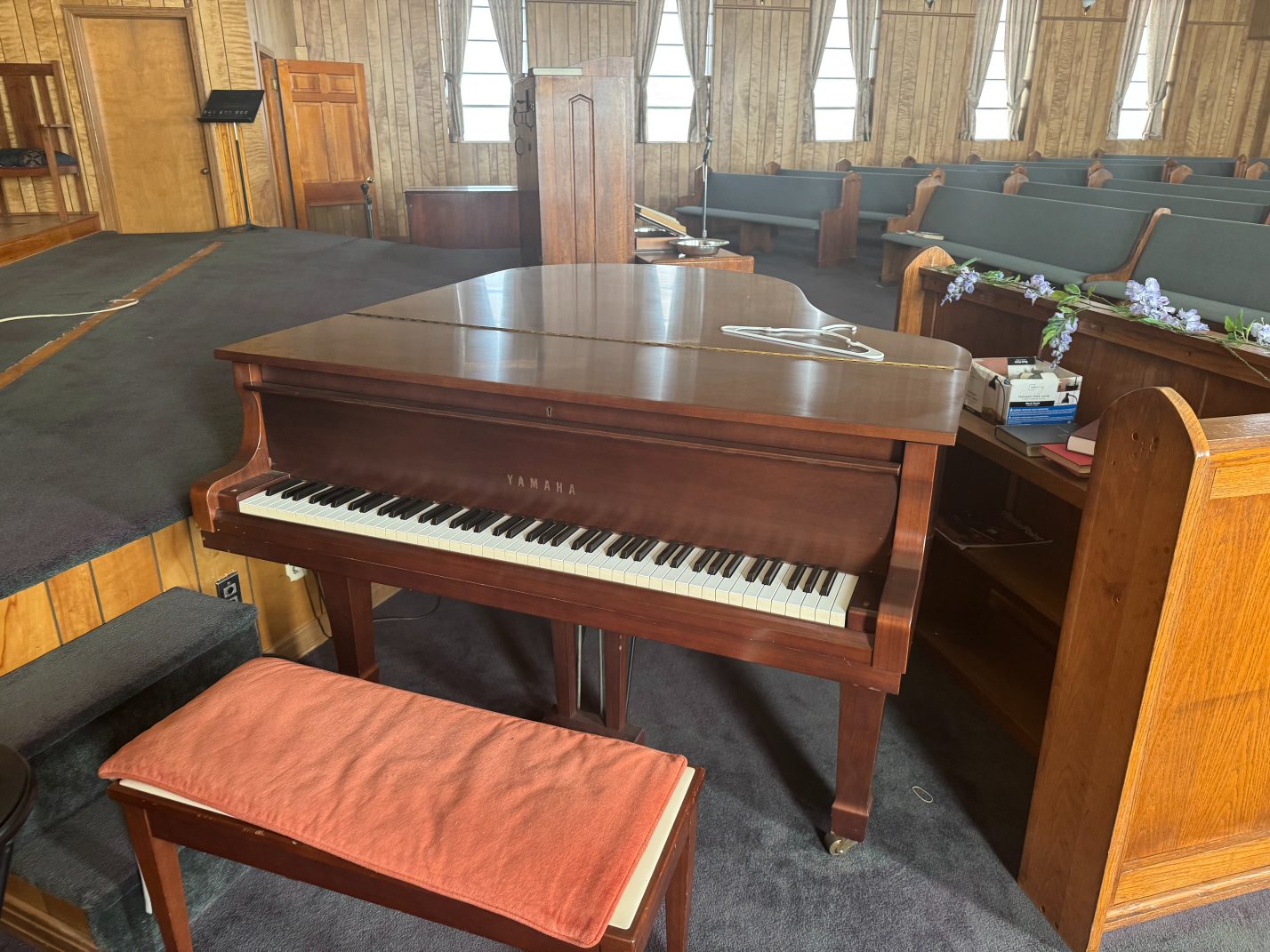 Instruments/Sound Equipment: Ellington Piano – Yamaha Piano – Organ – Microphones – Microphone Stands – Music Stands – Sheet Music – Wireless Receivers – Compact Disc Play/Reverse Cassette Deck – Peavey Mixer – Yamaha MC1202