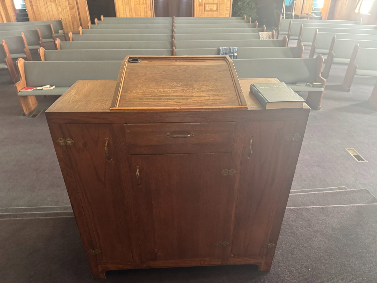 Furniture: Pews – Filing Cabinets – Chairs – Folding Chairs – Bookshelves – Folding Tables – Office Furniture – Pulpit