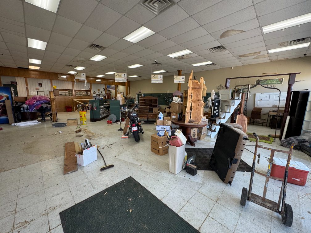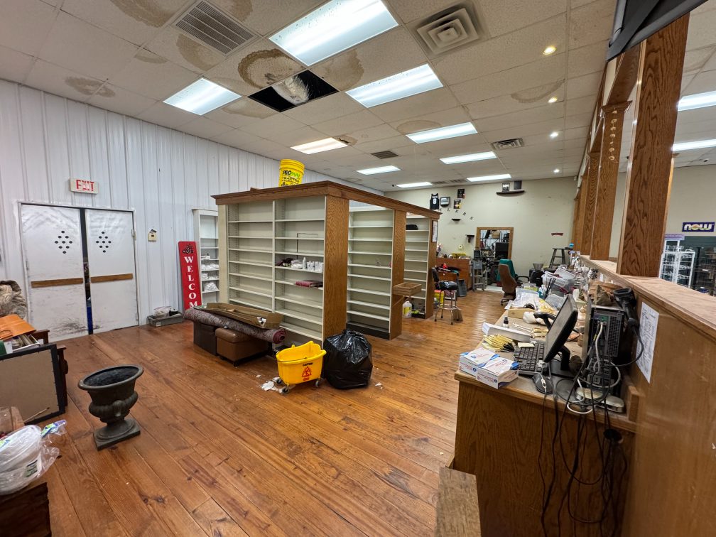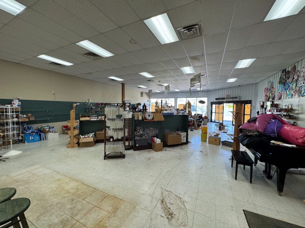 Inside, you’ll find a spacious retail area up front, perfect for customer-facing operations, along with a generous warehouse space in the rear for storage, inventory, or production. The building includes a loading dock and an additional bay door for easy access and shipping logistics. There’s also a restroom and other functional amenities designed for convenience.