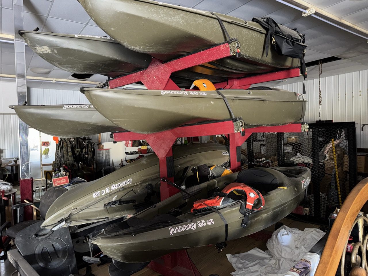 Vehicles: 2009 Chevrolet Corvette (10,750 miles, 1 owner) – 1963 Plymouth Fury (47,883 miles) – 2004 Harley-Davidson Motorcycle (7,210 miles) – Weld-Craft Flat Bottom Boat w/ Suzuki 25hp Engine – 2021 10ft Trailer w/ Kayak Rack & (6) Sun Dolphin Journey 10 ss Kayaks