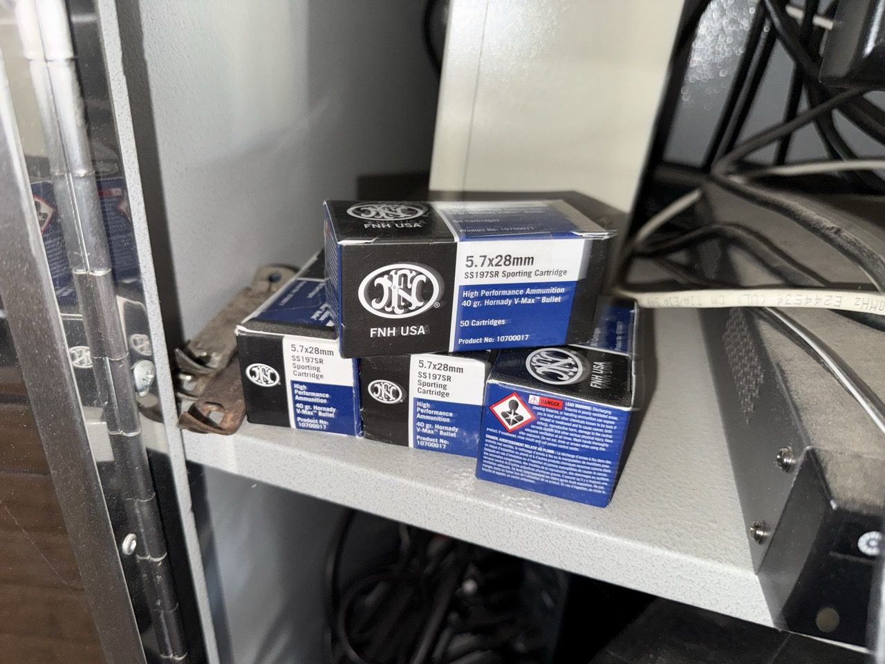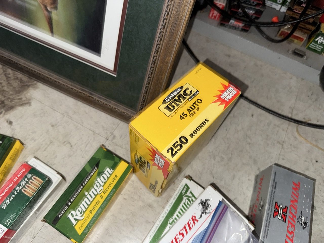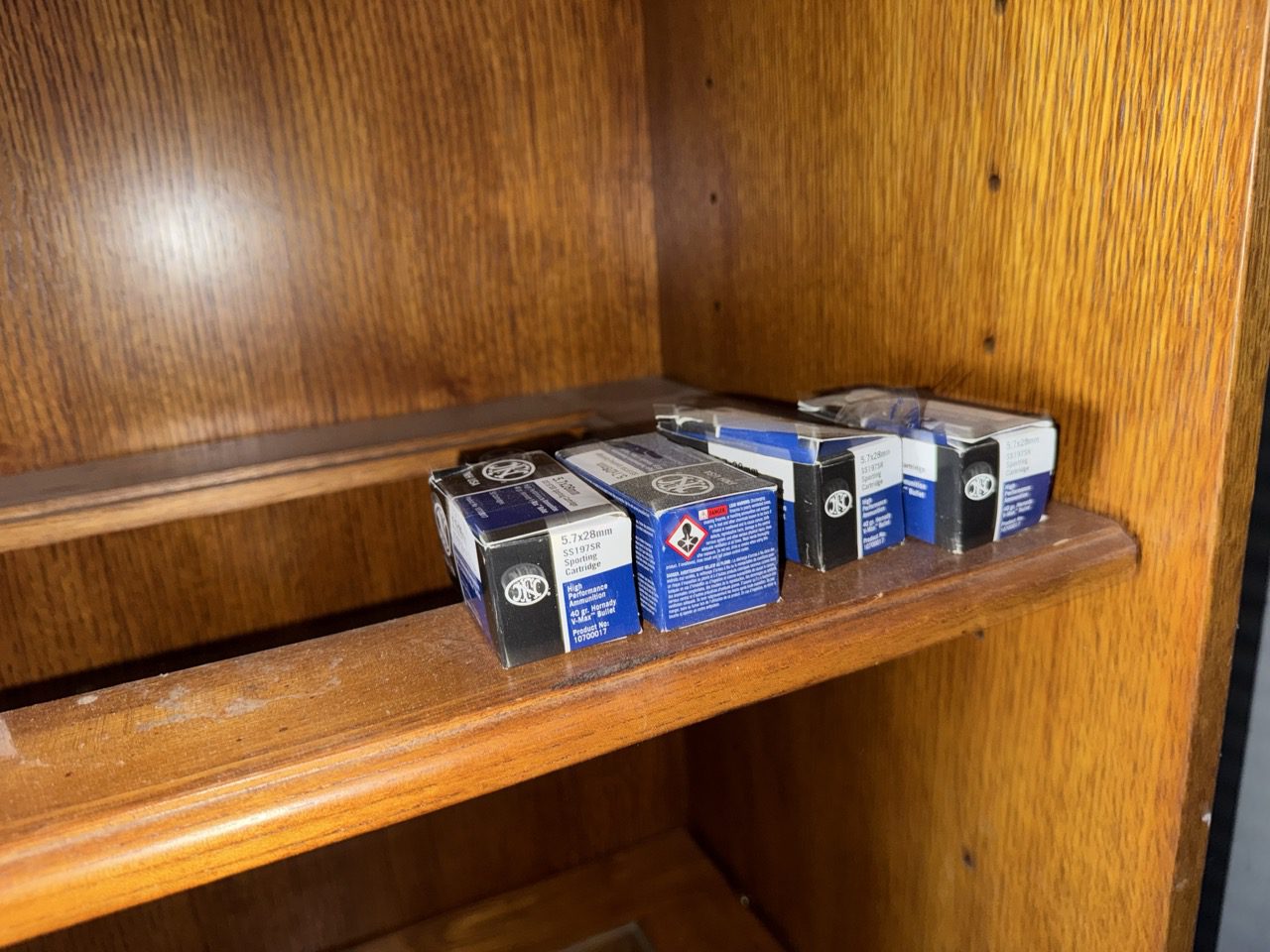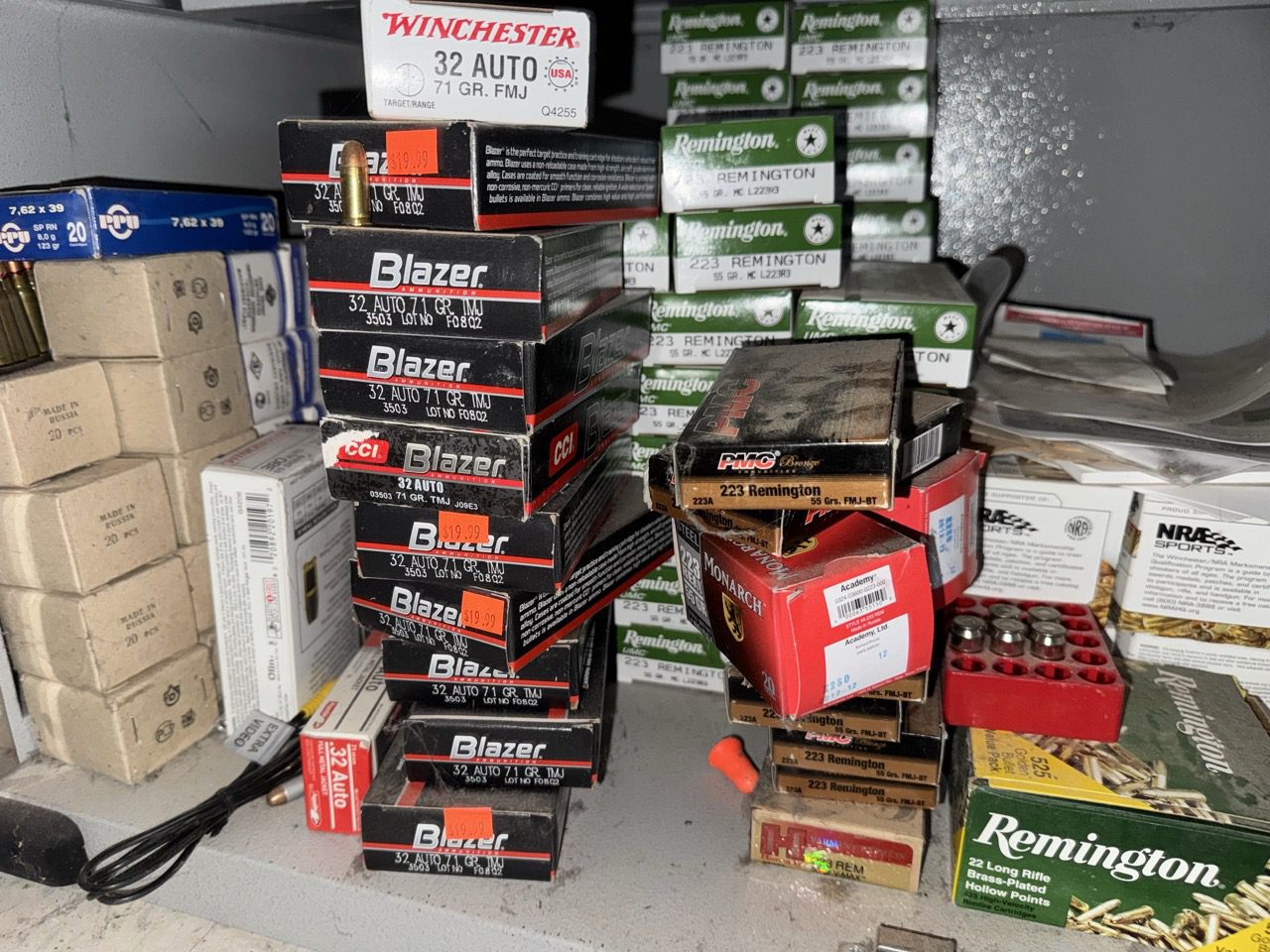 Firearms: W Richard dbl Barrel Shotgun – Ruger 57 5.7×28 Pistol – Colt King Cobra 357 Mag Revolver – Walther PPK .32acp – Glock 34 9×19 – HK VP9 9mmx19 – Springfield XDS 9×19 – Remington 700 .30-06 w/ Scope – Chinese Side Cock – Knight .50cal Black Powder – Mossberg 500A 12ga Pump – JC Higgins Mod 583.17 12ga Bolt – Remington Woodsmaster Mod 742 .308 Win w/ Scope – JC Higgins Mod 583.21 16ga Bolt – Remington Mod 700 .243 Win – SKS 7.62×39 – Sig Sauer M400 5.56 Nato – Marlin Mod 336CS .30-30 Lever Action – Colt M4 Carbine 5.56
