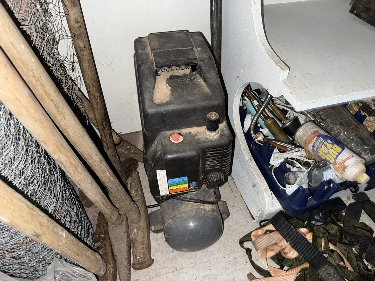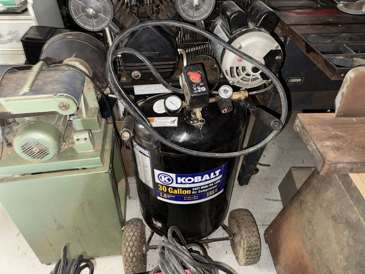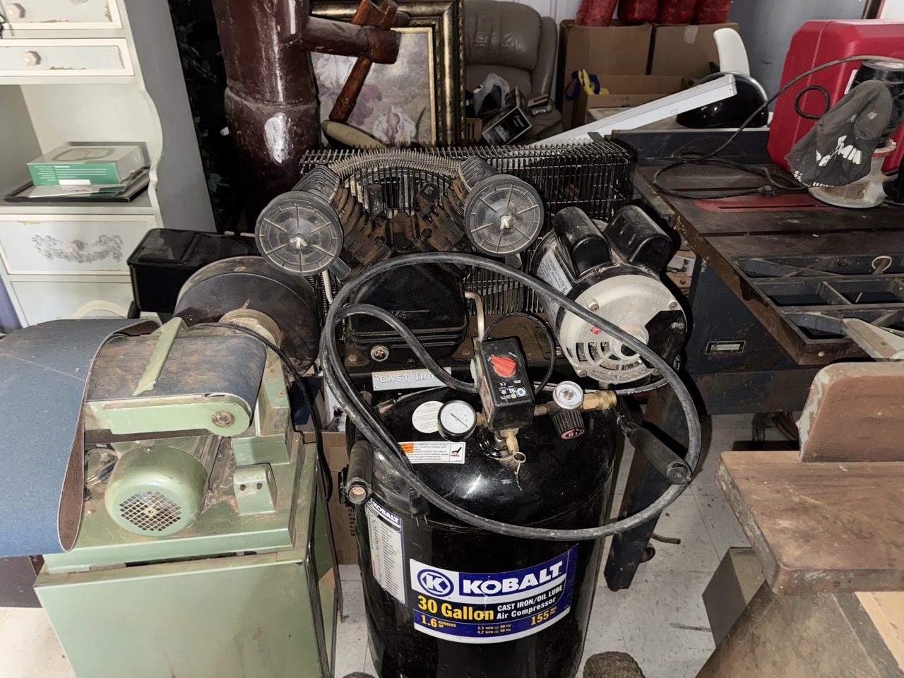 Tools & Shop: Kobalt 30 Gallon Air Compressor – Central Machinery Belt & Disc Sander – Lincoln Ac/Dc Arc Welder – Atlas Jointer – Craftsman Table Saw – Cub Cadet Tiller – Field Fence – Troy Bilt Pressure Washer – Dewalt & Milwaukee Saw Zaws – Circular Saws – Pump Sprayers – Chain Hoists – Jack Stands – Push Mower – 12v Sprayer on Trailer