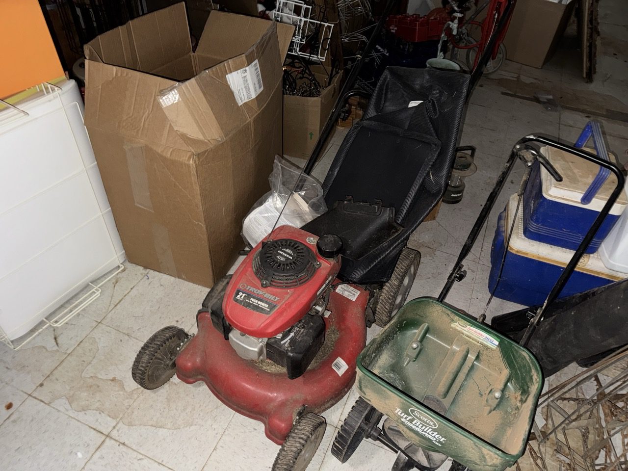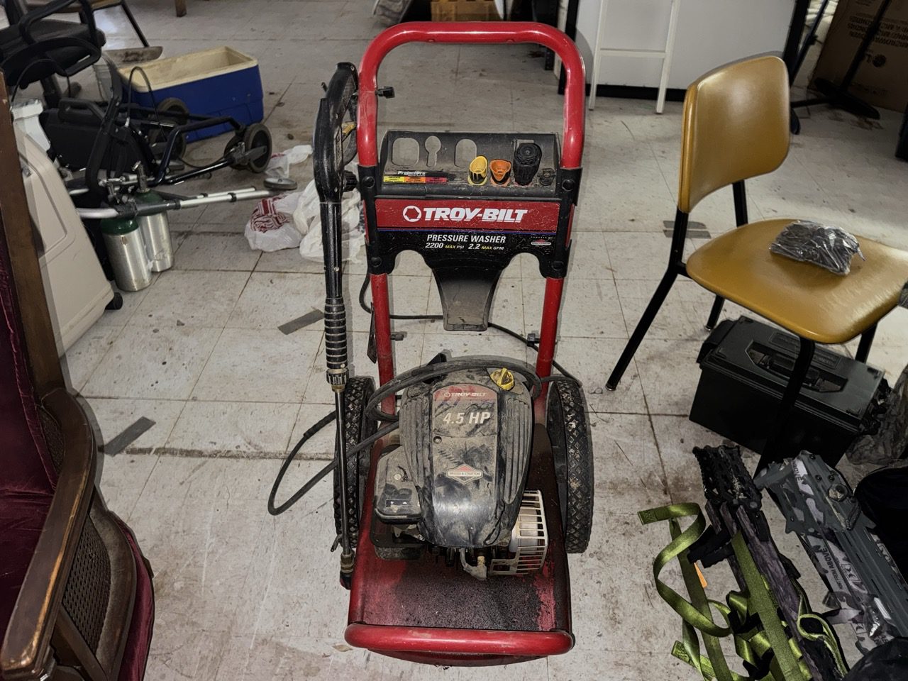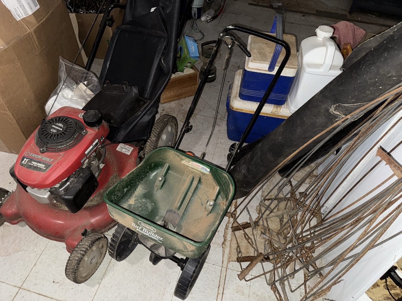 Tools & Shop: Kobalt 30 Gallon Air Compressor – Central Machinery Belt & Disc Sander – Lincoln Ac/Dc Arc Welder – Atlas Jointer – Craftsman Table Saw – Cub Cadet Tiller – Field Fence – Troy Bilt Pressure Washer – Dewalt & Milwaukee Saw Zaws – Circular Saws – Pump Sprayers – Chain Hoists – Jack Stands – Push Mower – 12v Sprayer on Trailer