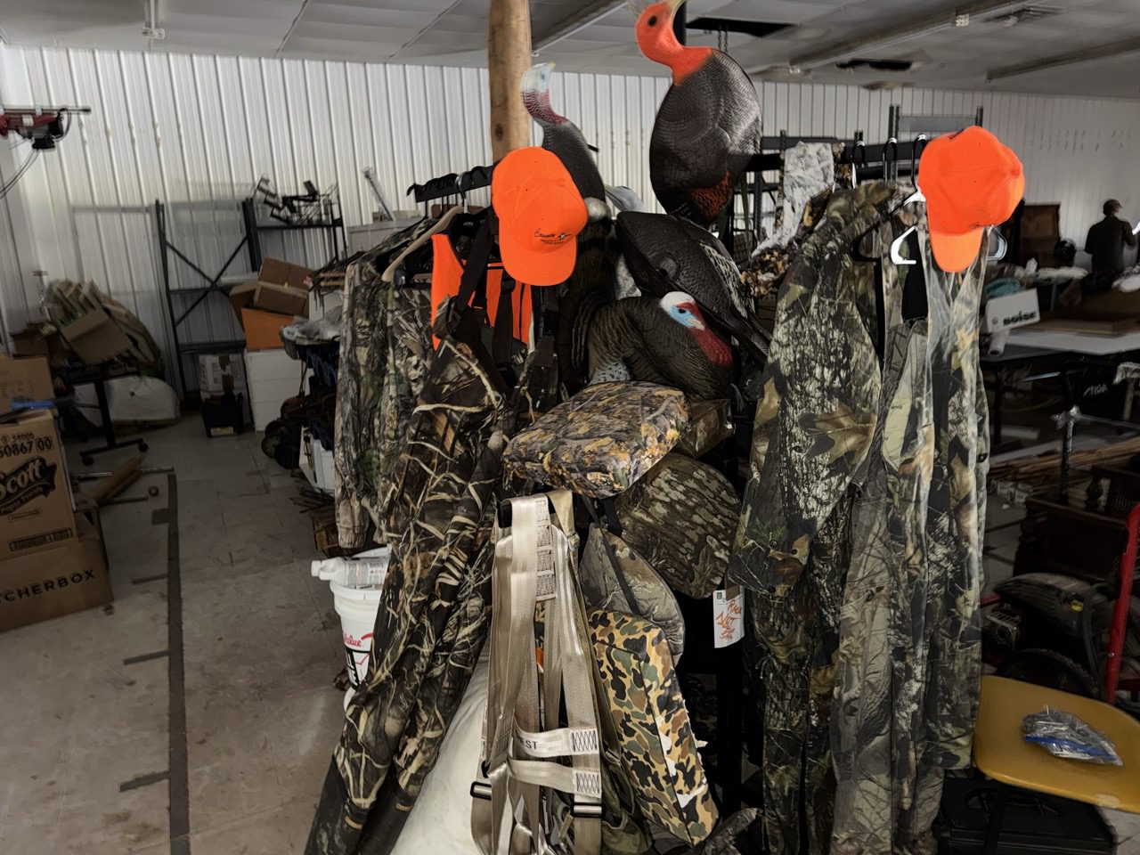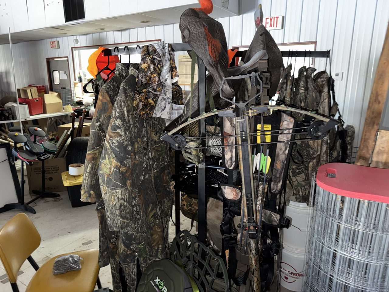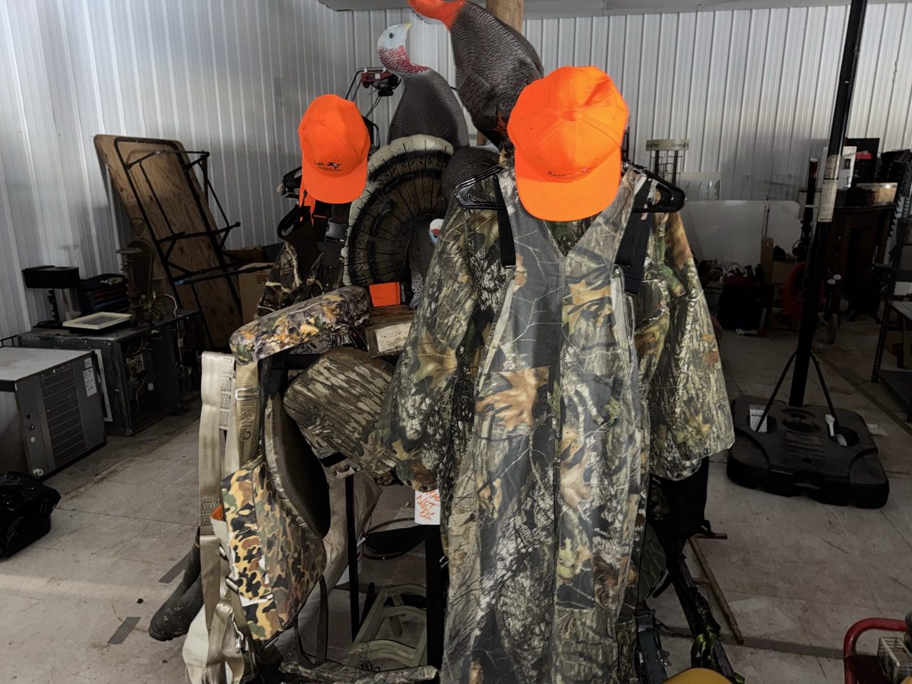 Hunting: Camo Waders – Camo Clothes – Hunters Orange – Crossbows – Game Cameras – Climbing Sticks – Climbing Stands – Boots – (100’s) Game Traps