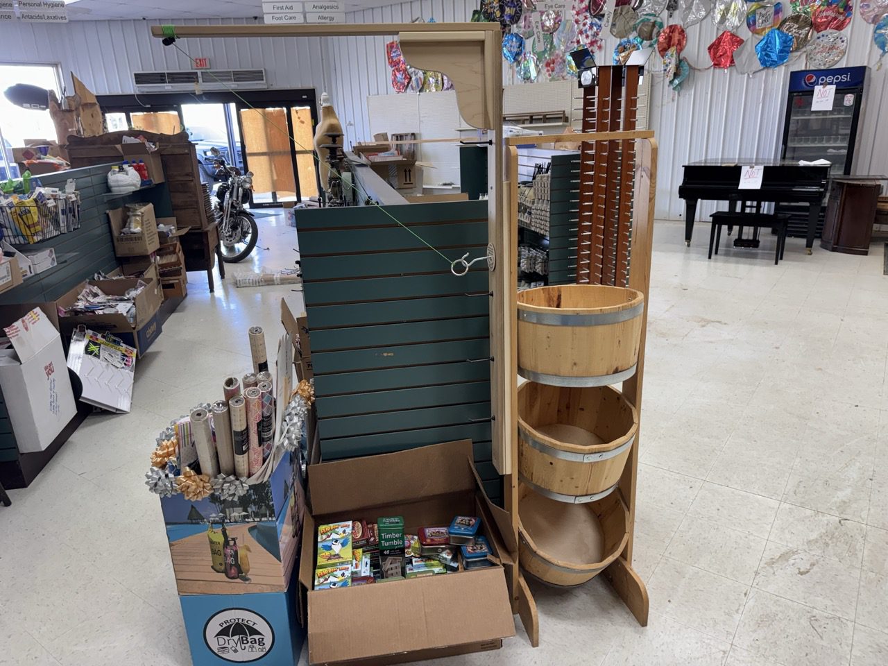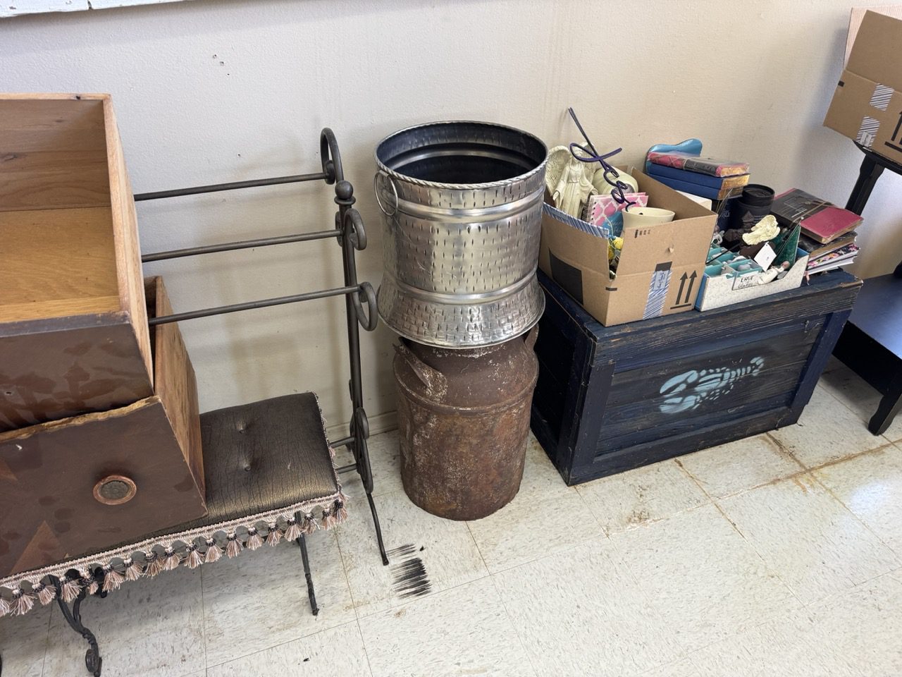 And: Honey Extractor – Bee Boxes – Bee Keeper Suit – Lockers – Appliances (Washer, Dryers, Dishwashers, Hot Water Tank) – Wooden Native American Statue – Antique Wash Stand – Cream Cans – Gondola Shelving – Lumber – Antique Wheelchair – Golf Clubs – Inversion Table – Basketball Goal – Punching Bag – Home Decor – Wall Decor – Galvanized Bucket – Antique Kitchen Cabinet – Bedroom Furniture – Kids Bikes – New Merchandise – R/A Racks – Mannequins – Candles – Books – Treadle Sewing Machine
