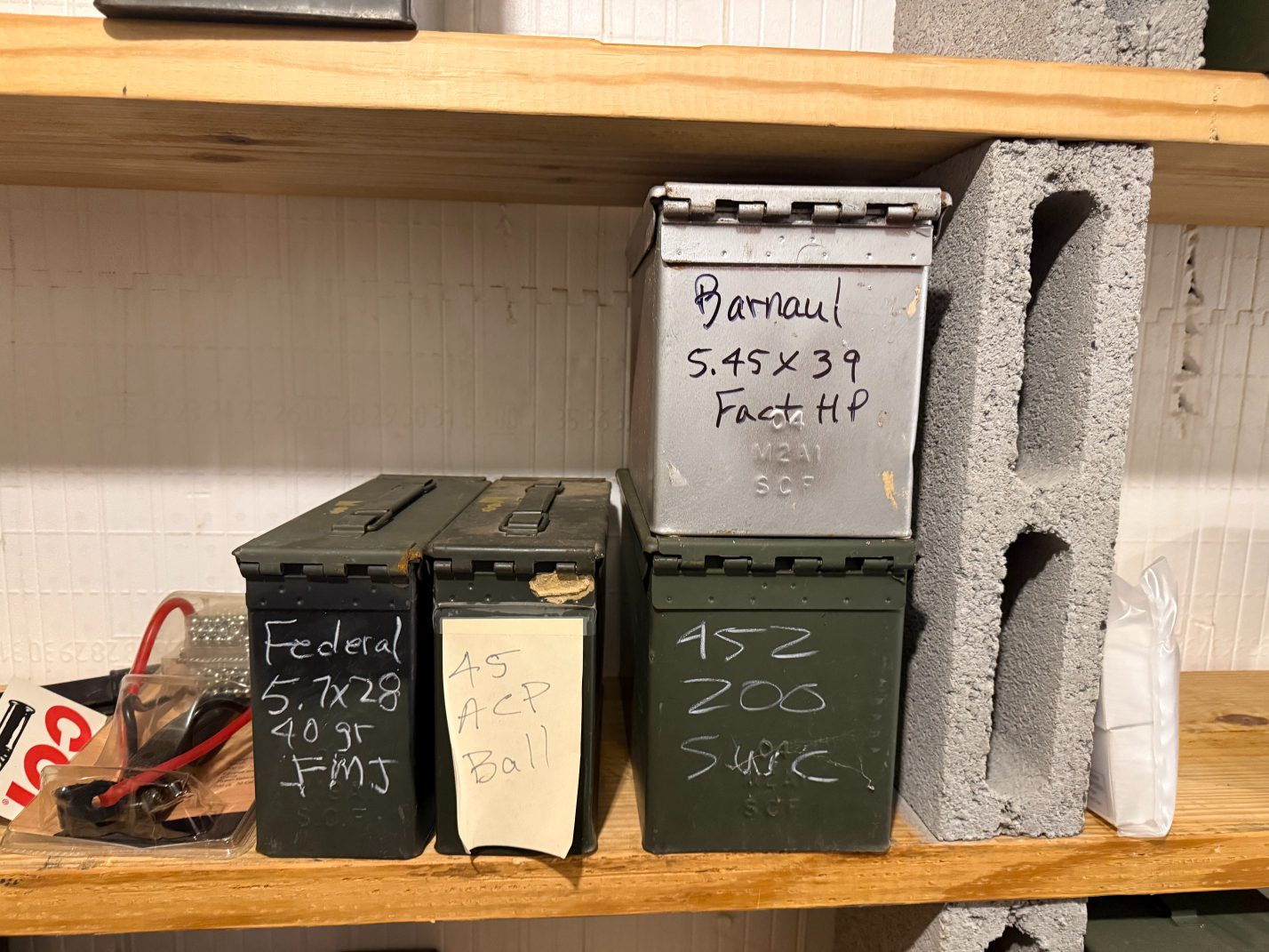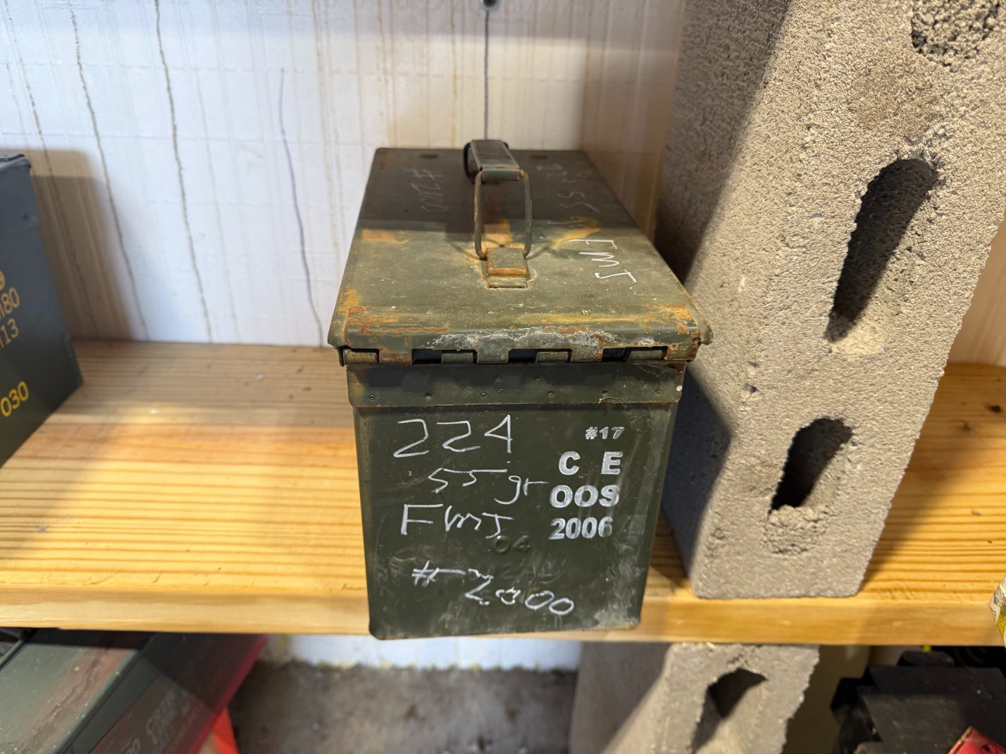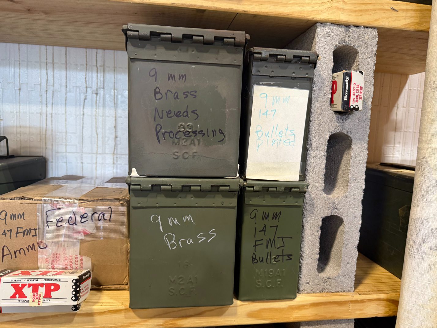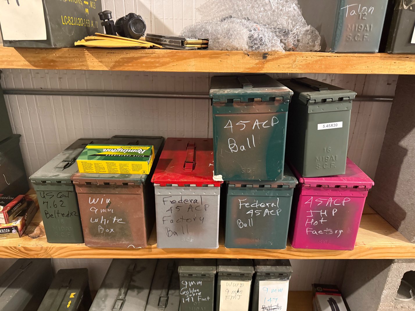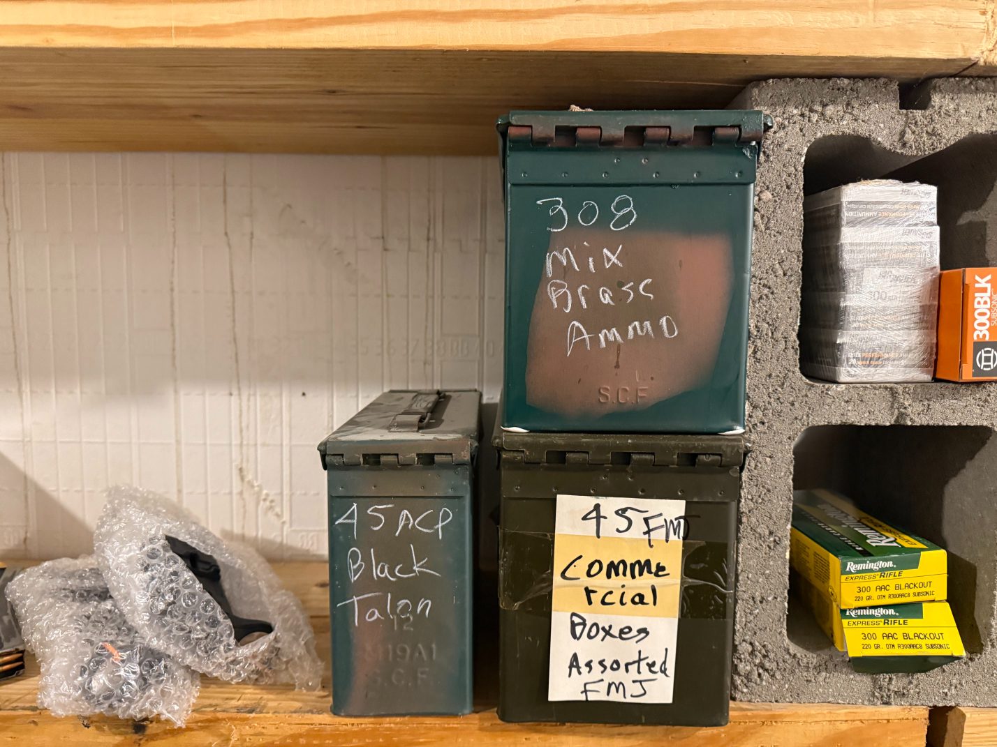 Ammunition/Reloading: 5.56 – 5.56 Tracer – .225 – Federal 5.7×28 FMJ – Barnual 5.45×39 Fact HP – XM 193 – .45 Plated – .40 – .9mm – .9mm 115 BLEM – Federal .45 ACP – .308 Mixed Brass – .45 FMJ – .300 Blackout – .223 – .9mm Luger – .12 Gauge Buck Shot – .300 Blackout Brass – Federal .280 Brass – .6mm Brass – .45 Brass – .38/.357 Bullets – .308 Match Brass – 7.62mm x 51 NATO – Reloading Press – Magazines – Metal Targets – Gun Cases – Ammo Cans – Approximately 250 LBs of Tannerite