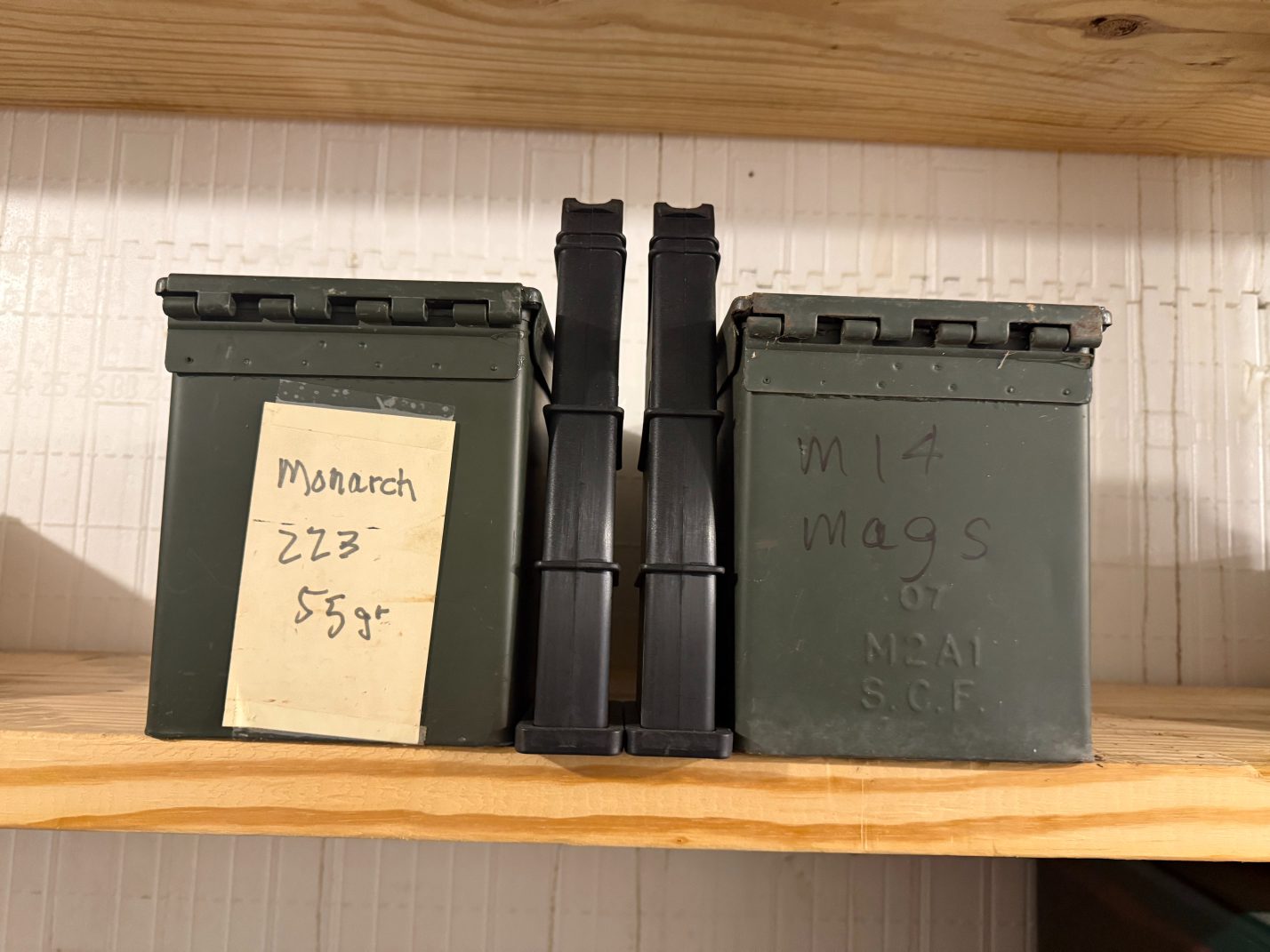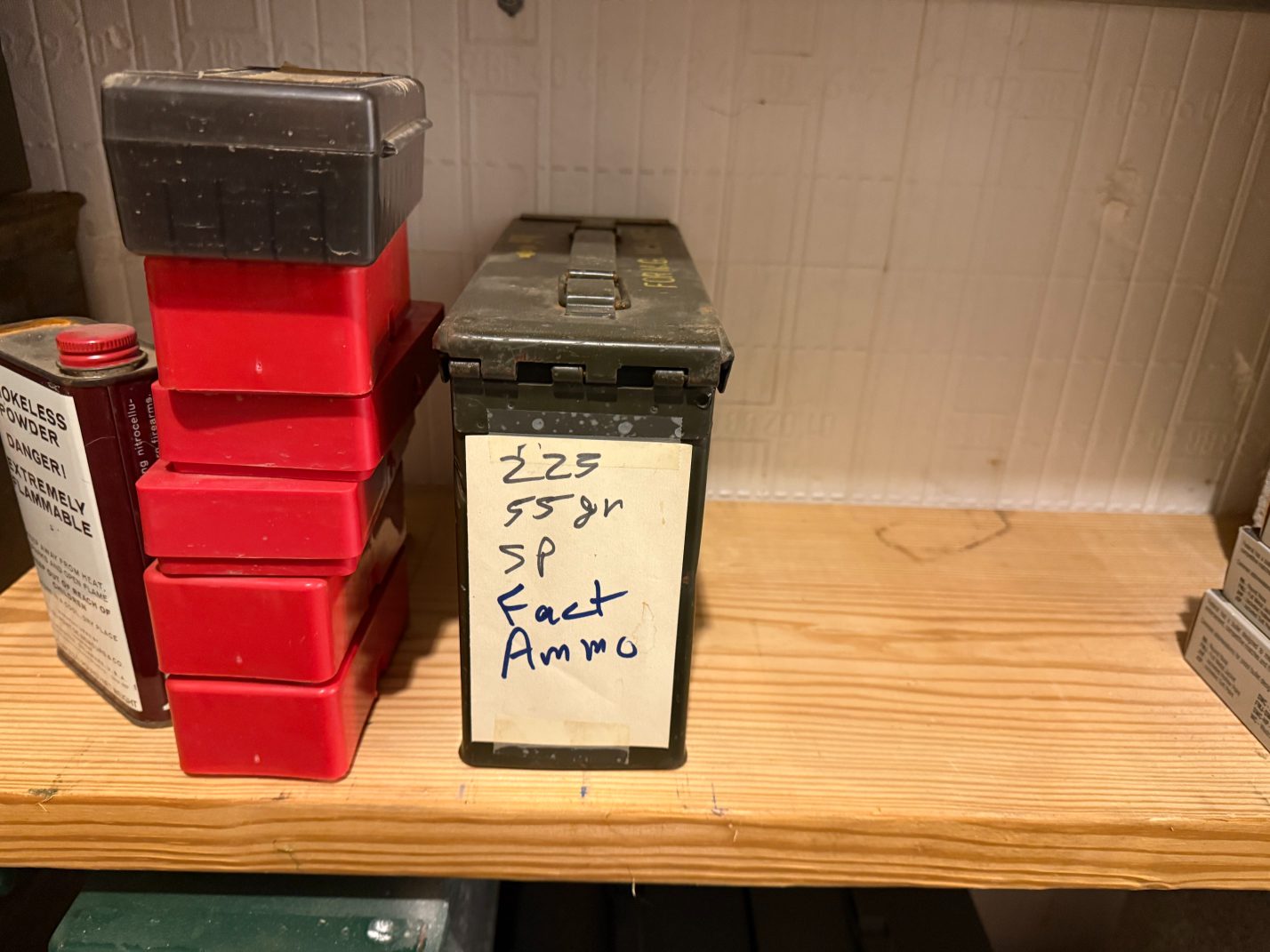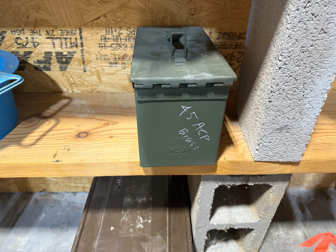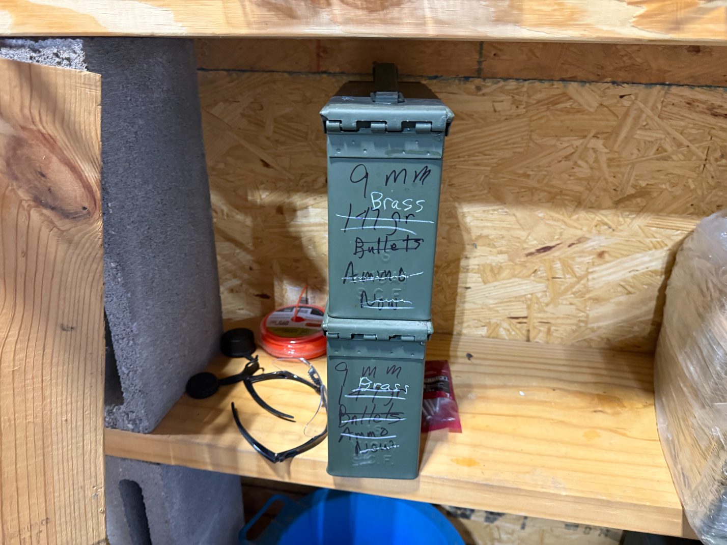 Ammunition/Reloading: 5.56 – 5.56 Tracer – .225 – Federal 5.7×28 FMJ – Barnual 5.45×39 Fact HP – XM 193 – .45 Plated – .40 – .9mm – .9mm 115 BLEM – Federal .45 ACP – .308 Mixed Brass – .45 FMJ – .300 Blackout – .223 – .9mm Luger – .12 Gauge Buck Shot – .300 Blackout Brass – Federal .280 Brass – .6mm Brass – .45 Brass – .38/.357 Bullets – .308 Match Brass – 7.62mm x 51 NATO – Reloading Press – Magazines – Metal Targets – Gun Cases – Ammo Cans – Approximately 250 LBs of Tannerite