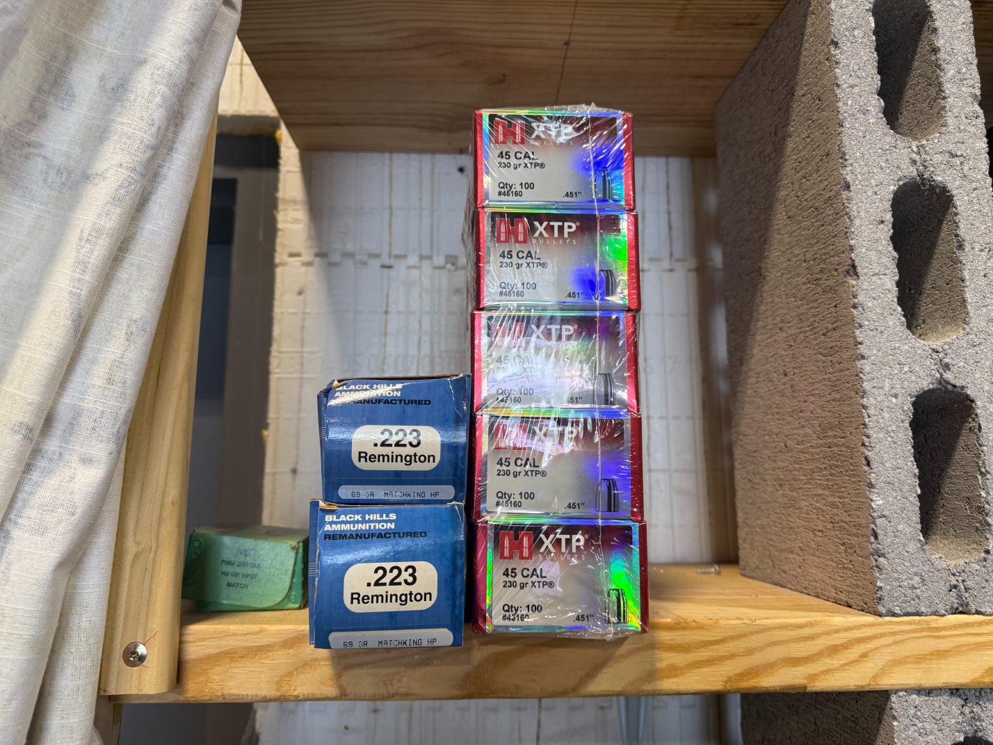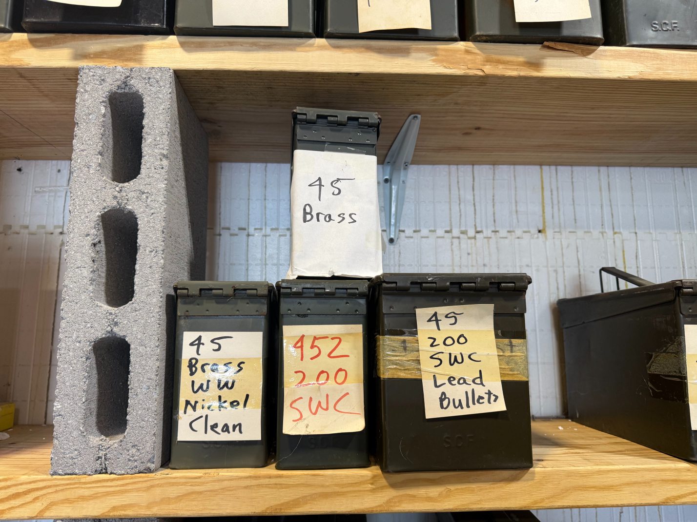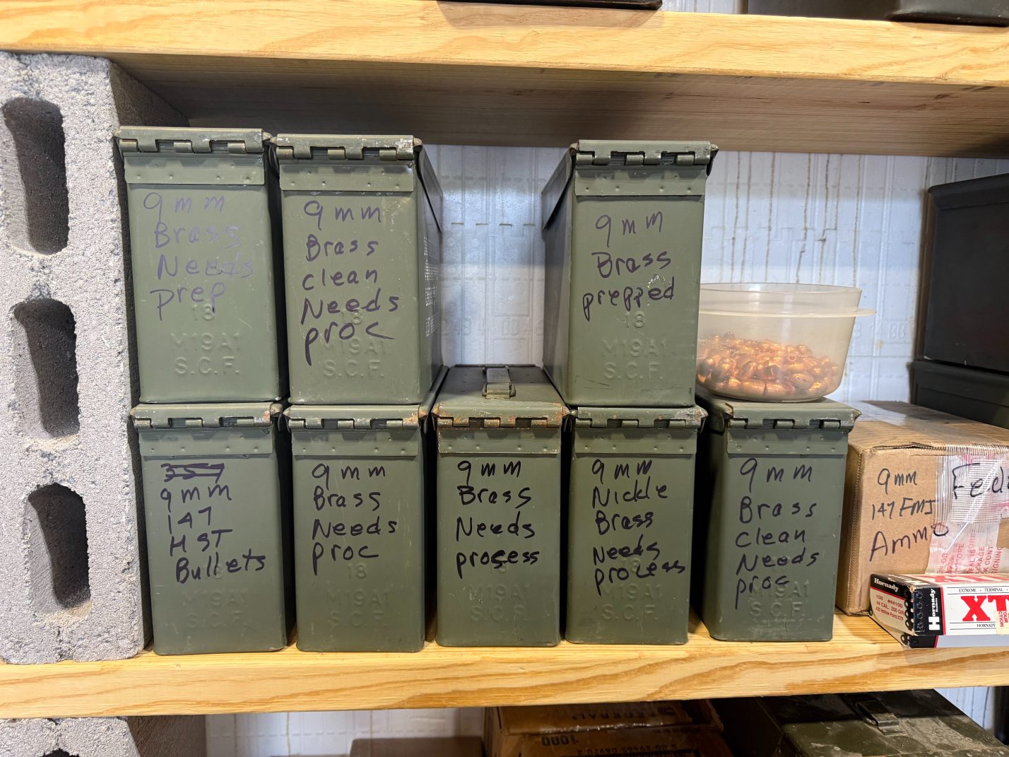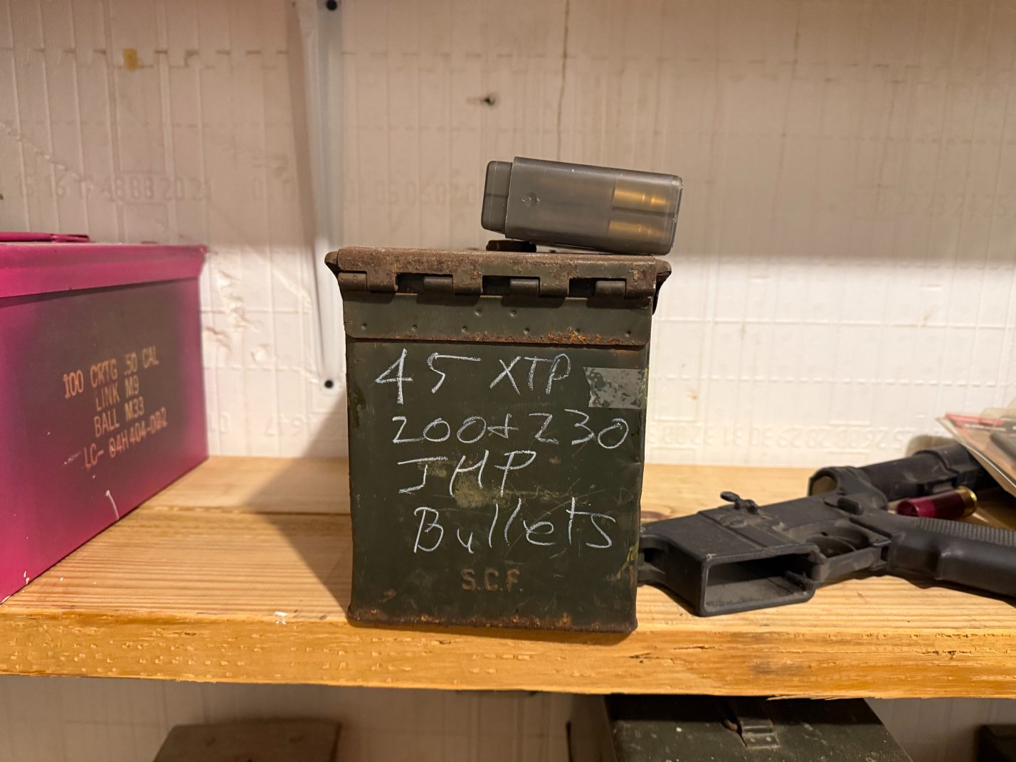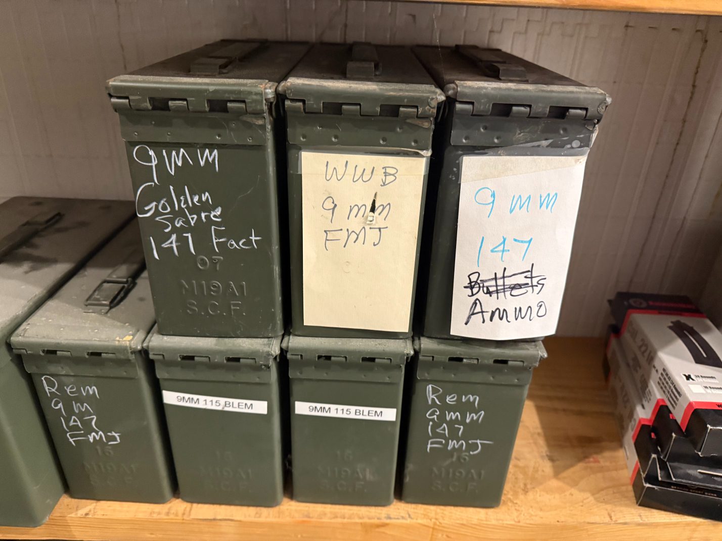Ammunition/Reloading: 5.56 – 5.56 Tracer – .225 – Federal 5.7×28 FMJ – Barnual 5.45×39 Fact HP – XM 193 – .45 Plated – .40 – .9mm – .9mm 115 BLEM – Federal .45 ACP – .308 Mixed Brass – .45 FMJ – .300 Blackout – .223 – .9mm Luger – .12 Gauge Buck Shot – .300 Blackout Brass – Federal .280 Brass – .6mm Brass – .45 Brass – .38/.357 Bullets – .308 Match Brass – 7.62mm x 51 NATO – Reloading Press – Magazines – Metal Targets – Gun Cases – Ammo Cans – Approximately 250 LBs of Tannerite