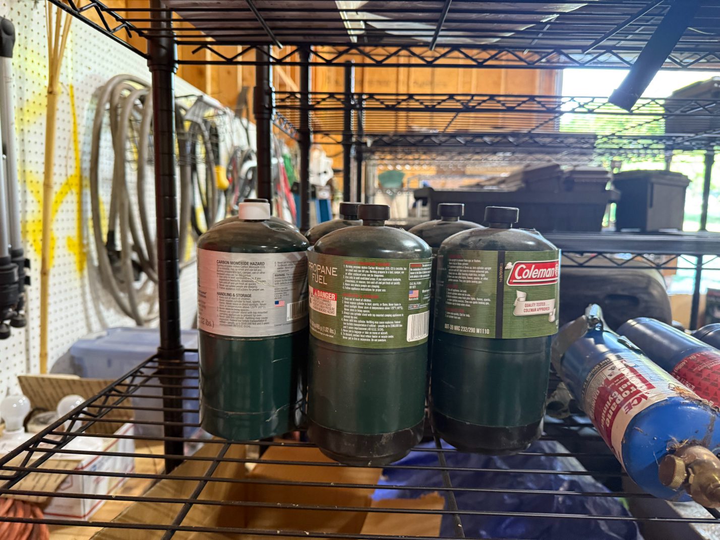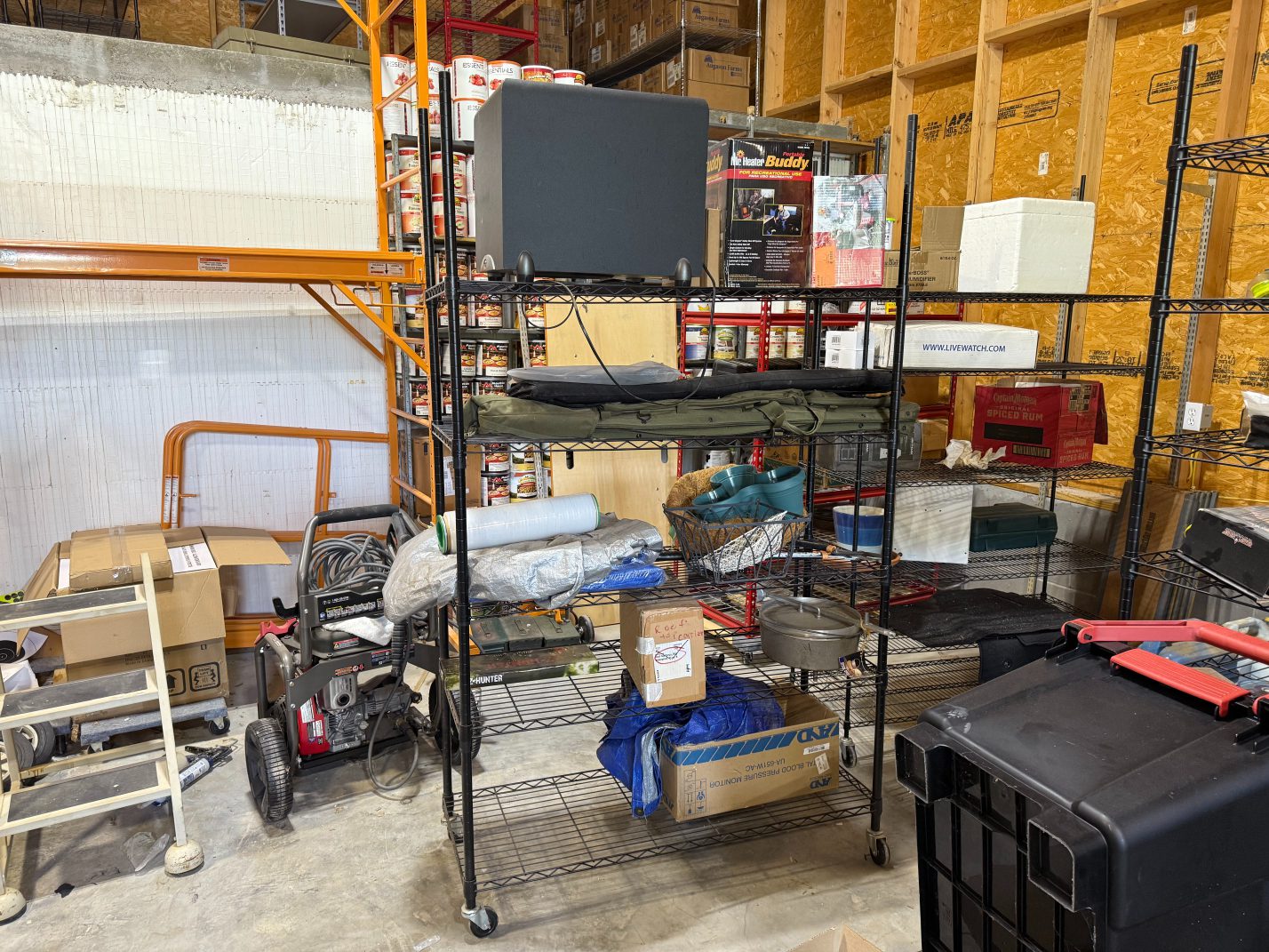 Tools/Shop Items: (New) Sportsman Gasoline or Propane Generator – Honda Pressure Washer – King Drill Press – Air Hoses – Metal Shelving – Ladders – Goalzero Lantern – Nomad Solar Panel – Buddy Heater – Buddy Flex Cooker – Gas Cans – Kerosene Cans – Skilsaw Circular Saw – Belt Sander – Dolly – Portable Steps – Scaffolding – Extension Cords – Ryobi Chop Saw – Come-Alongs – Ratchet Straps – Water Filters – Tow Straps – Lag Screws – Yard Tools – Jumper Cables – Craftsman Miter Saw – Air Compressor – Flexible Mono Solar Panel – Batteries – Rollaround Carts – Jack Stands – Metal Cabinets – Life Jackets – Mason Jars – Canning Supplies – Jump Pack – (New) Harvest Right Food Dehydrator – Coleman Lanterns – Kelly Kettle – Power Inverter – Cordless Nail Gun – Corded Impact – Craftsman Socket Set – Coleman Camp Fuel – Rough Sawn Lumber – Sprayer – Cinder Blocks – Plywood – Hitch Rack – Tires – Hitches – Vise – Cedar and Walnut Rough Cut Lumber