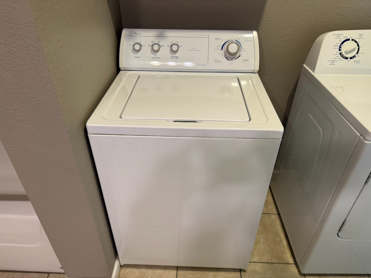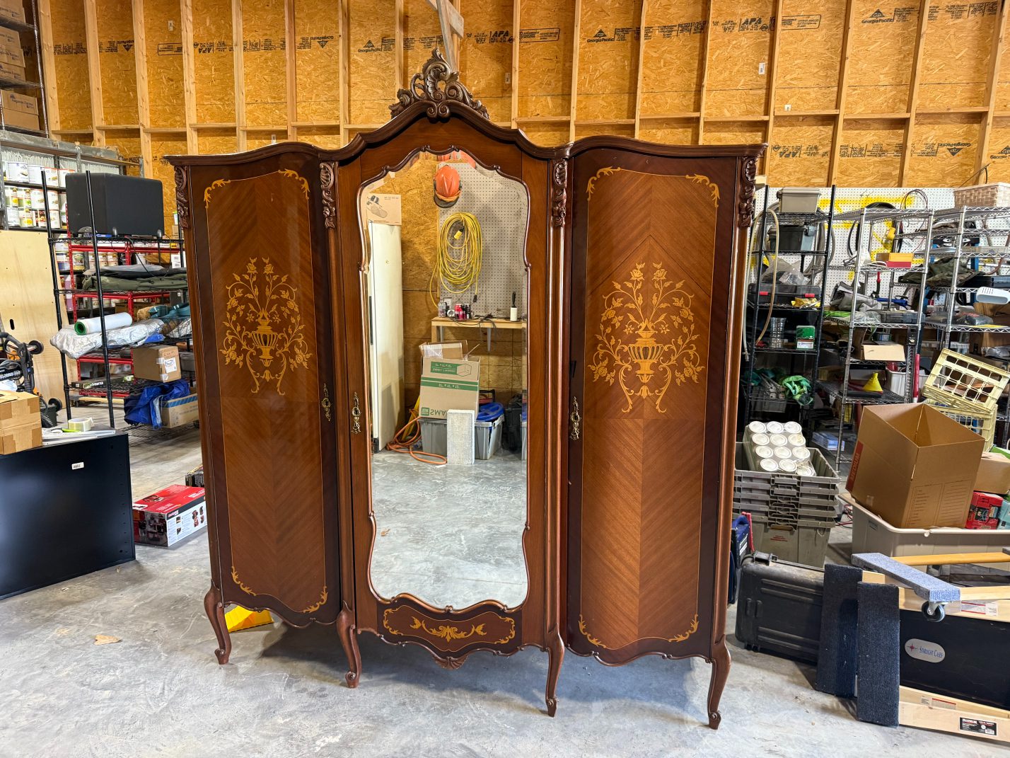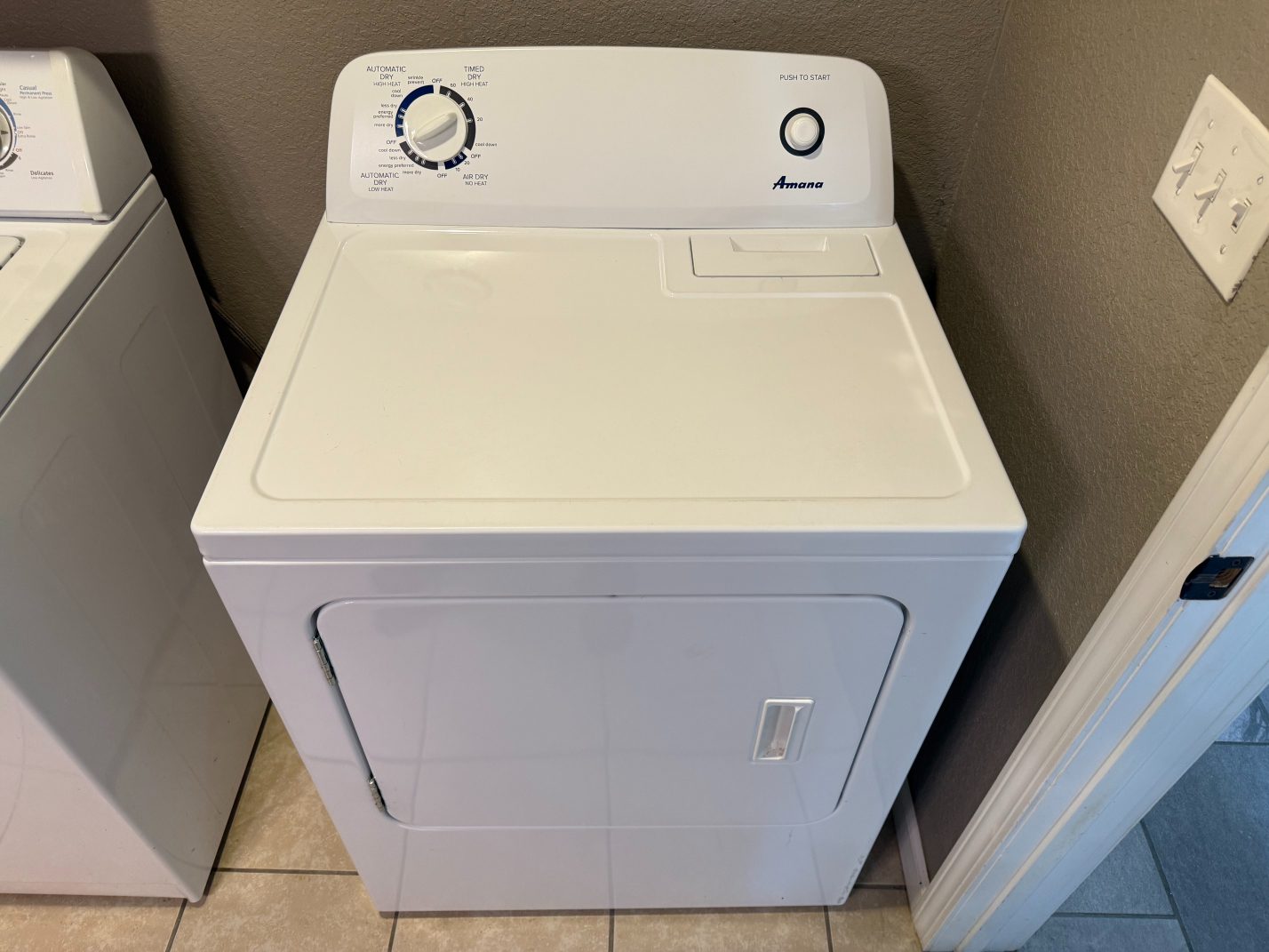 Household Items: Antique Wardrobe – Whirlpool Washer – Amana Dryer – Patio Furniture