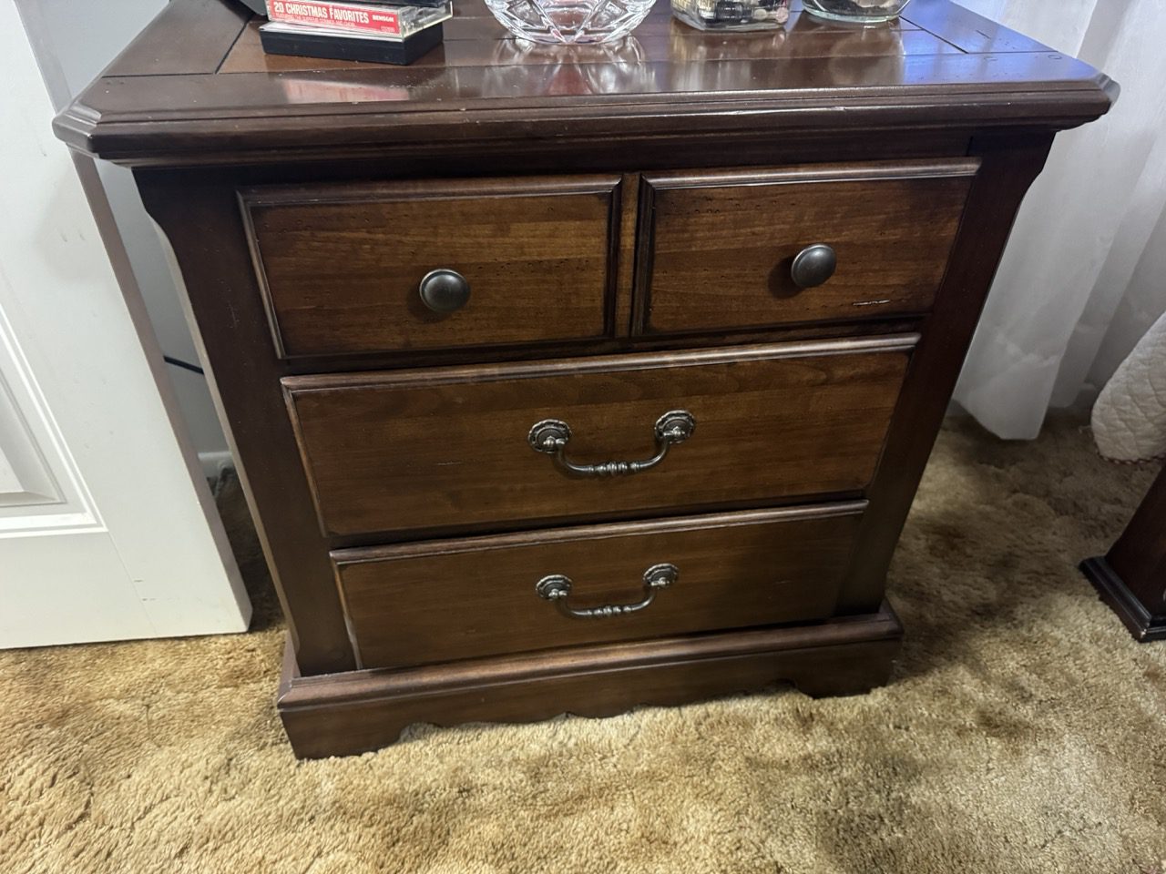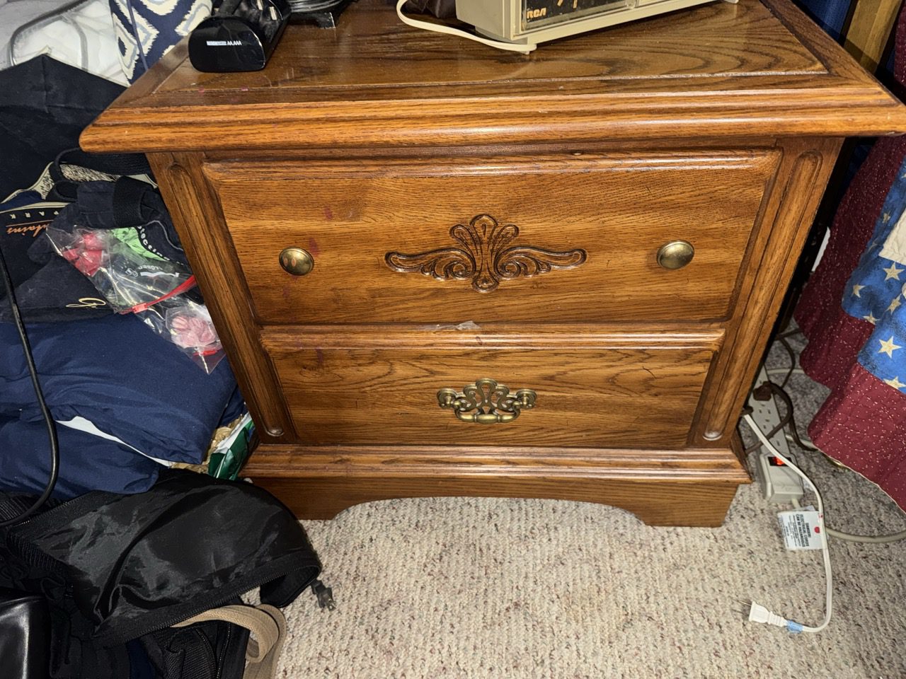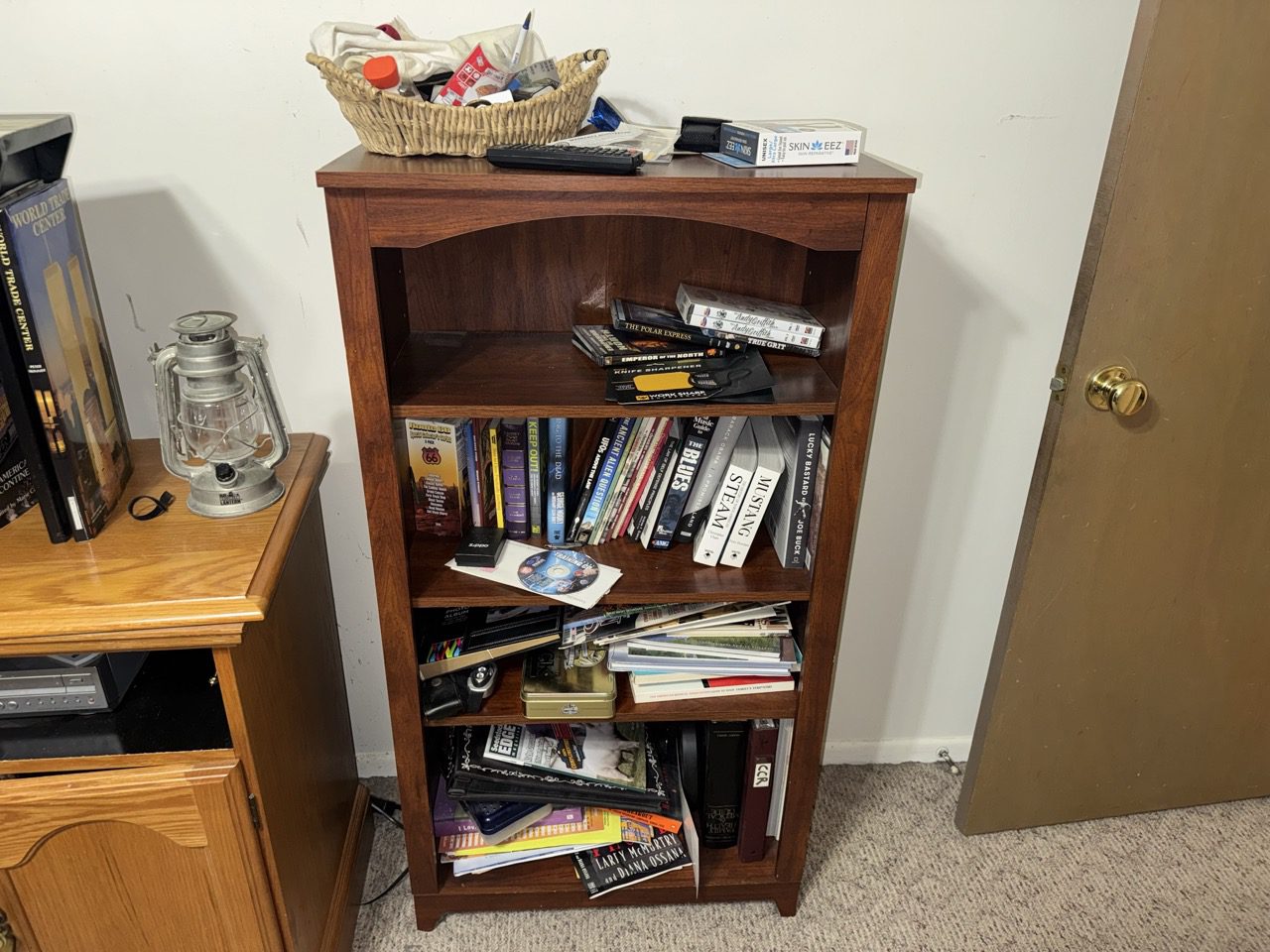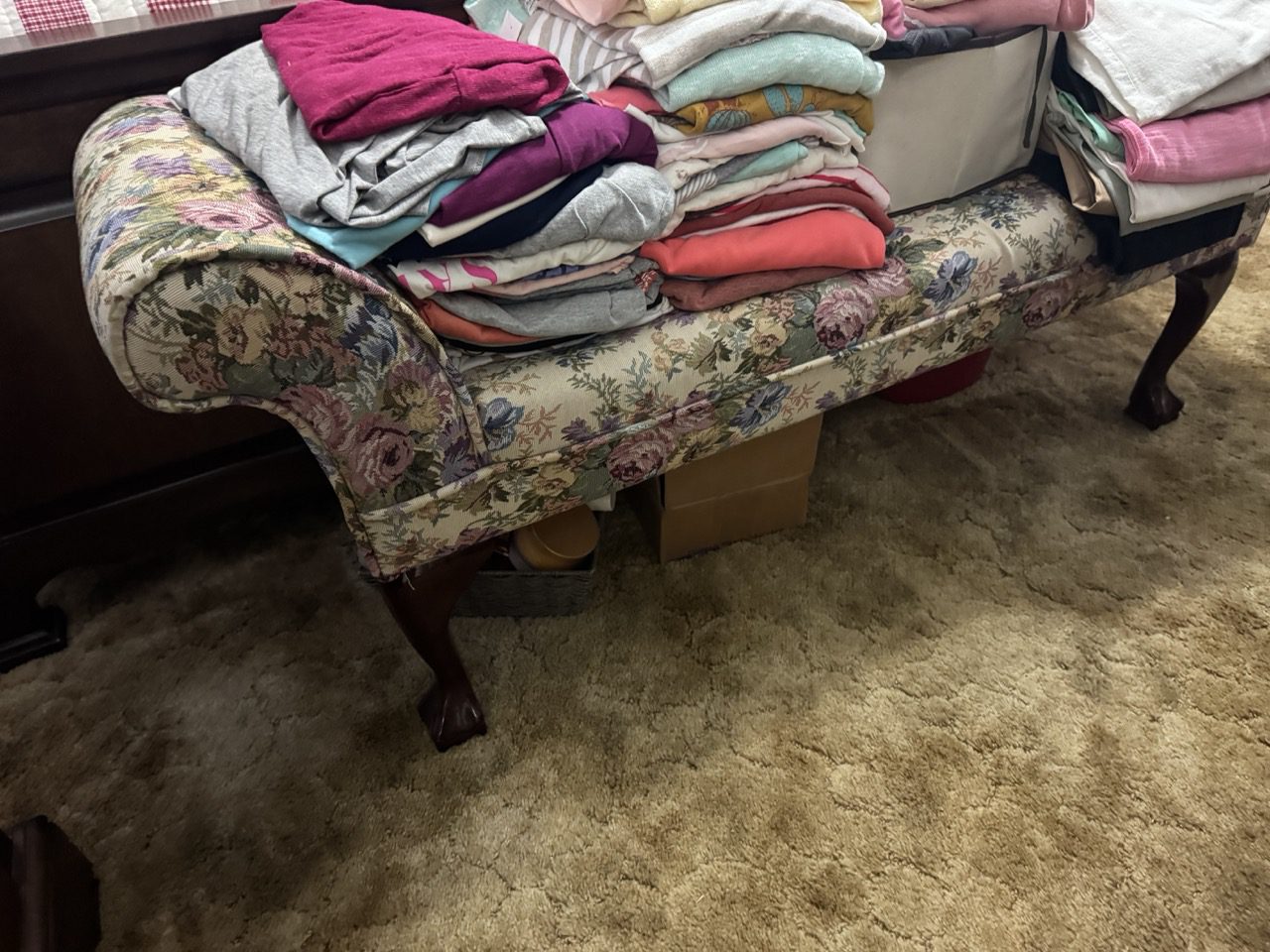 Furniture: Settee – (2) Chest of Drawers – Armoire – (2) Night Stands – (2) Queen Size Bed – Mirrors – Lamps – Wicker Chest – Oak Chest – Bookcase – Oak Gun Rack – Microsuede Armchair – End Table – Floor Lamp – Entertainment Center – Microsuede Sofa – (2) Tiffany Style Lamp – Table & Chairs
