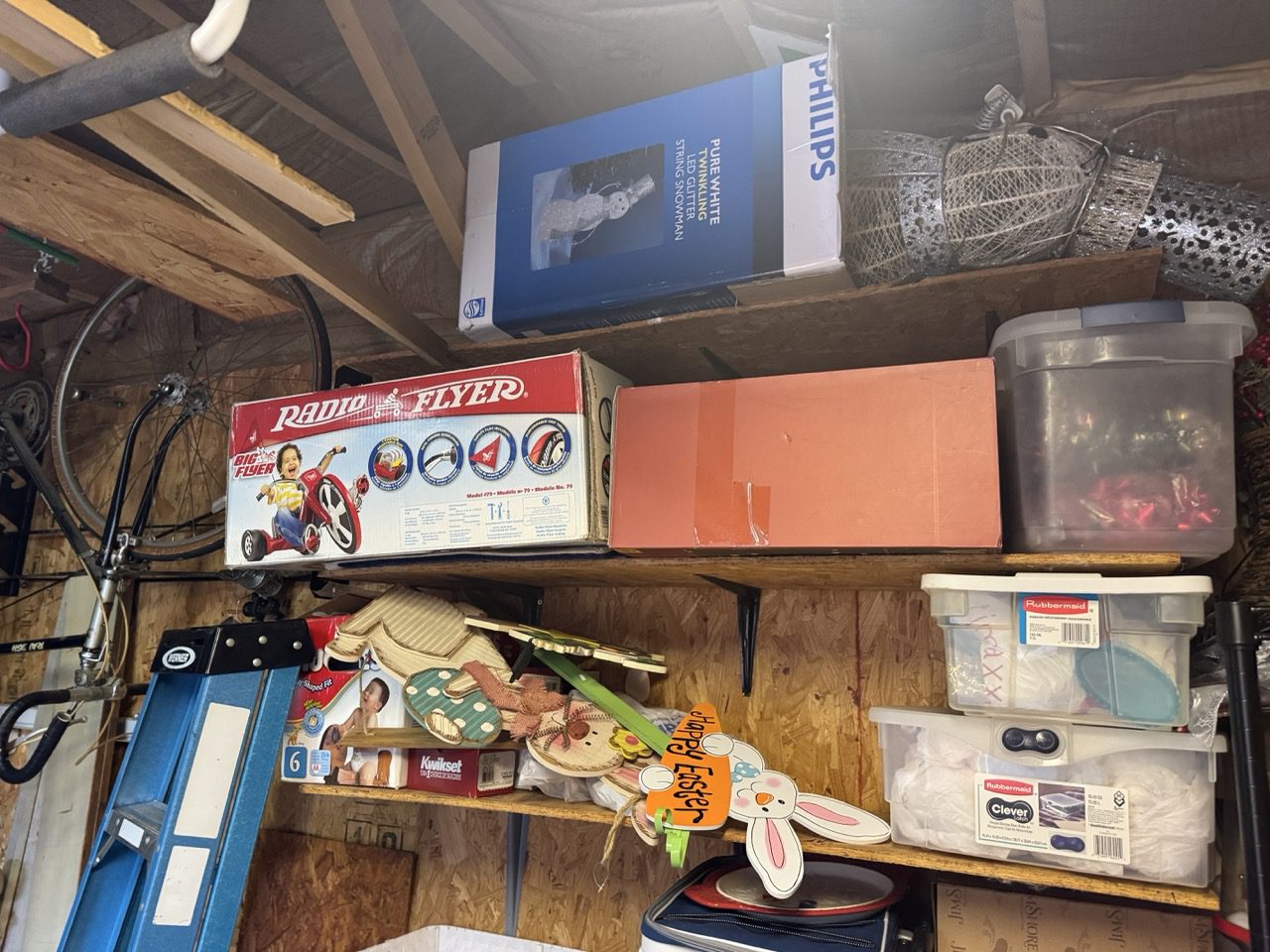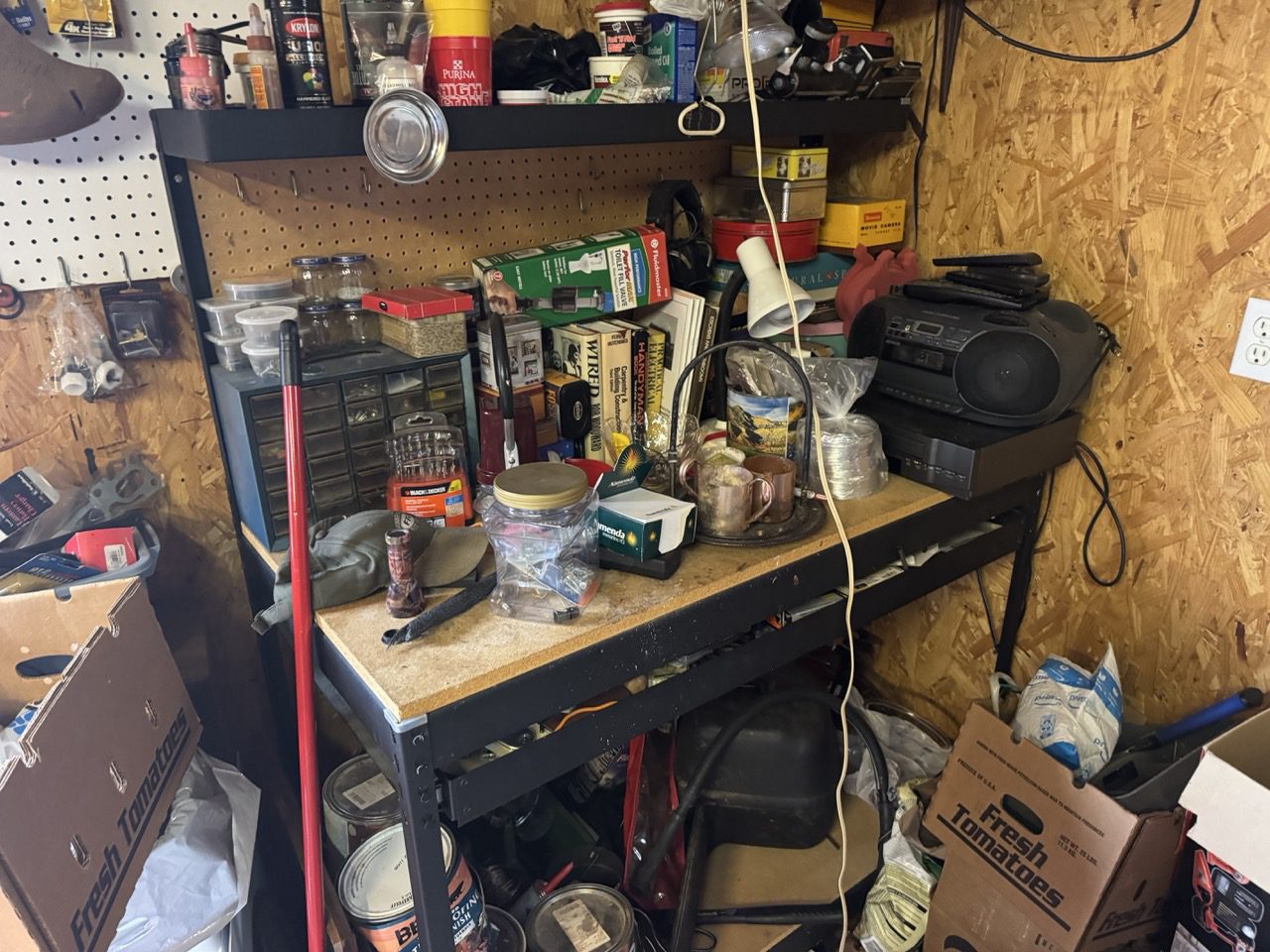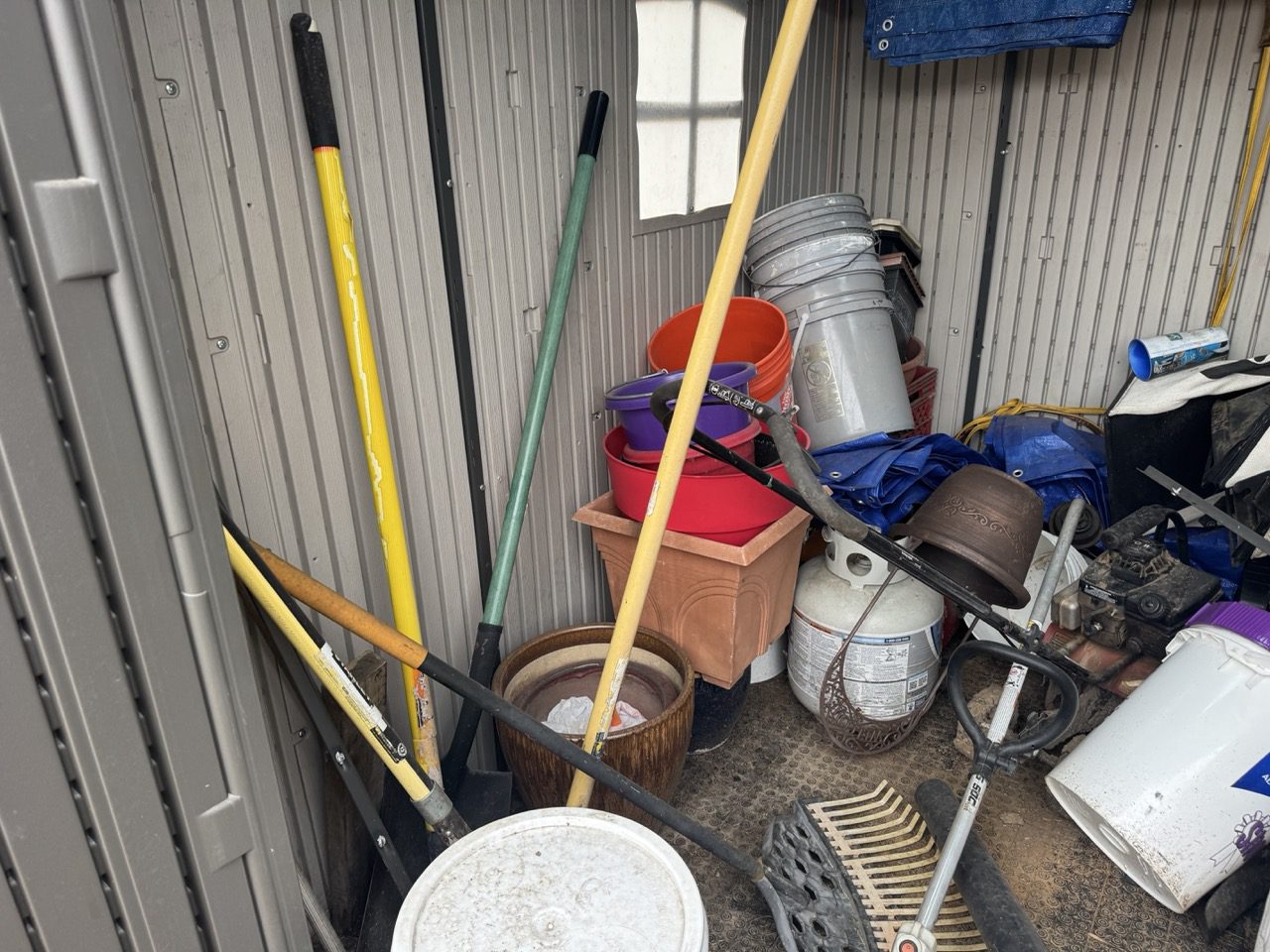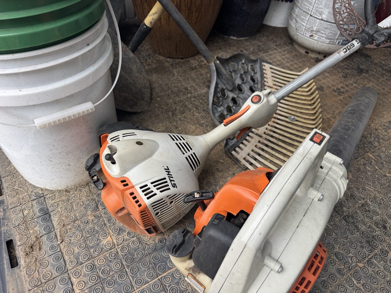 Shop & Misc: Toro Push Mower – Stihl Weedeater – Stihl Blower – Craftsman Chainsaw – Werner Step Ladder – Shop Vac – Briggs & Stratton Air Compressor – Masterbuilt Smoker – Weber Grill – Patio Chairs – Road Bike – Saw Horses – Heaters – Work Table – Lifetime Ice Chest – Lawn Chairs – Yard Tools