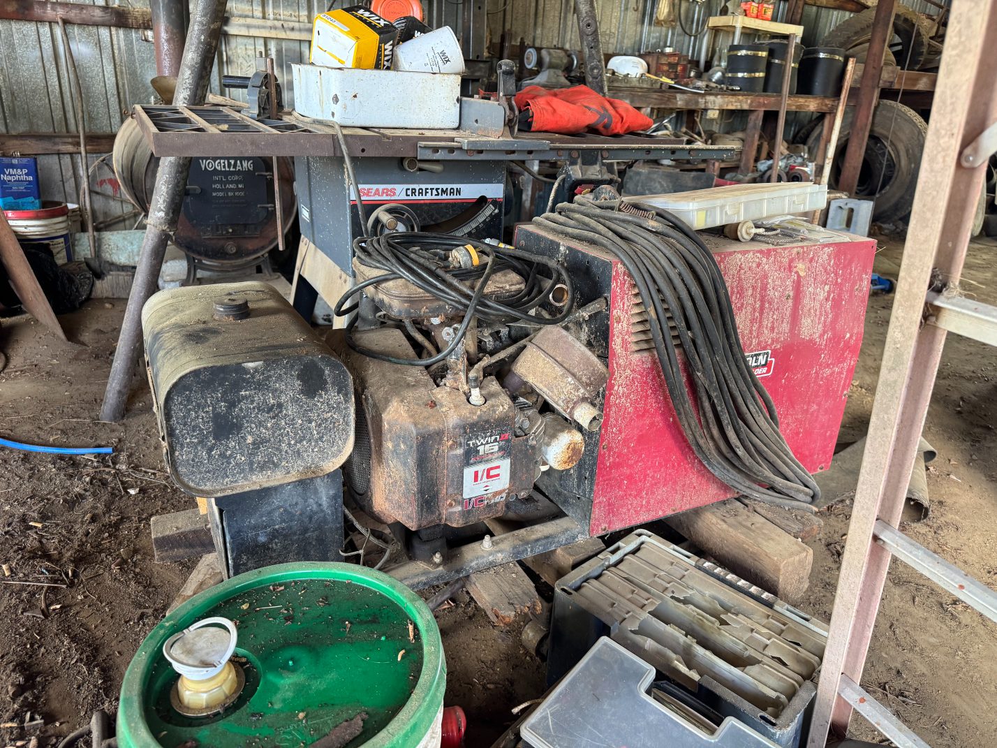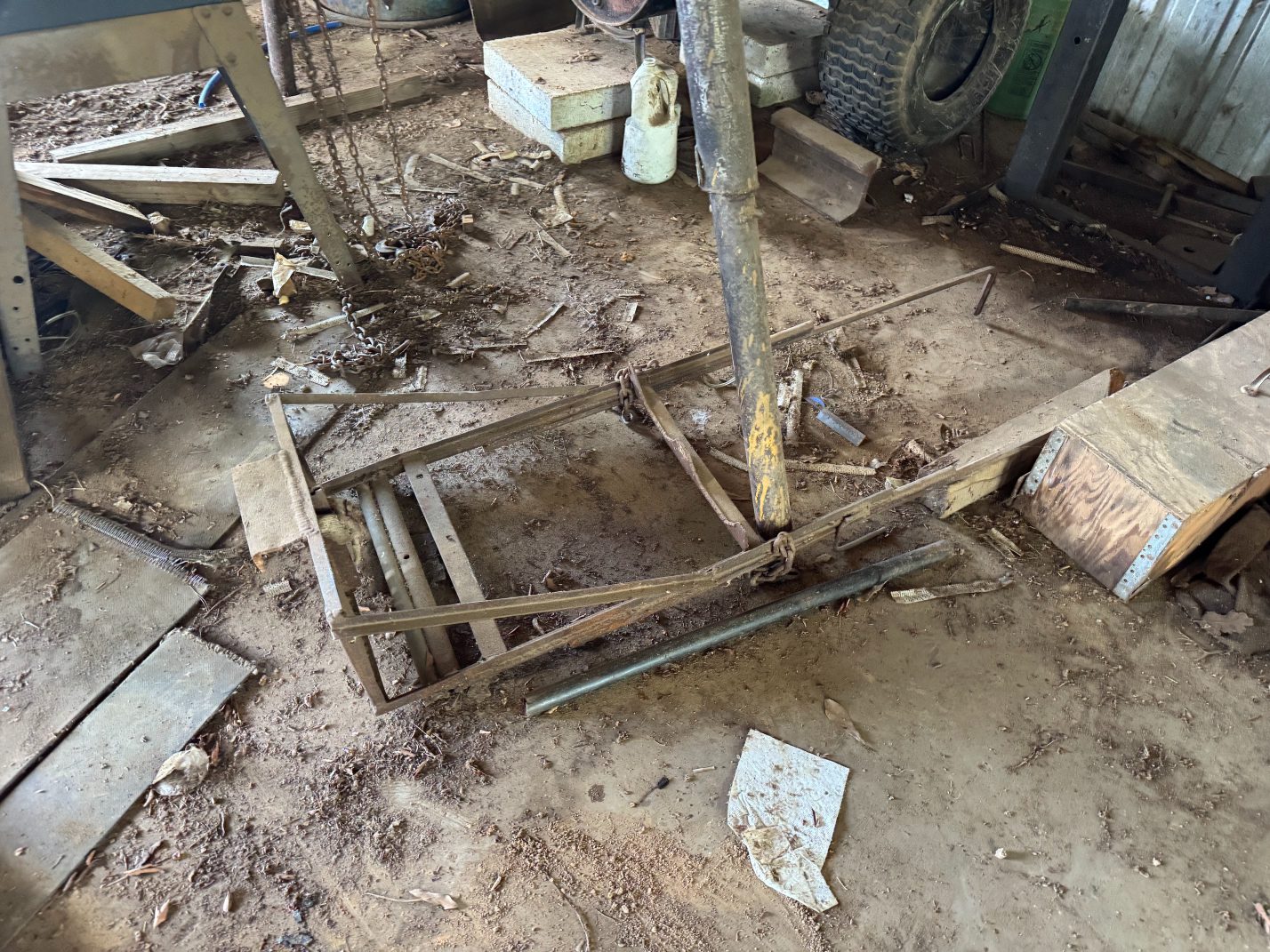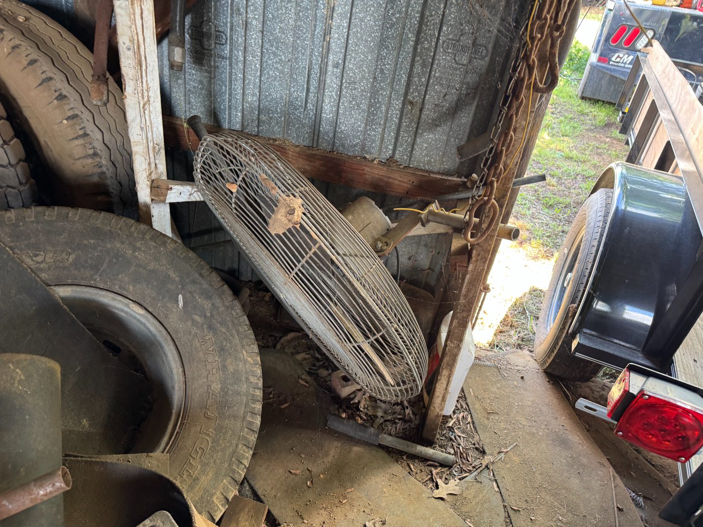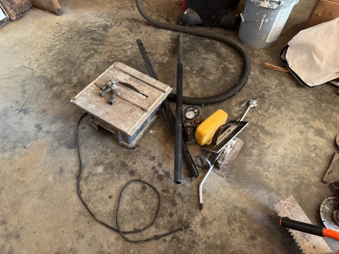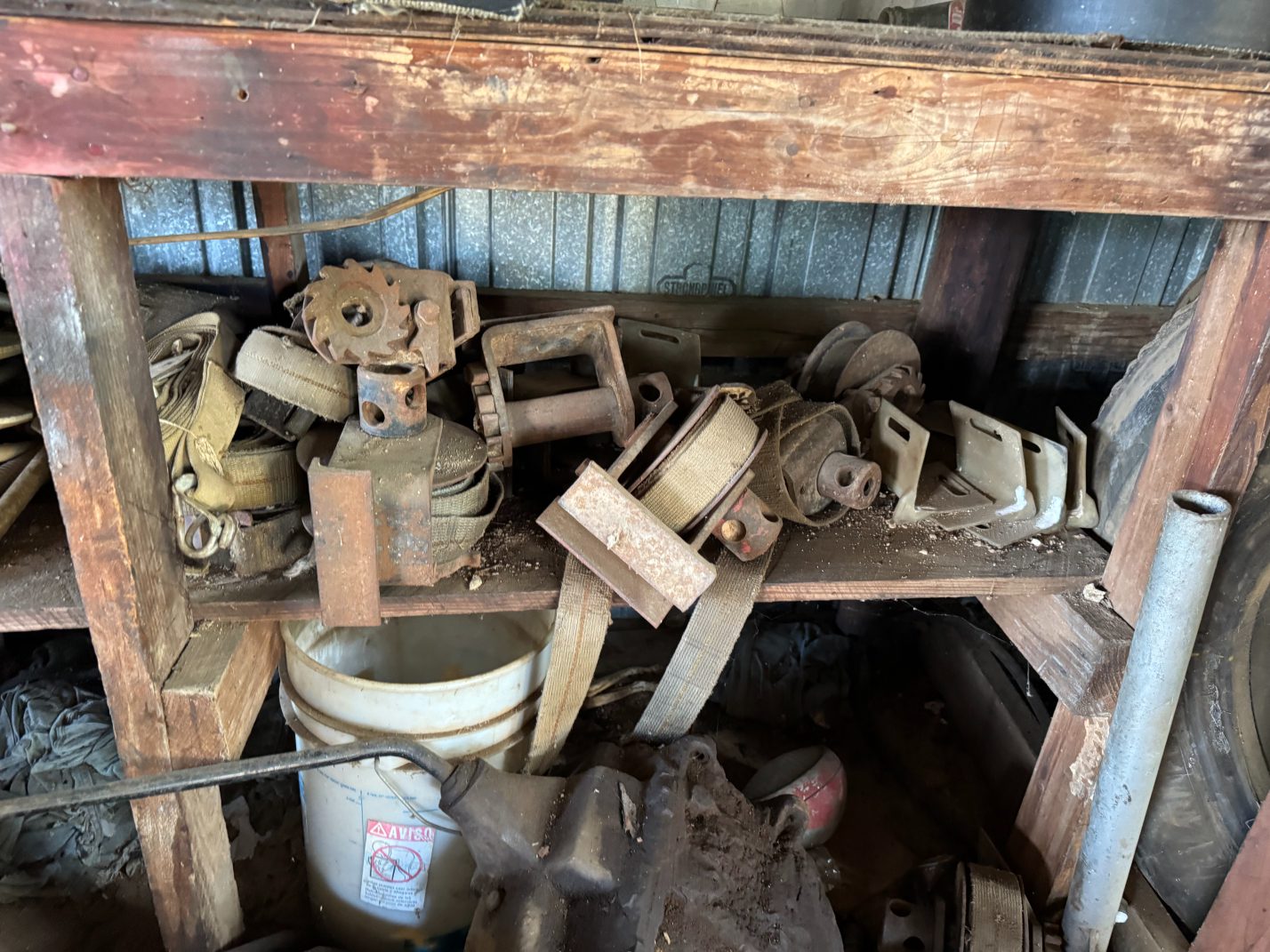 Tools/Shop Items: Post Hole Diggers – T-Posts (100s) – Wooden Chicken Coop – Electric Fencing – Barbed Wire – Wire Fencing – Chicken Wire – Tractor Tires – Tires – Wrought Iron Railing – Galvanized Tub – Misc. Wire – Misc. Cable – Metal Barrels – Plastic Barrels – Turnbuckles – Chicken House Fans – Baler Belts – Baler Chains – Metal Pipe – Square Metal Tubing – Window Air Units – Metal Shelving – Medical Supplies and Equipment – Propane Tanks – Saw Horses – Industrial Air Compressor – Air Hoses – Corder Grinders – Horse Tack – Tile Saw – Shop Vac – 10in. Radial Arm Saw – Hand Saws – Hack Saws – Pipe Cutter – Jack Stands – Hub Caps – Whiskey Barrel – Gas Cans – Kerosine Cans – Water Skis – Tarps – Can Hooks – Pitch Forks – Splitting Maul – Halogen Shop Lights – Faucets – Electrical Supplies – Saddles – Railroad Anvils – Grinder – Bolt Bins – Vise – Chain Hoists – Metal Plate – C-Clamps – Bottle Jacks – Cutting-Torch Hoses – Drain Pipe – Creepers – Chop Saws – Transmission Jack – Wheels – Ryobi Chop Saw – Boomers – Socket Set – Tackle Box – Metal Roll Around Cart – Log Chains – Welding Helmets – Come-A-Longs – Air Tank – Hydraulic Hoses – Hydraulic Fittings – Shop Fan – Floor Jacks – Car Parts – ¾ Socket Set – Ratchet Straps – Transmission – Lincoln Weldanpower 225 G7 – Craftsman Table Saw – Radiators – Air Hammer Drill – Acetylene Bottles