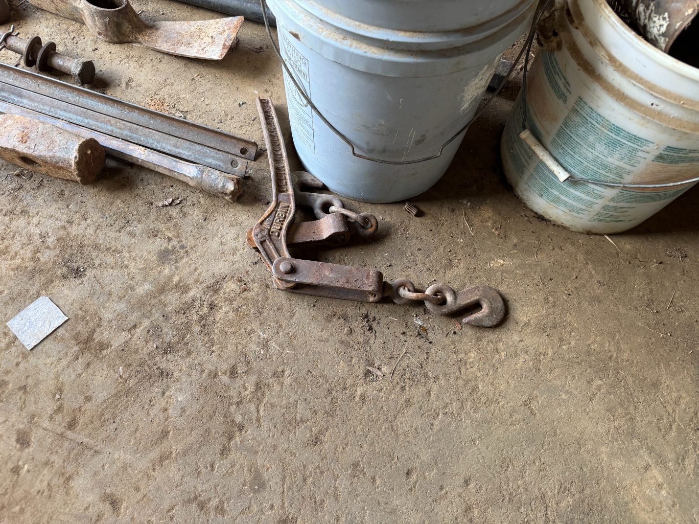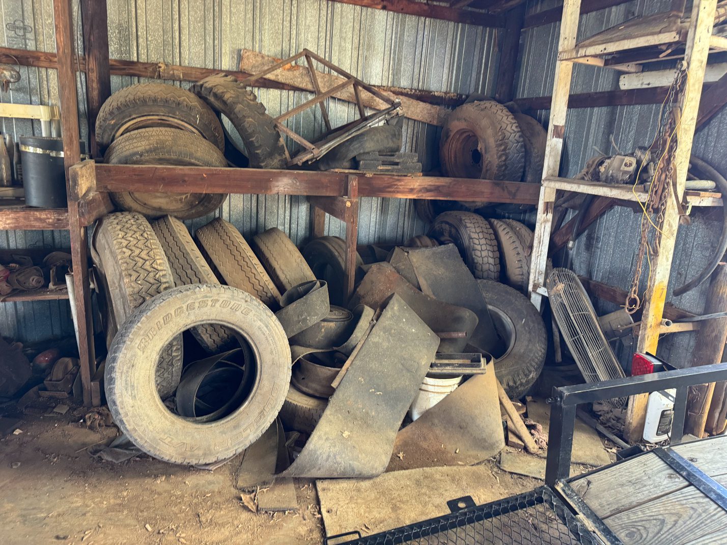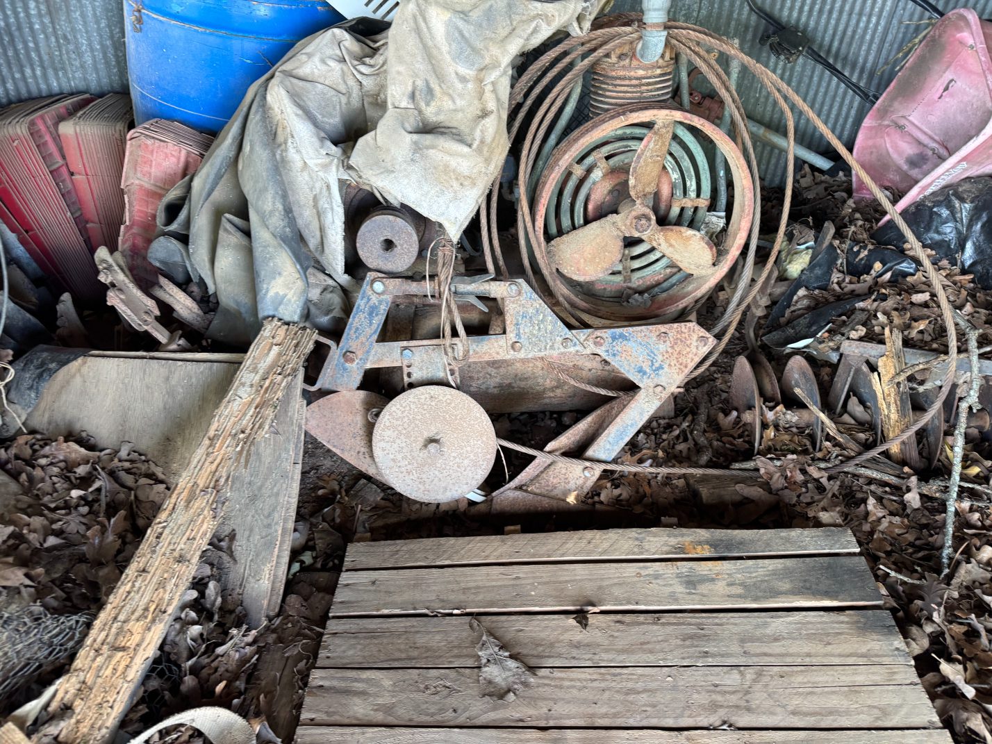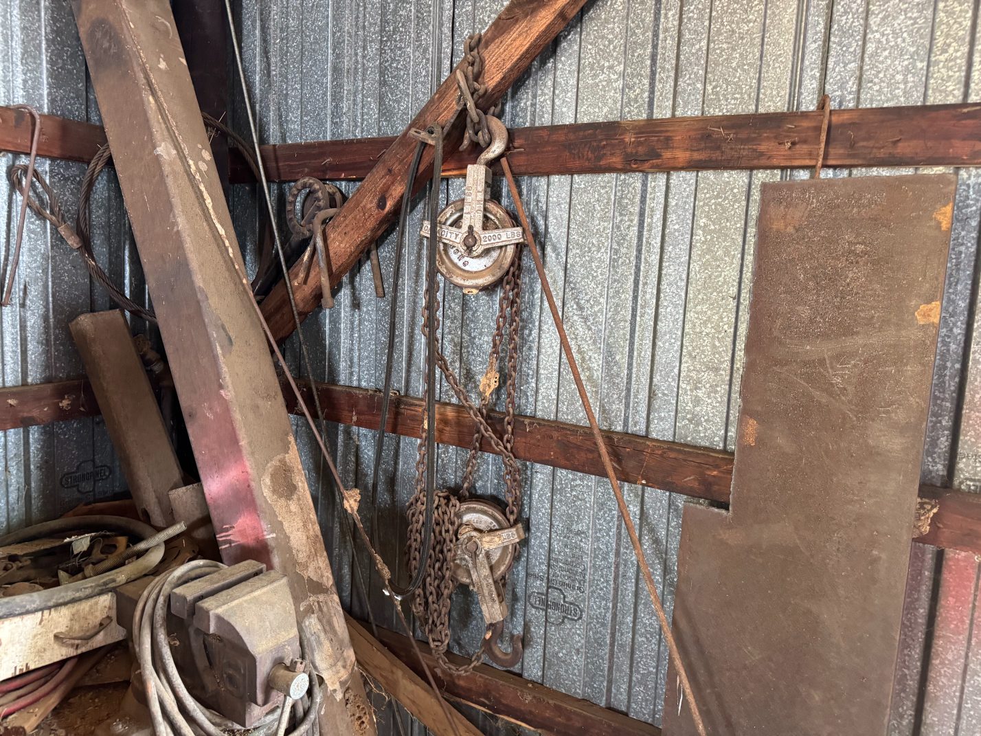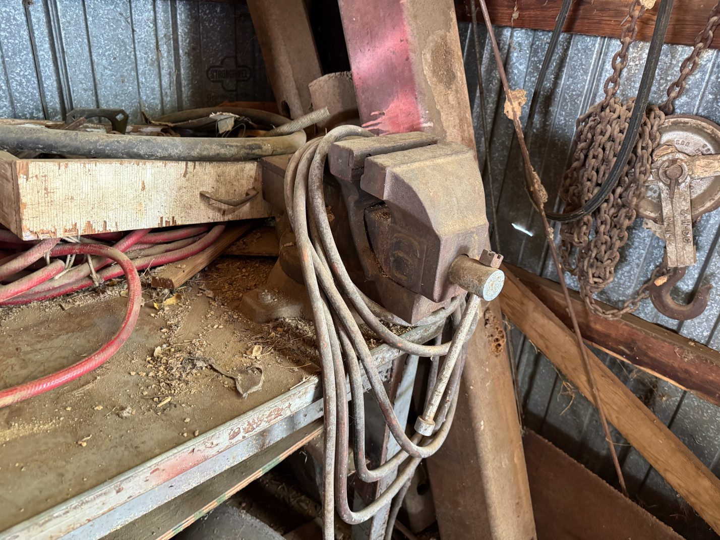 Tools/Shop Items: Post Hole Diggers – T-Posts (100s) – Wooden Chicken Coop – Electric Fencing – Barbed Wire – Wire Fencing – Chicken Wire – Tractor Tires – Tires – Wrought Iron Railing – Galvanized Tub – Misc. Wire – Misc. Cable – Metal Barrels – Plastic Barrels – Turnbuckles – Chicken House Fans – Baler Belts – Baler Chains – Metal Pipe – Square Metal Tubing – Window Air Units – Metal Shelving – Medical Supplies and Equipment – Propane Tanks – Saw Horses – Industrial Air Compressor – Air Hoses – Corder Grinders – Horse Tack – Tile Saw – Shop Vac – 10in. Radial Arm Saw – Hand Saws – Hack Saws – Pipe Cutter – Jack Stands – Hub Caps – Whiskey Barrel – Gas Cans – Kerosine Cans – Water Skis – Tarps – Can Hooks – Pitch Forks – Splitting Maul – Halogen Shop Lights – Faucets – Electrical Supplies – Saddles – Railroad Anvils – Grinder – Bolt Bins – Vise – Chain Hoists – Metal Plate – C-Clamps – Bottle Jacks – Cutting-Torch Hoses – Drain Pipe – Creepers – Chop Saws – Transmission Jack – Wheels – Ryobi Chop Saw – Boomers – Socket Set – Tackle Box – Metal Roll Around Cart – Log Chains – Welding Helmets – Come-A-Longs – Air Tank – Hydraulic Hoses – Hydraulic Fittings – Shop Fan – Floor Jacks – Car Parts – ¾ Socket Set – Ratchet Straps – Transmission – Lincoln Weldanpower 225 G7 – Craftsman Table Saw – Radiators – Air Hammer Drill – Acetylene Bottles